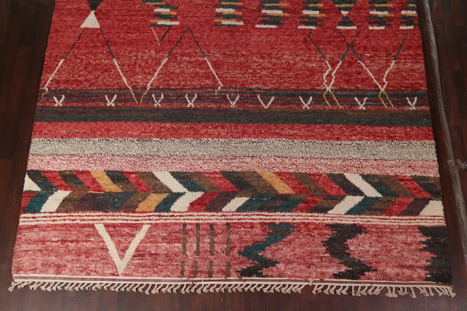 A Beautiful Genuine Morocco Moroccan rug is Hand Knotted by skillful weavers in Morocco with 100% Wool Material. This rug is in New, First Quality condition. dimensions are 14' 9'' X 10' 2'' in foot and 450 X 310 in centimeter. the primary color is Red.