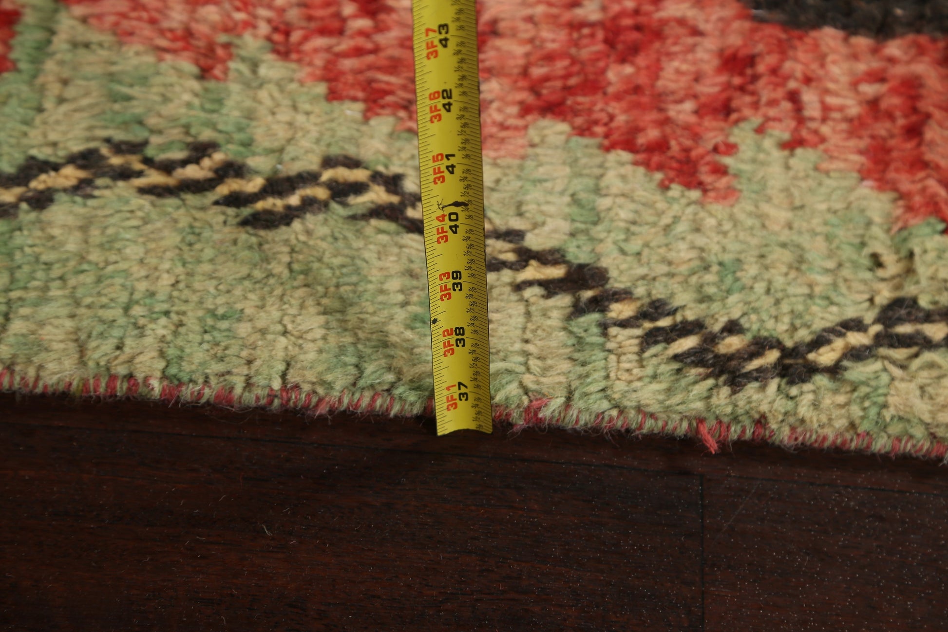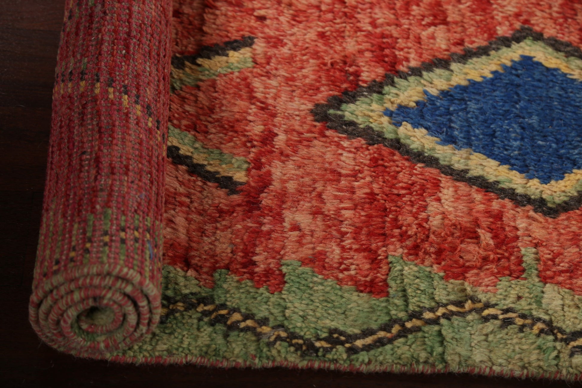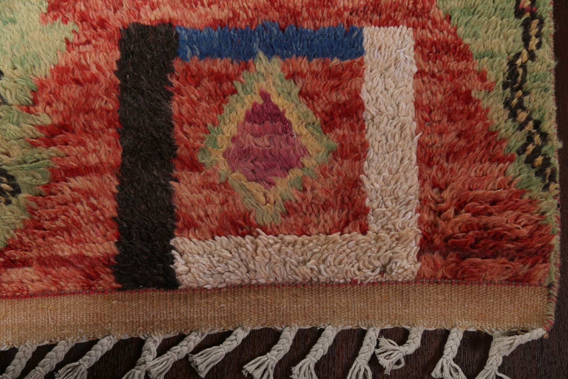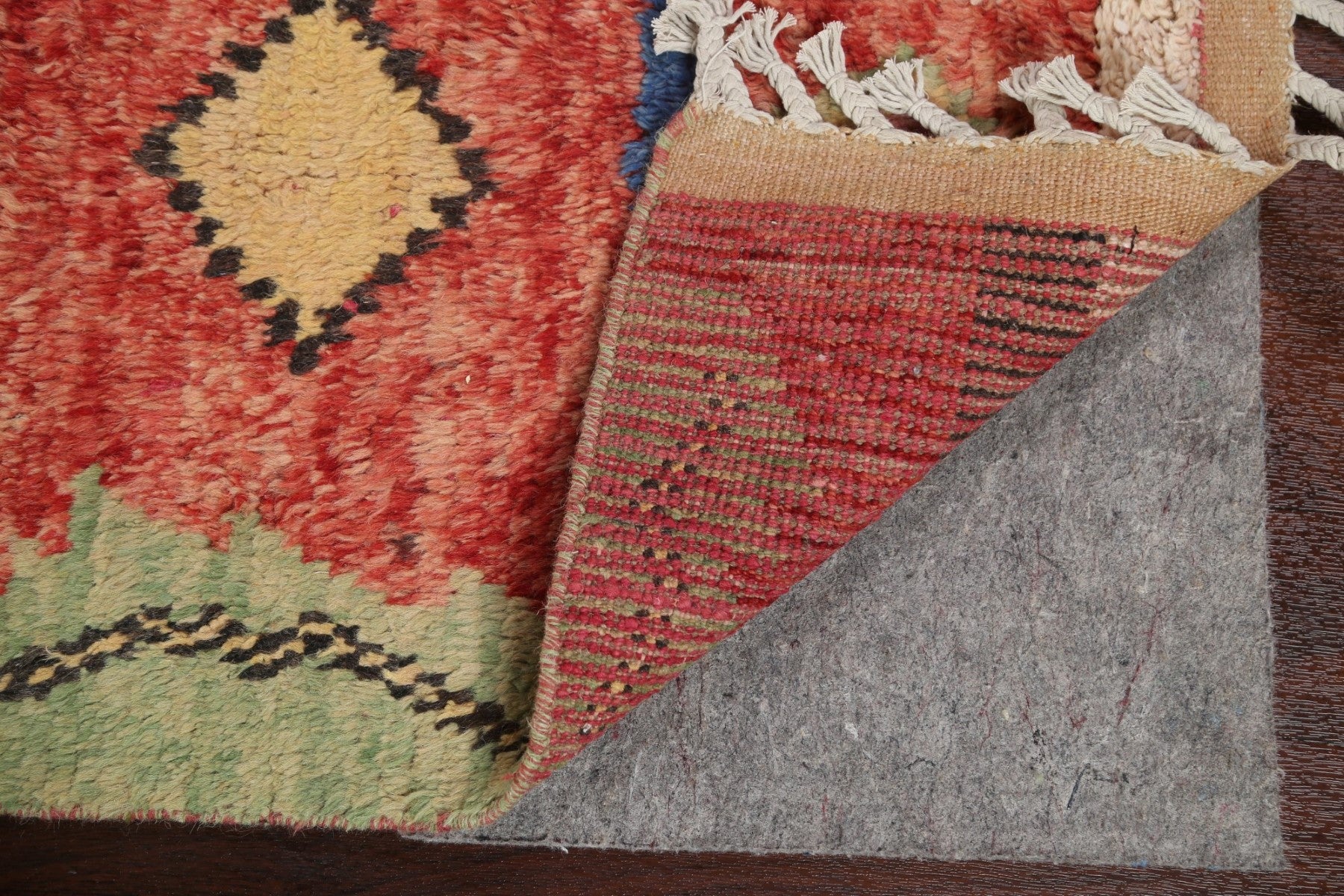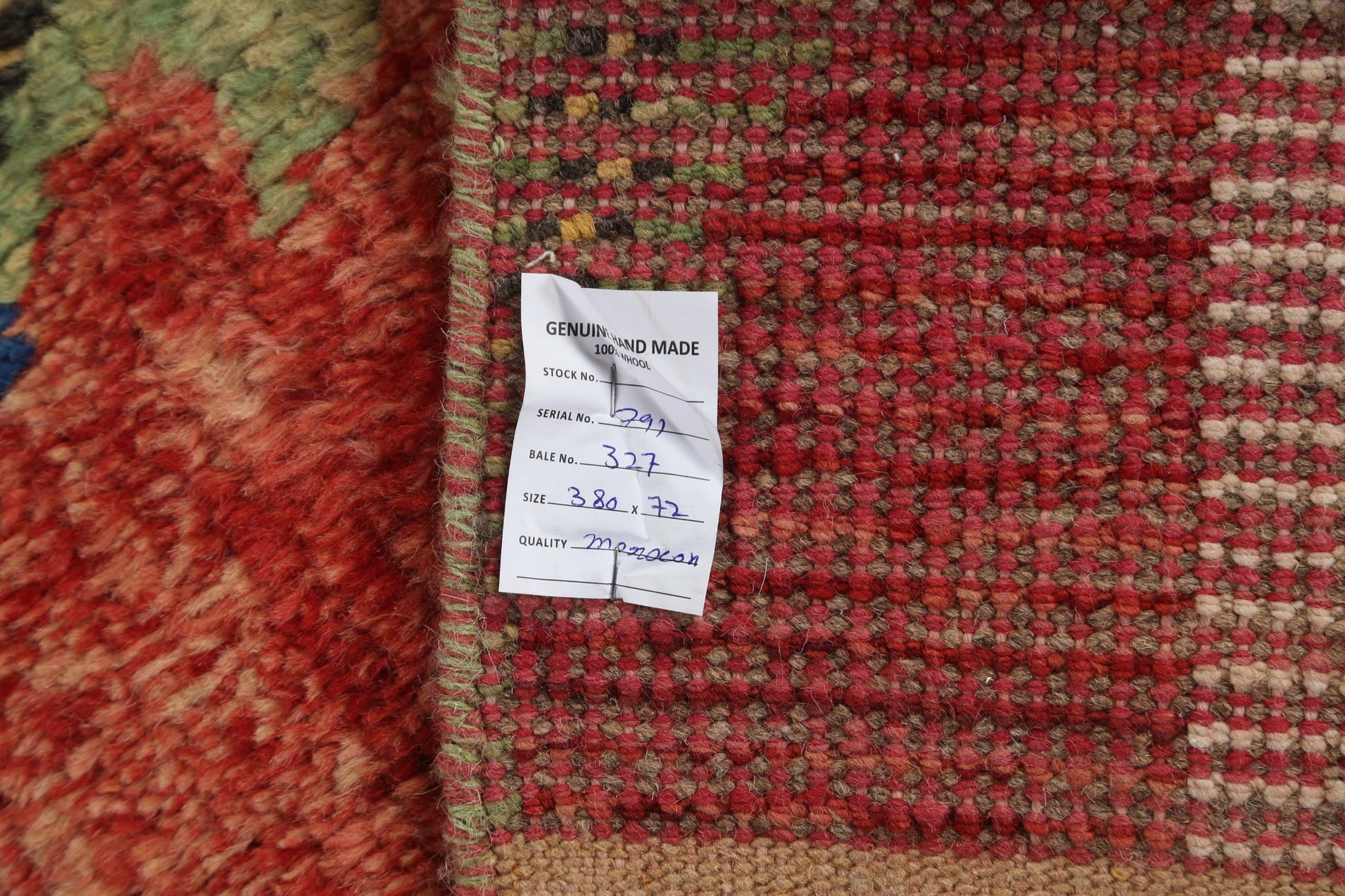 A Beautiful Genuine Morocco Moroccan rug is Hand Knotted by skillful weavers in Morocco with 100% Wool Material. This rug is in New, First Quality condition. dimensions are 12' 9'' X 2' 5'' in foot and 389 X 74 in centimeter. the primary color is Red.