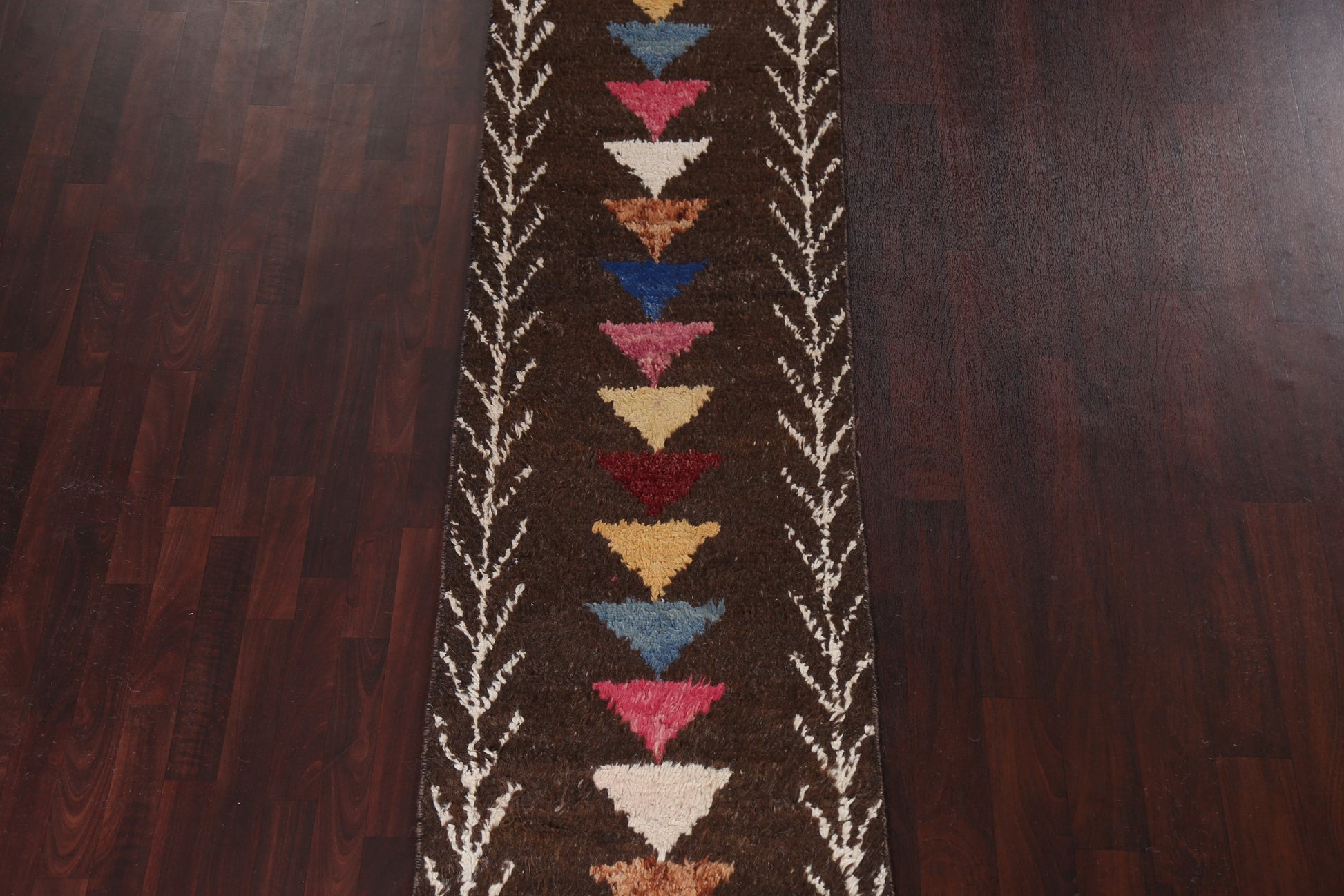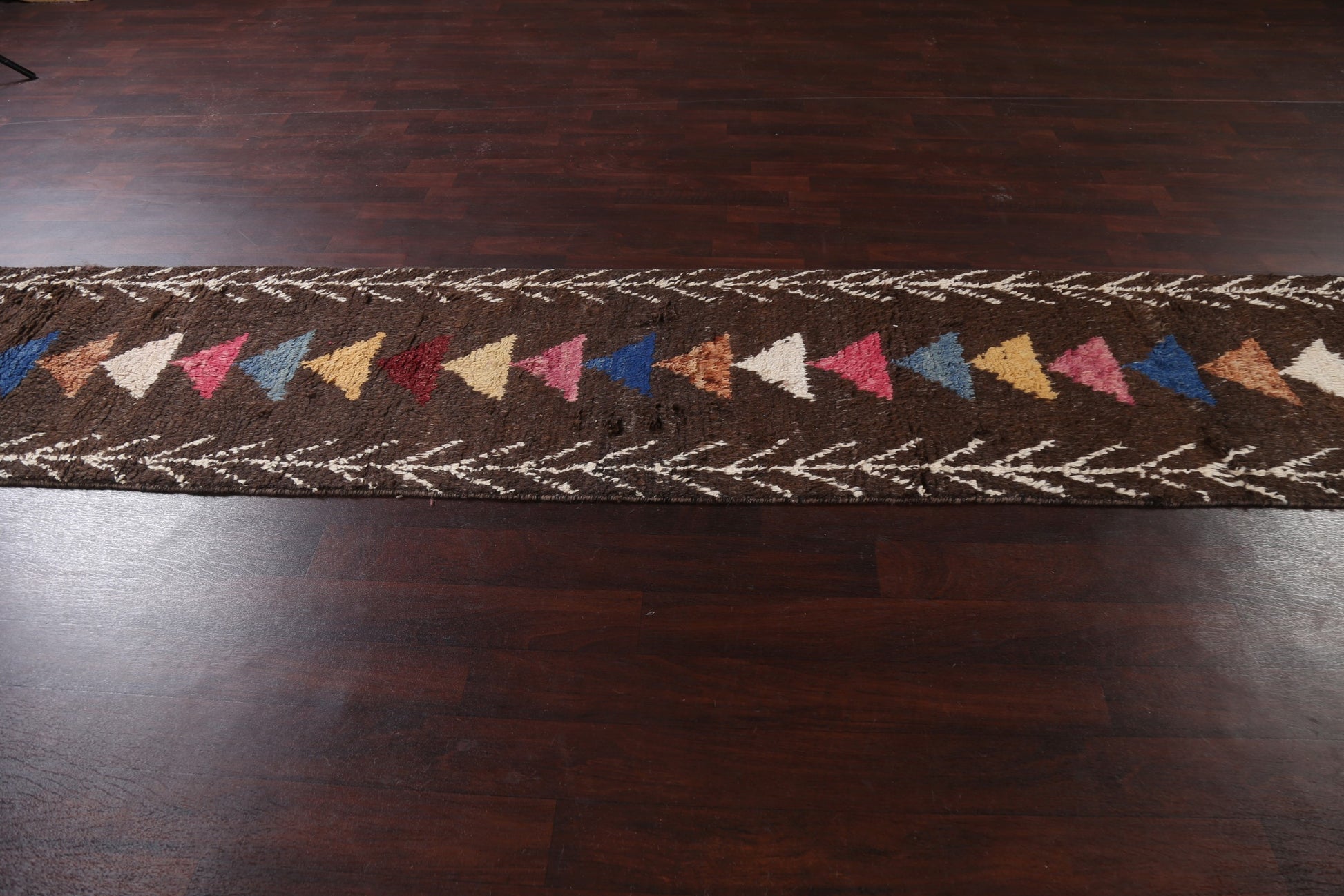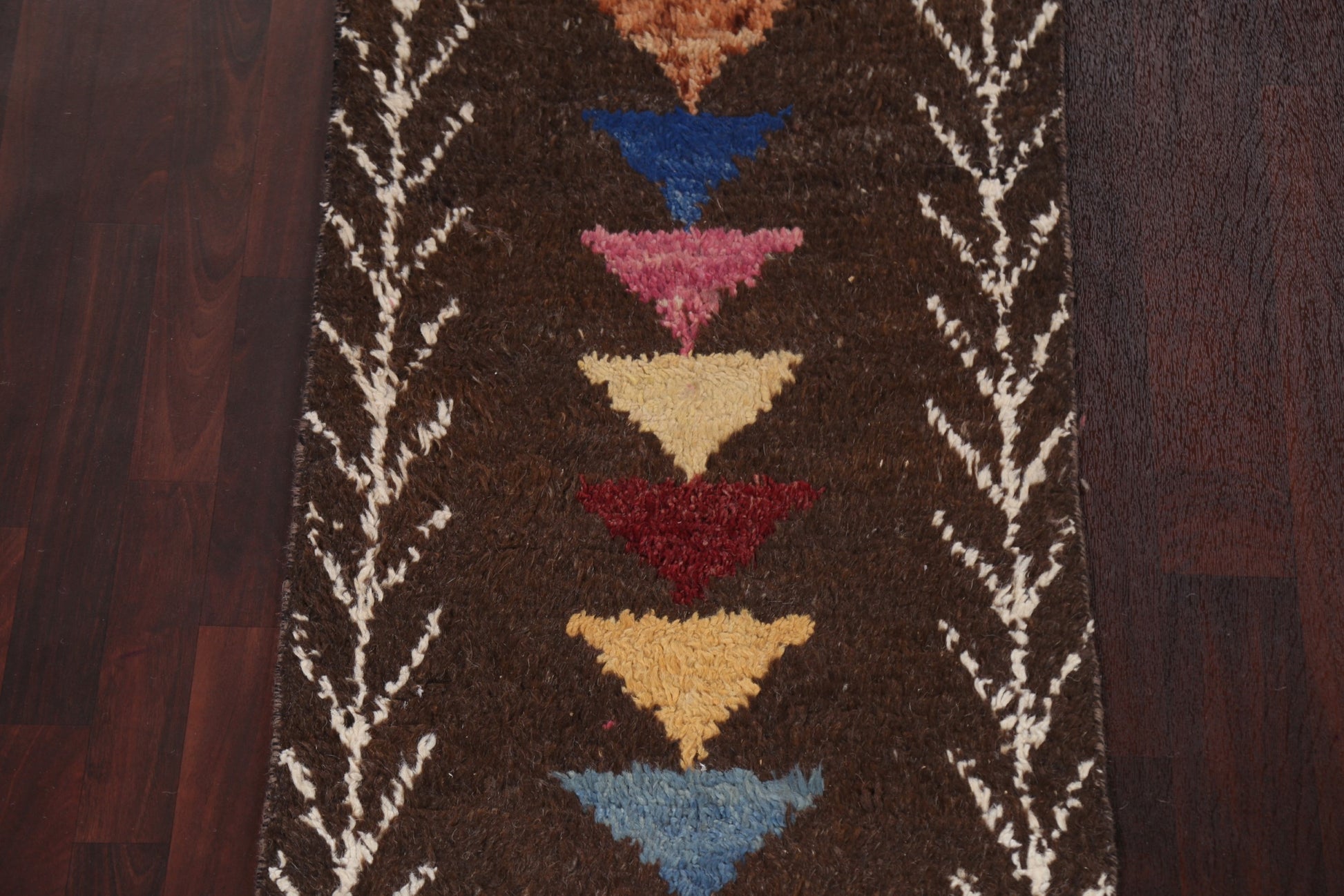 A Beautiful Genuine Morocco Moroccan rug is Hand Knotted by skillful weavers in Morocco with 100% Wool Material. This rug is in New, First Quality condition. dimensions are 12' 5'' X 2' 6'' in foot and 378 X 76 in centimeter. the primary color is Brown.