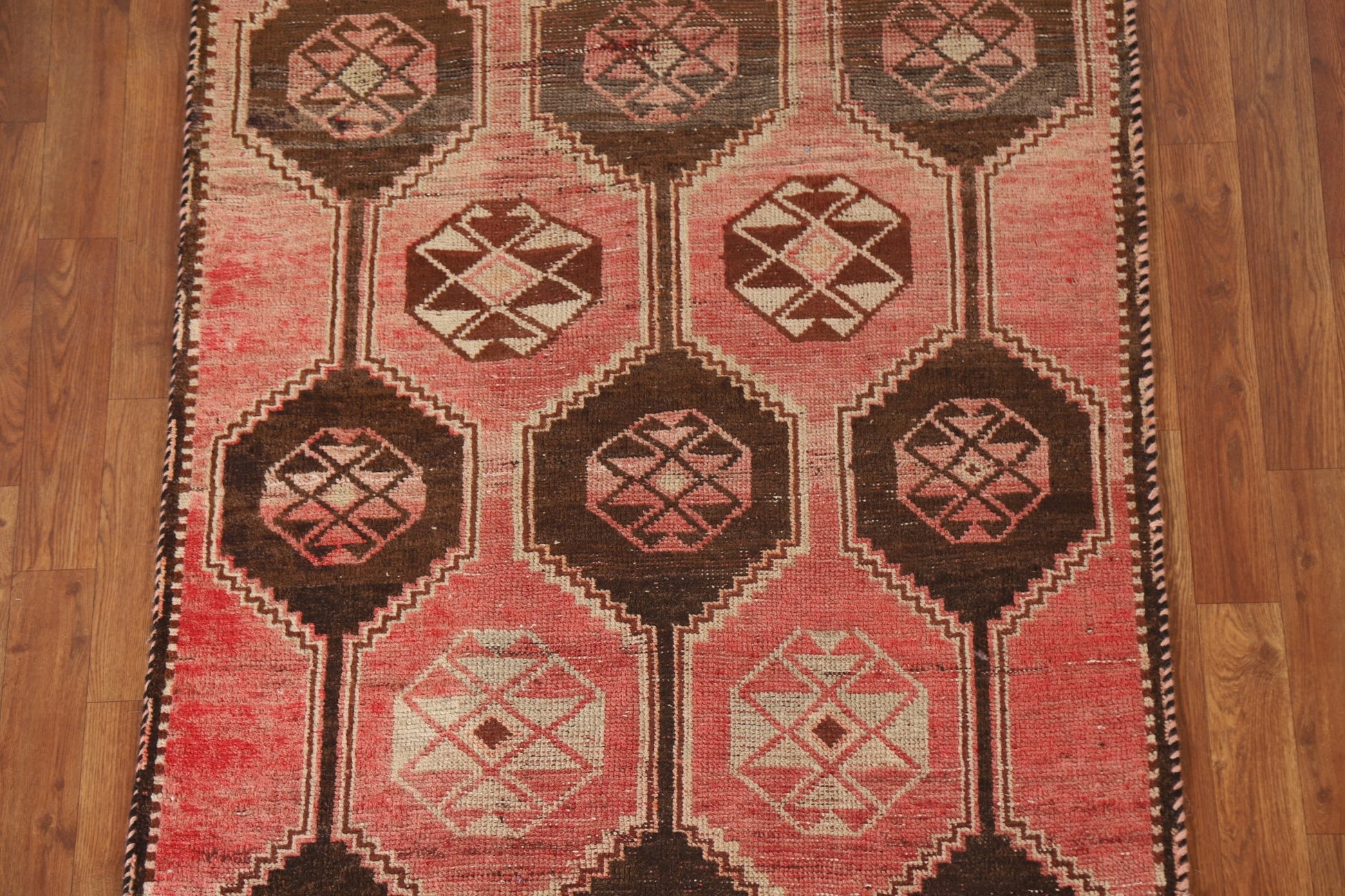 A Beautiful Genuine Persia ( Persia ) Lori rug is Hand Knotted by skillful weavers in Persia ( Persia ) with 100% Wool Material. This rug is in Very Good (Evenly Low Pile-Abrash) condition. dimensions are 8' 6'' X 3' 5'' in foot and 259 X 104 in centimeter. the primary color is Pink.