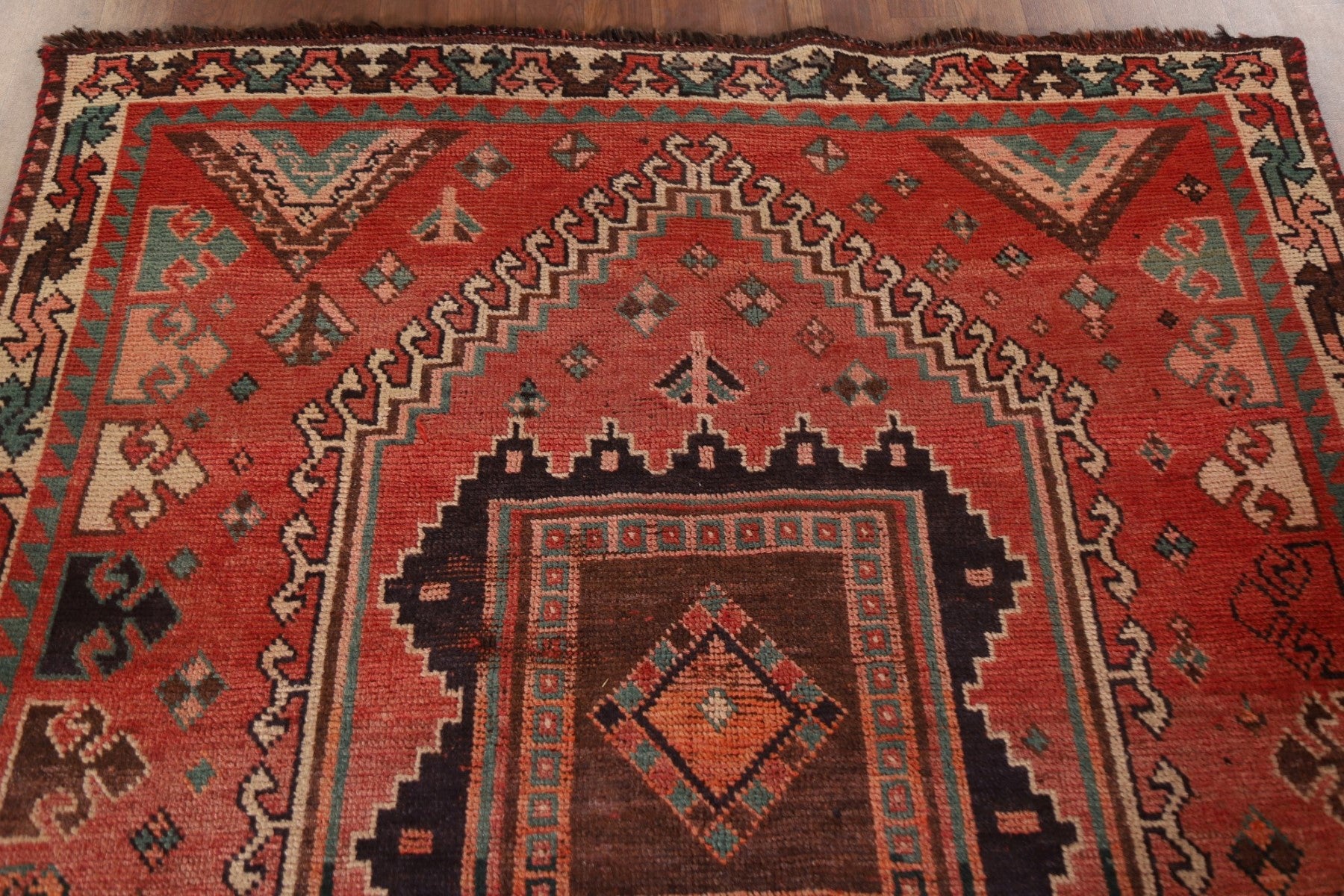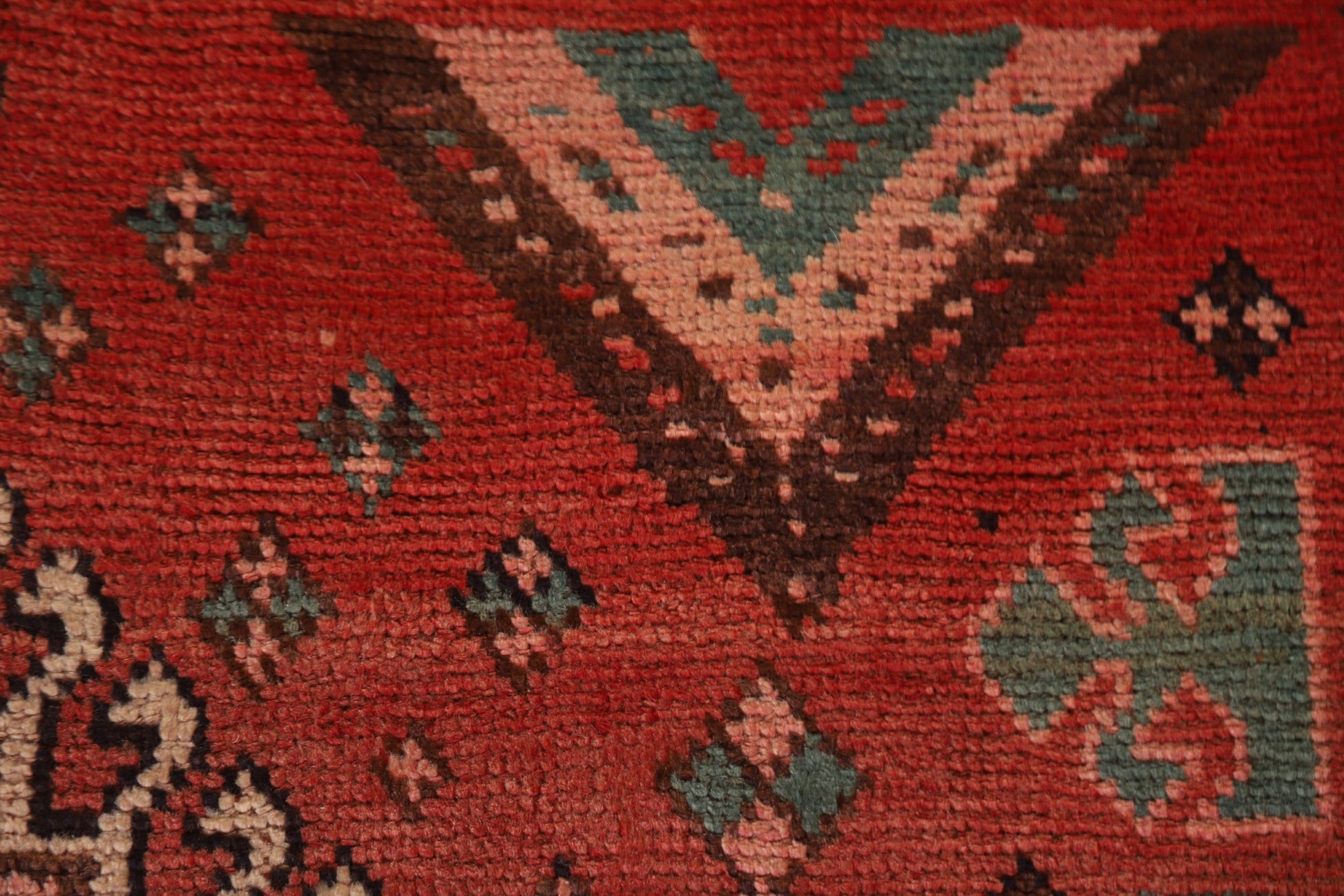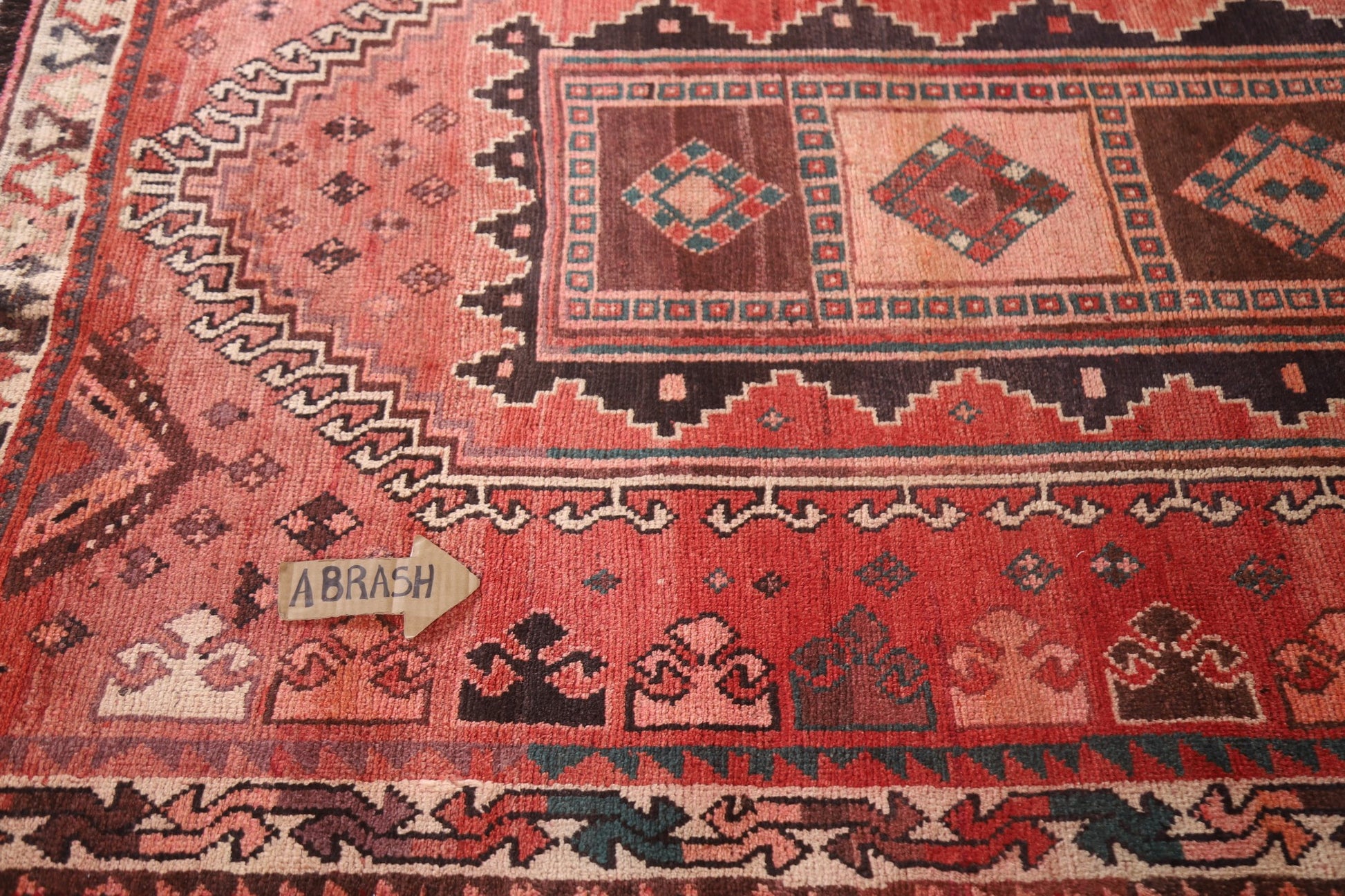 A Beautiful Genuine Persia ( Persia ) Qashqai rug is Hand Knotted by skillful weavers in Persia ( Persia ) with 100% Wool Material. This rug is in Very Good (Evenly Low Pile-Abrash) condition. dimensions are 9' 4'' X 4' 10'' in foot and 284 X 147 in centimeter. the primary color is Red.