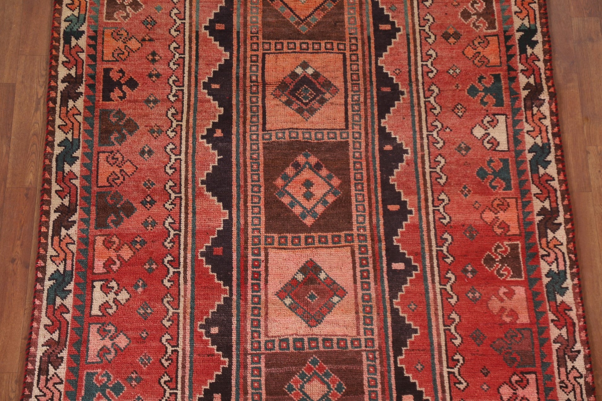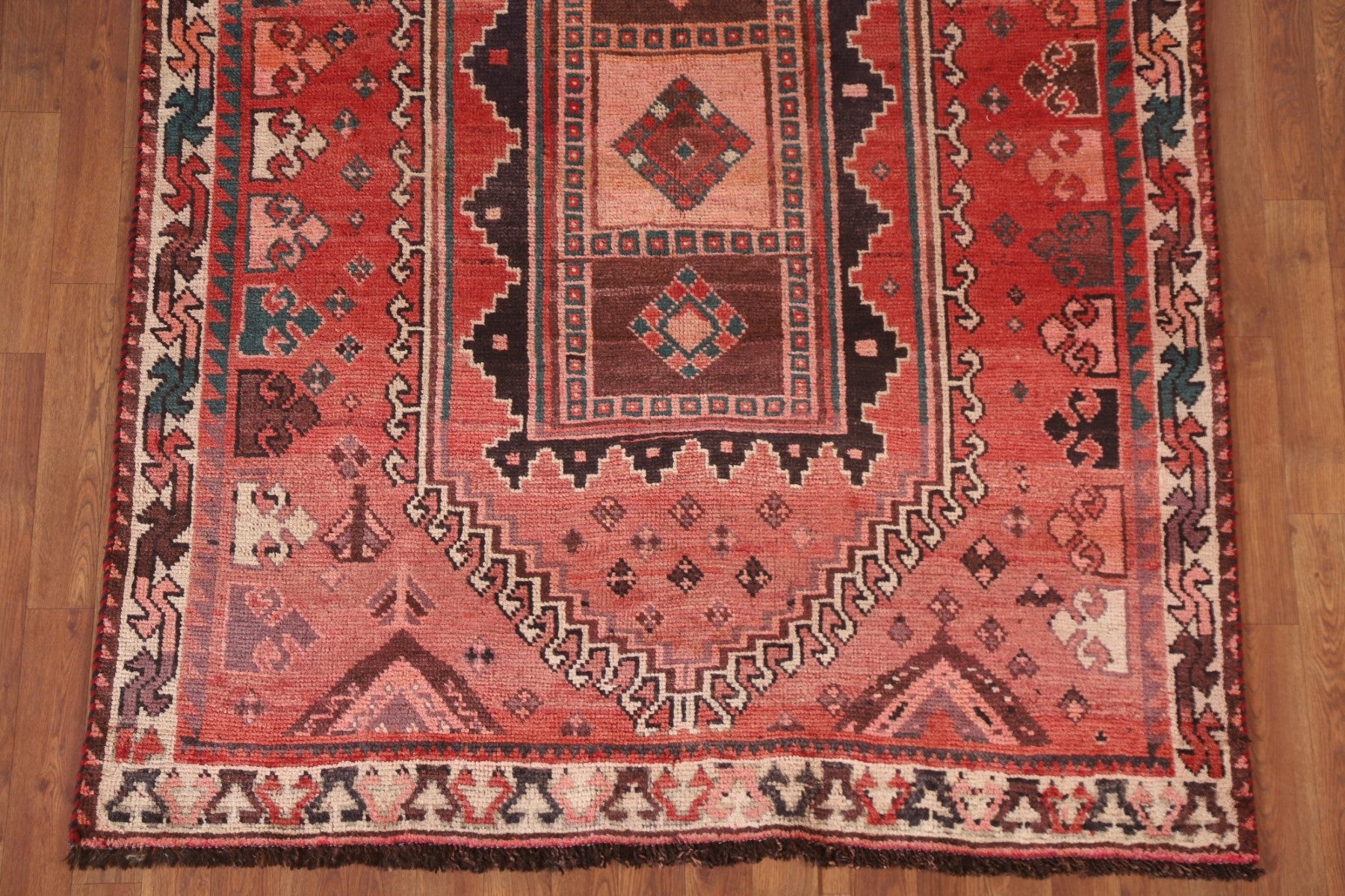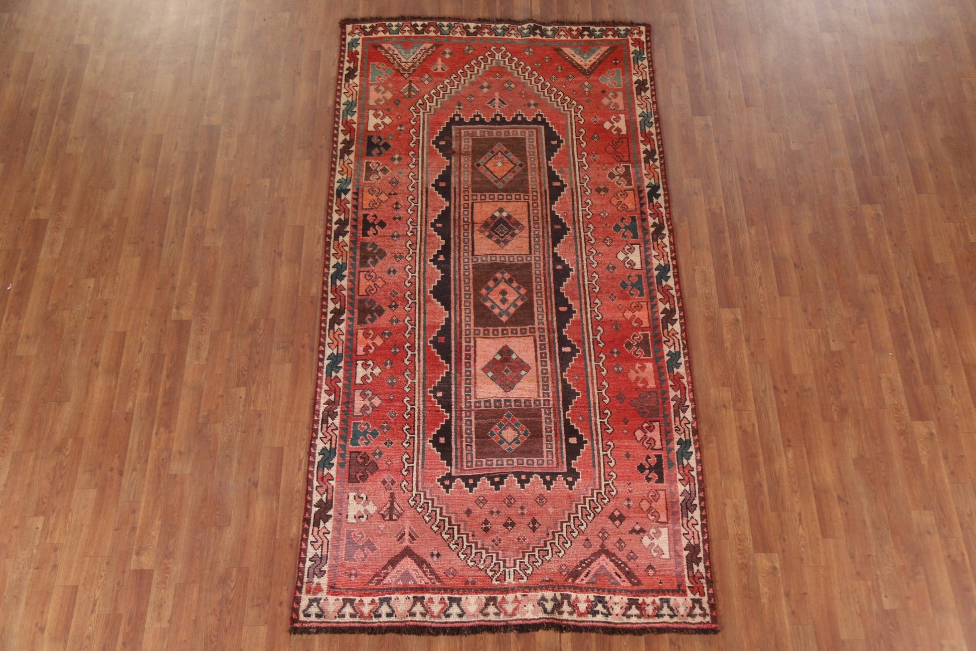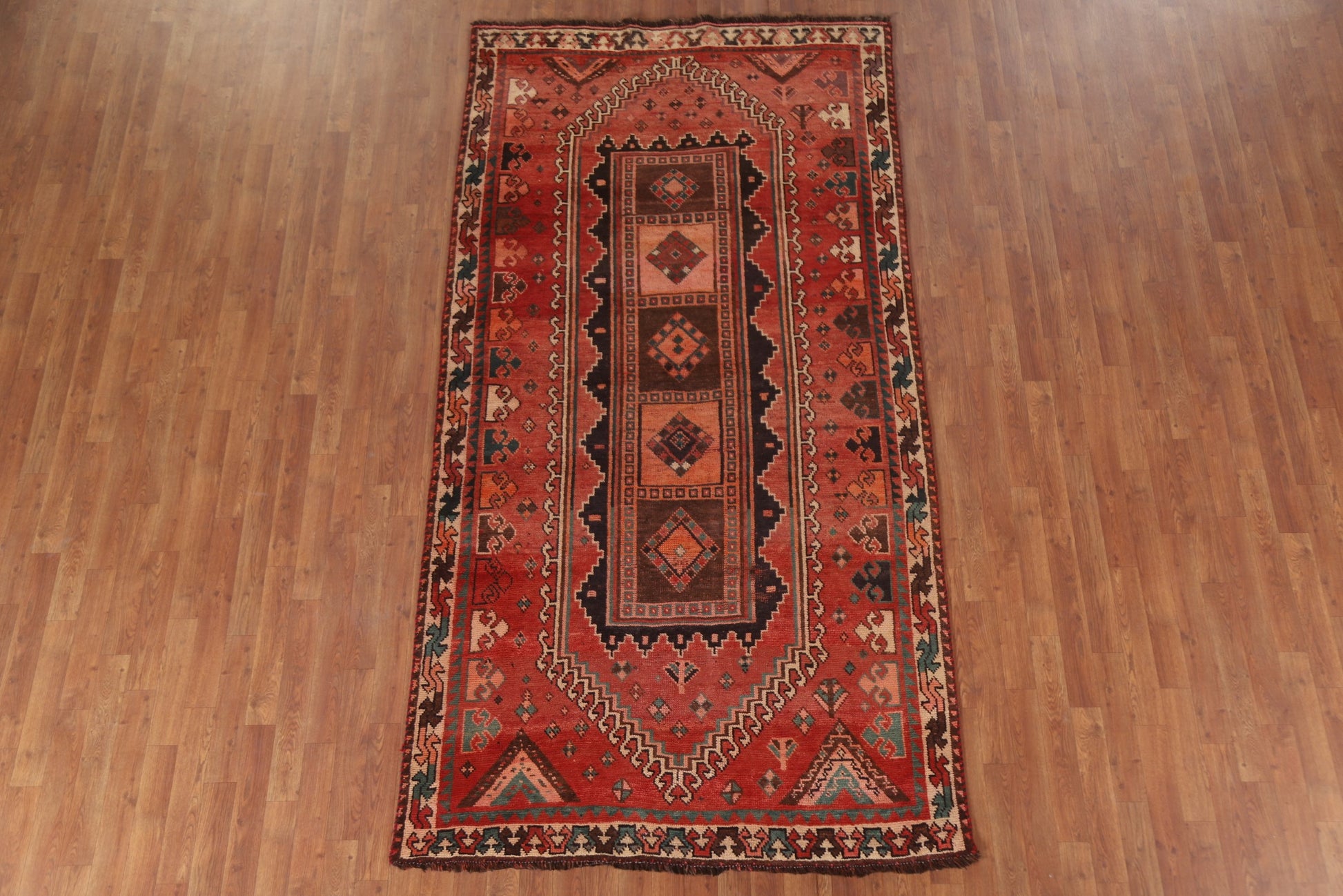 A Beautiful Genuine Persia ( Persia ) Qashqai rug is Hand Knotted by skillful weavers in Persia ( Persia ) with 100% Wool Material. This rug is in Very Good (Evenly Low Pile-Abrash) condition. dimensions are 9' 4'' X 4' 10'' in foot and 284 X 147 in centimeter. the primary color is Red.