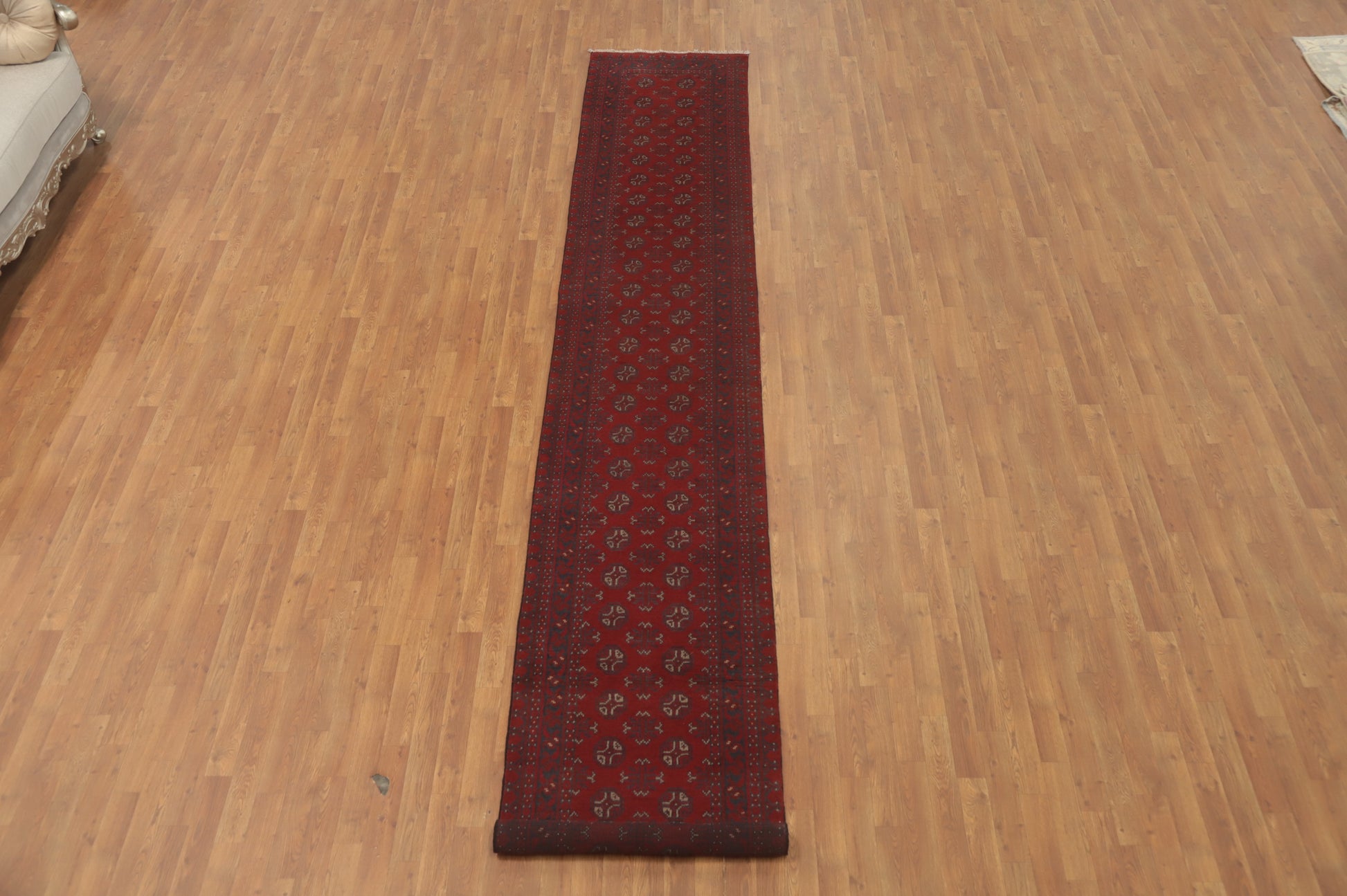 A Beautiful Genuine Afghanistan Balouch rug is Hand Knotted by skillful weavers in Afghanistan with 100% Wool Material. This rug is in New, First Quality condition. dimensions are 16' 0'' X 2' 8'' in foot and 488 X 81 in centimeter. the primary color is Red.