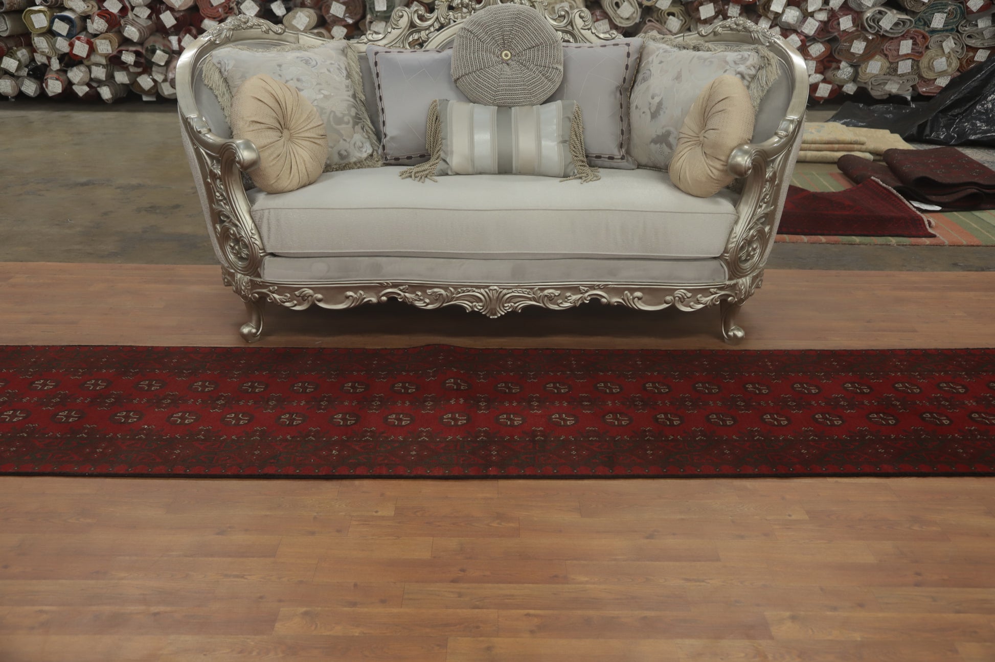 A Beautiful Genuine Afghanistan Balouch rug is Hand Knotted by skillful weavers in Afghanistan with 100% Wool Material. This rug is in New, First Quality condition. dimensions are 18' 7'' X 2' 8'' in foot and 566 X 81 in centimeter. the primary color is Red.