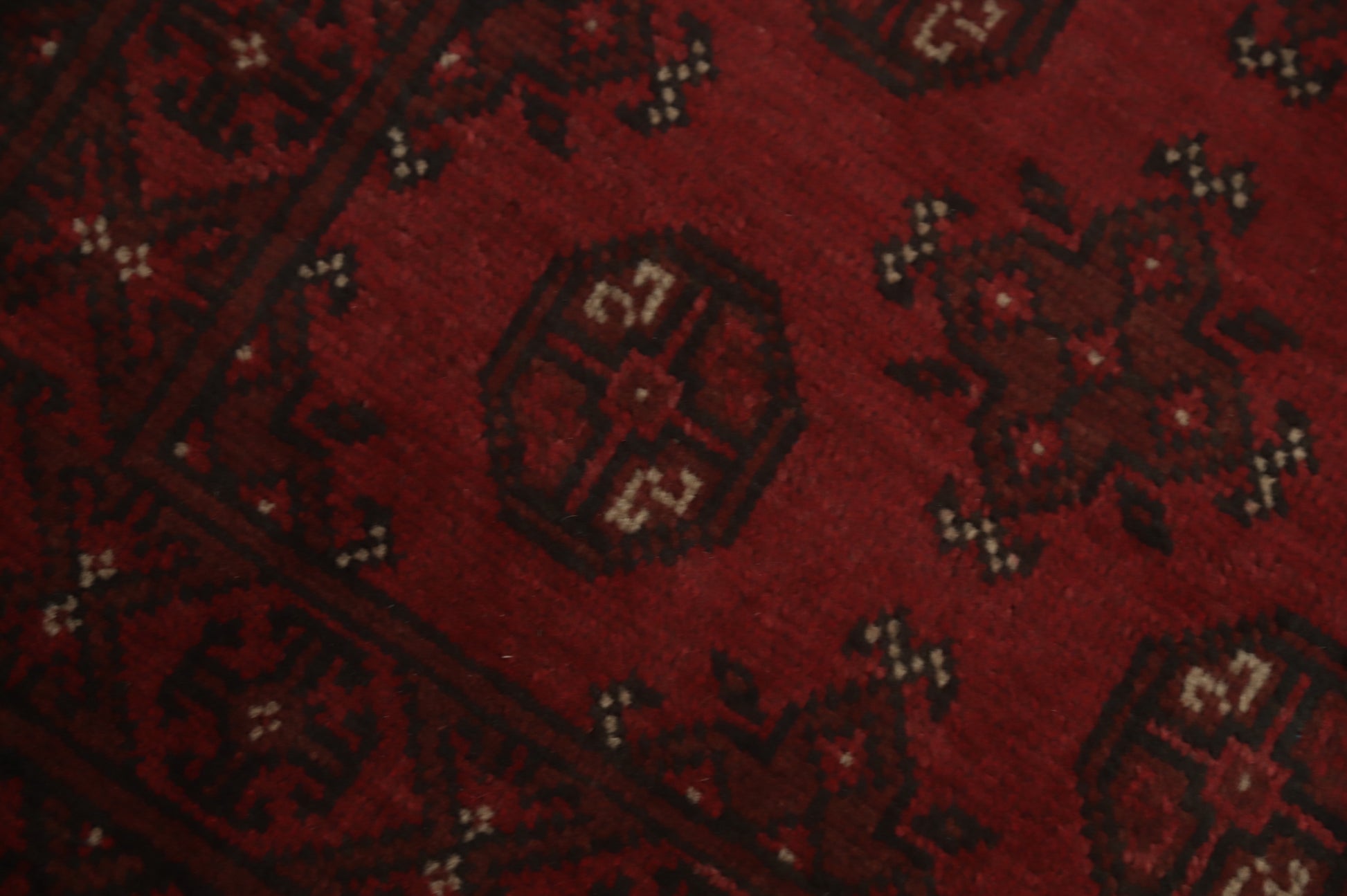 A Beautiful Genuine Afghanistan Balouch rug is Hand Knotted by skillful weavers in Afghanistan with 100% Wool Material. This rug is in New, First Quality condition. dimensions are 19' 1'' X 2' 7'' in foot and 582 X 79 in centimeter. the primary color is Red.