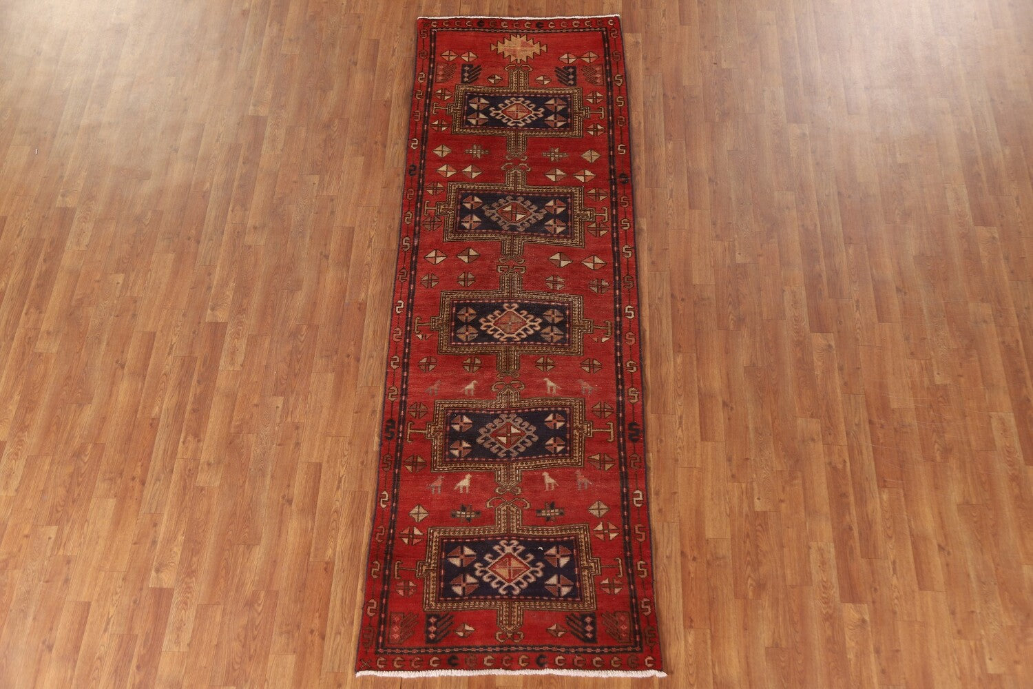 Tribal Red Hamedan Persian Runner Rug 3x9