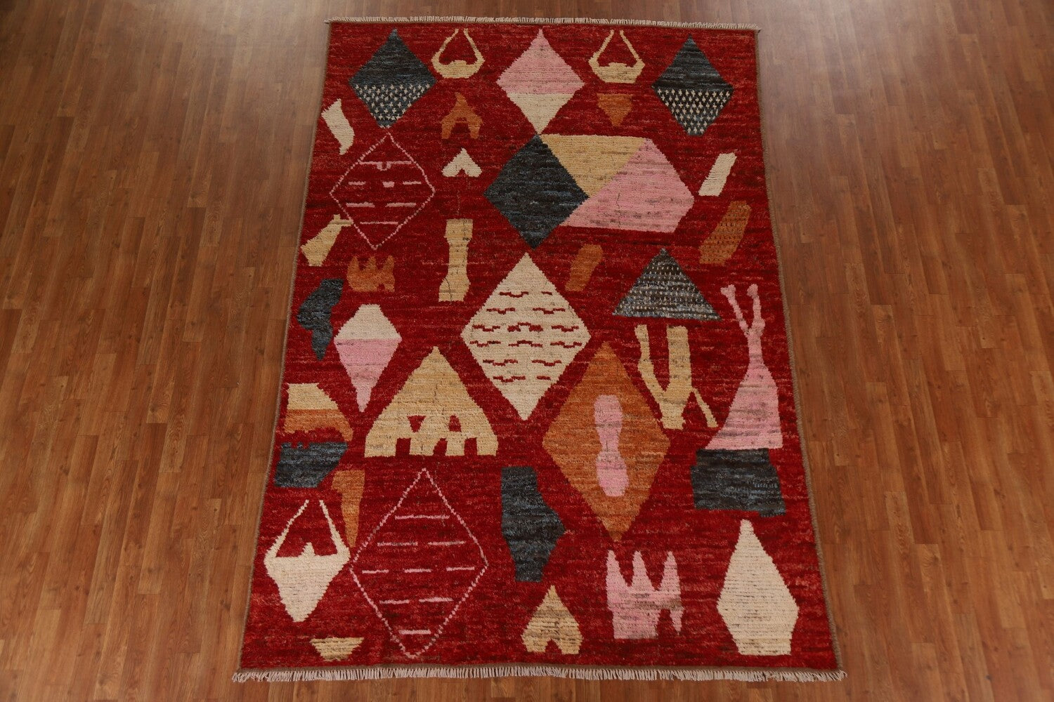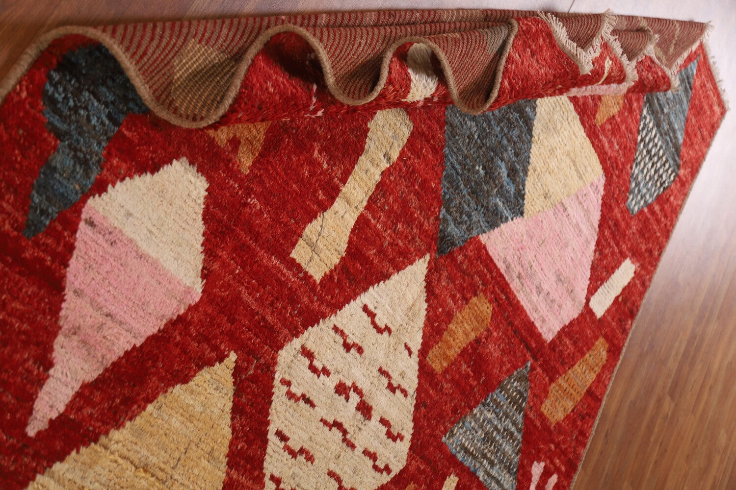 A Beautiful Genuine Pakistan Moroccan rug is Hand Knotted by skillful weavers in Pakistan with 100% Wool Material. This rug is in condition. dimensions are 9' 10'' X 6' 9'' in foot and 300 X 206 in centimeter. the primary color is Red.