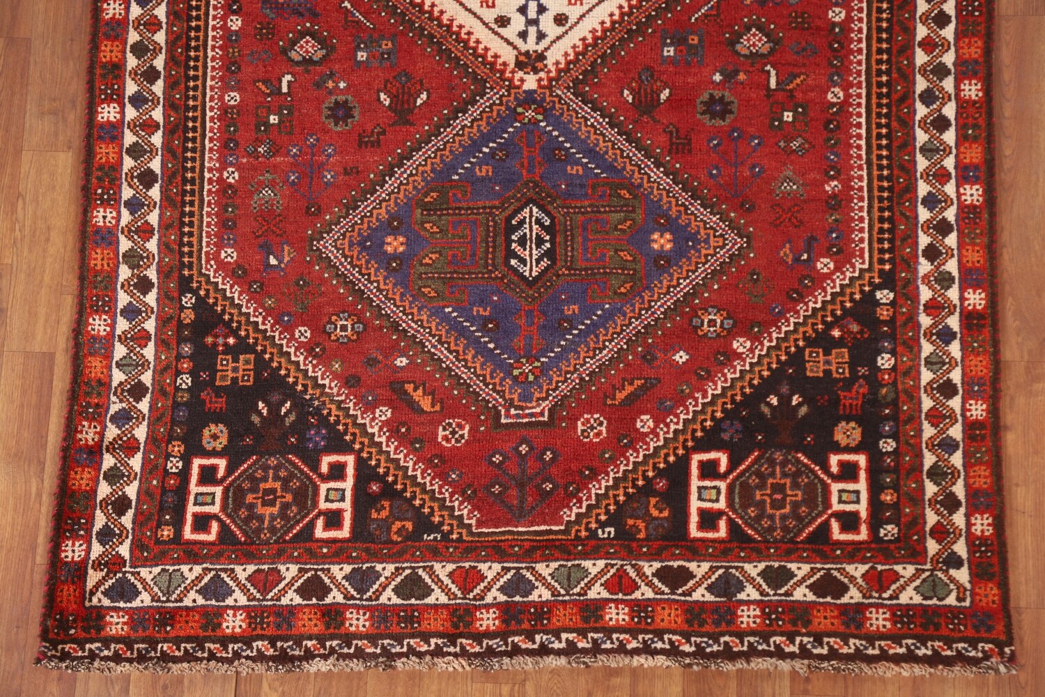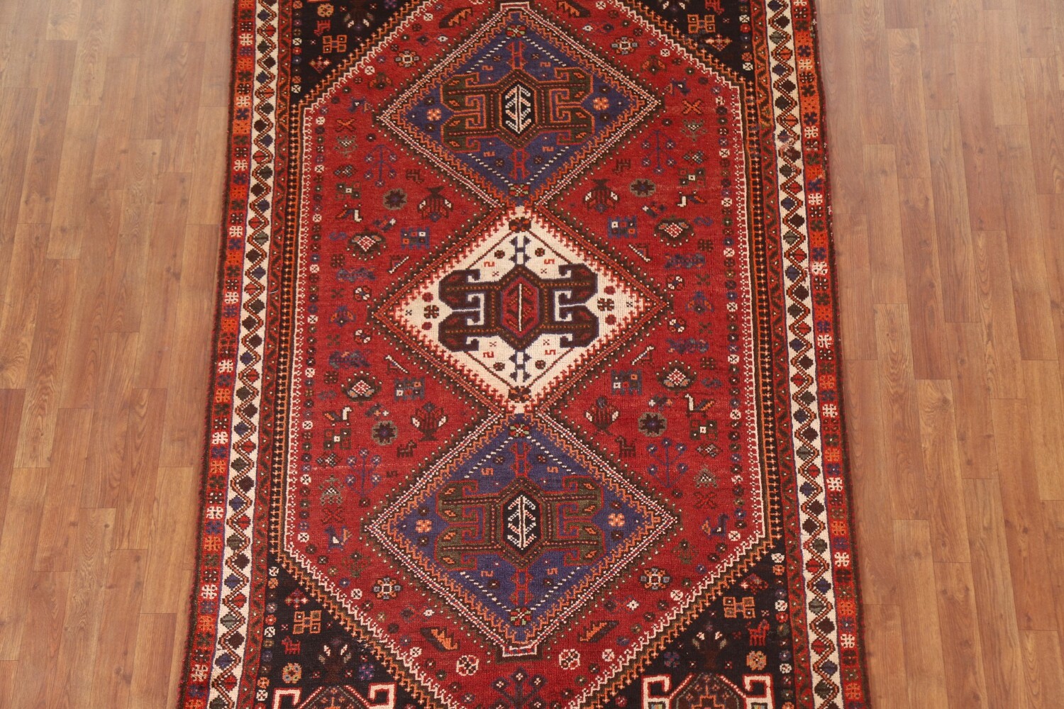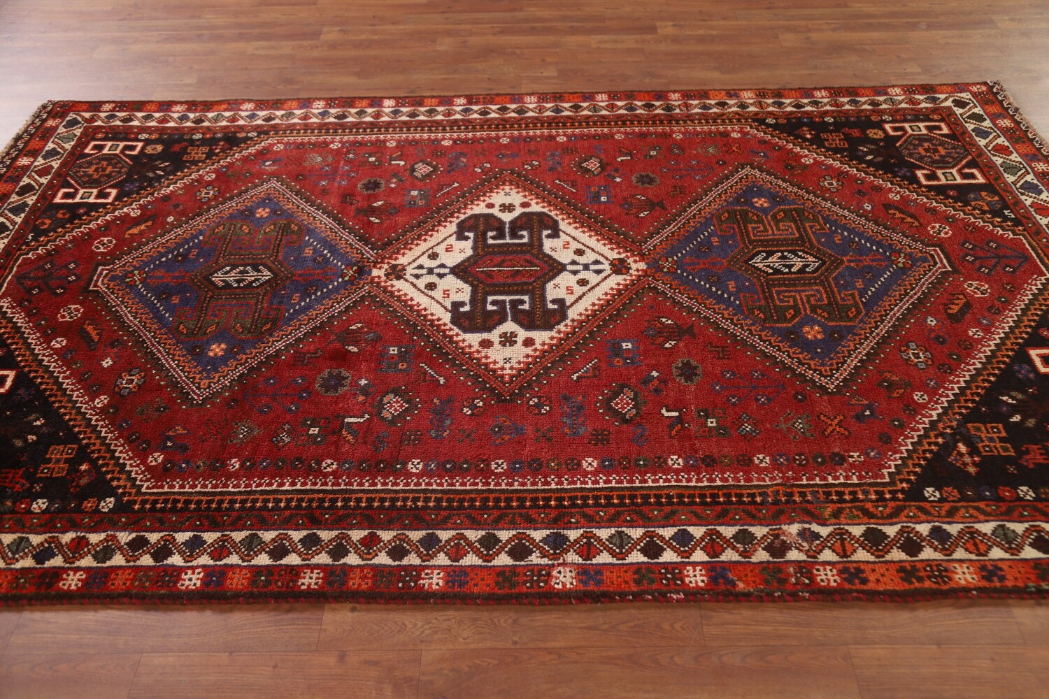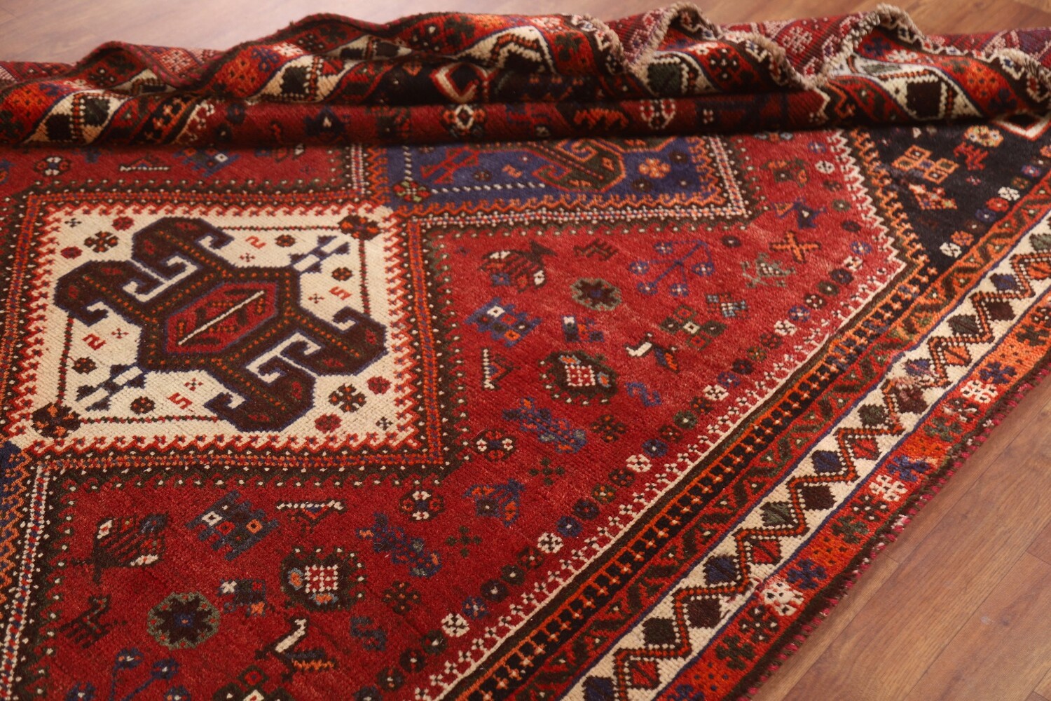 A Beautiful Genuine Persia ( Persia ) Qashqai rug is Hand Knotted by skillful weavers in Persia ( Persia ) with 100% Wool Material. This rug is in Very Good condition. dimensions are 8' 5'' X 5' 1'' in foot and 257 X 155 in centimeter. the primary color is Red.