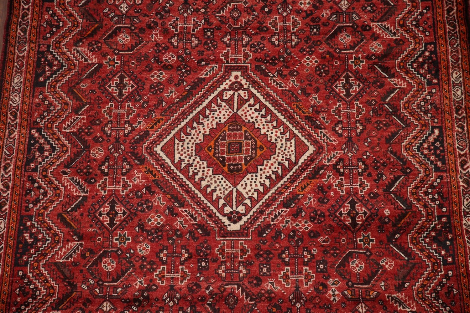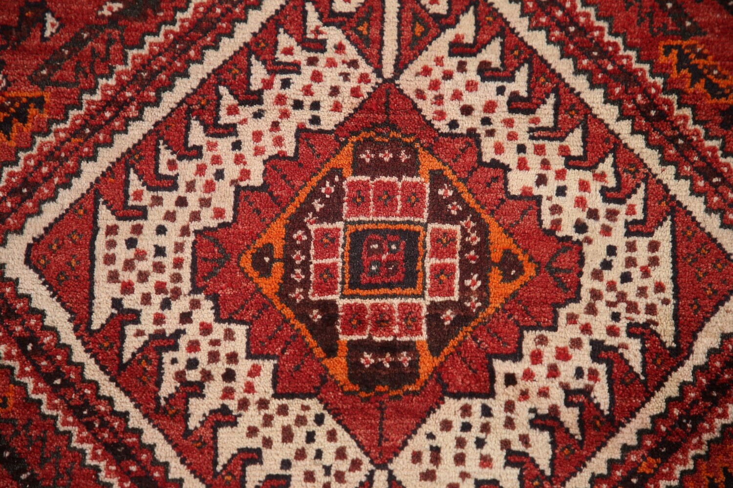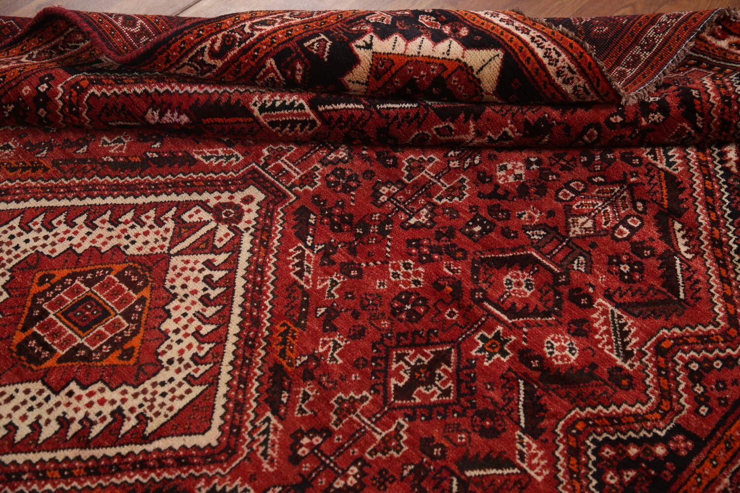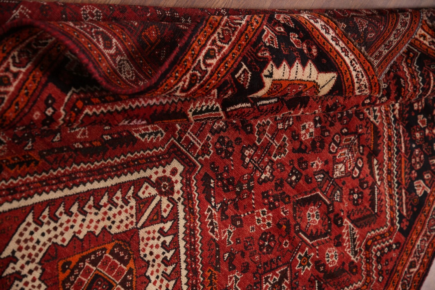 A Beautiful Genuine Persia ( Persia ) Qashqai rug is Hand Knotted by skillful weavers in Persia ( Persia ) with 100% Wool Material. This rug is in Very Good condition. dimensions are 8' 0'' X 4' 7'' in foot and 244 X 140 in centimeter. the primary color is Red.