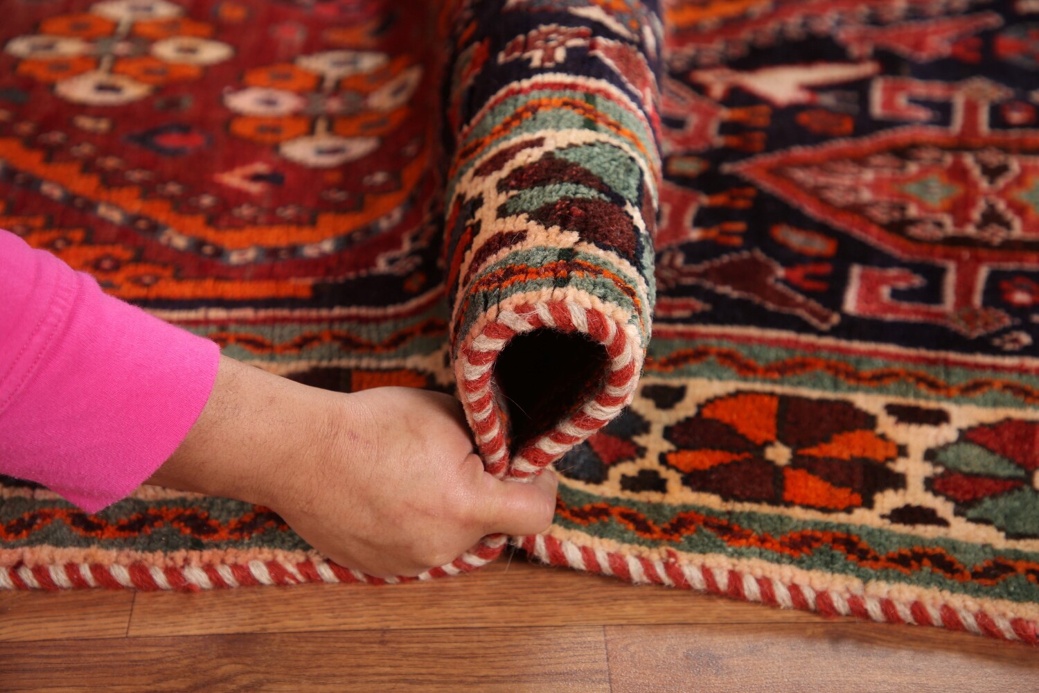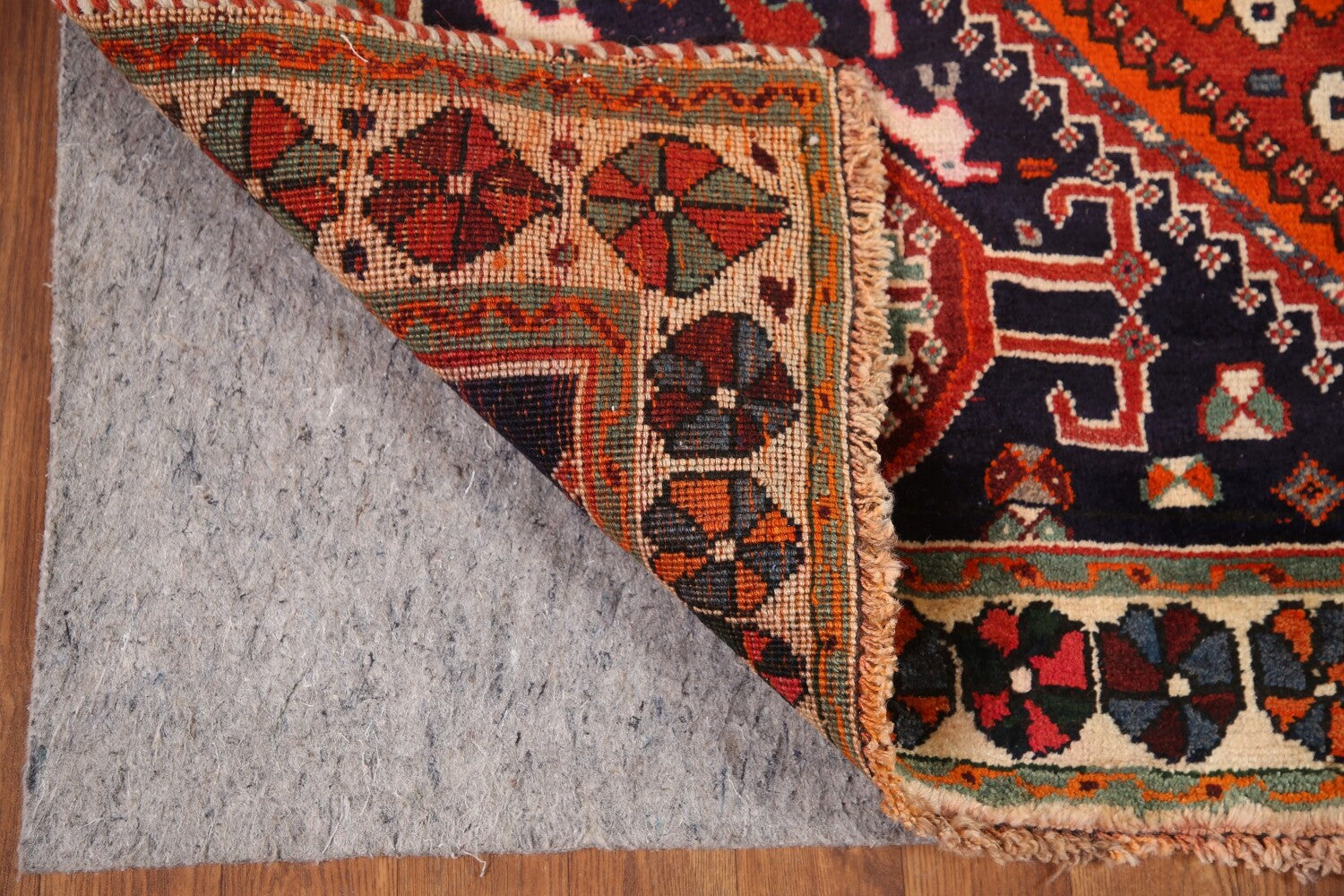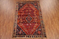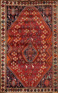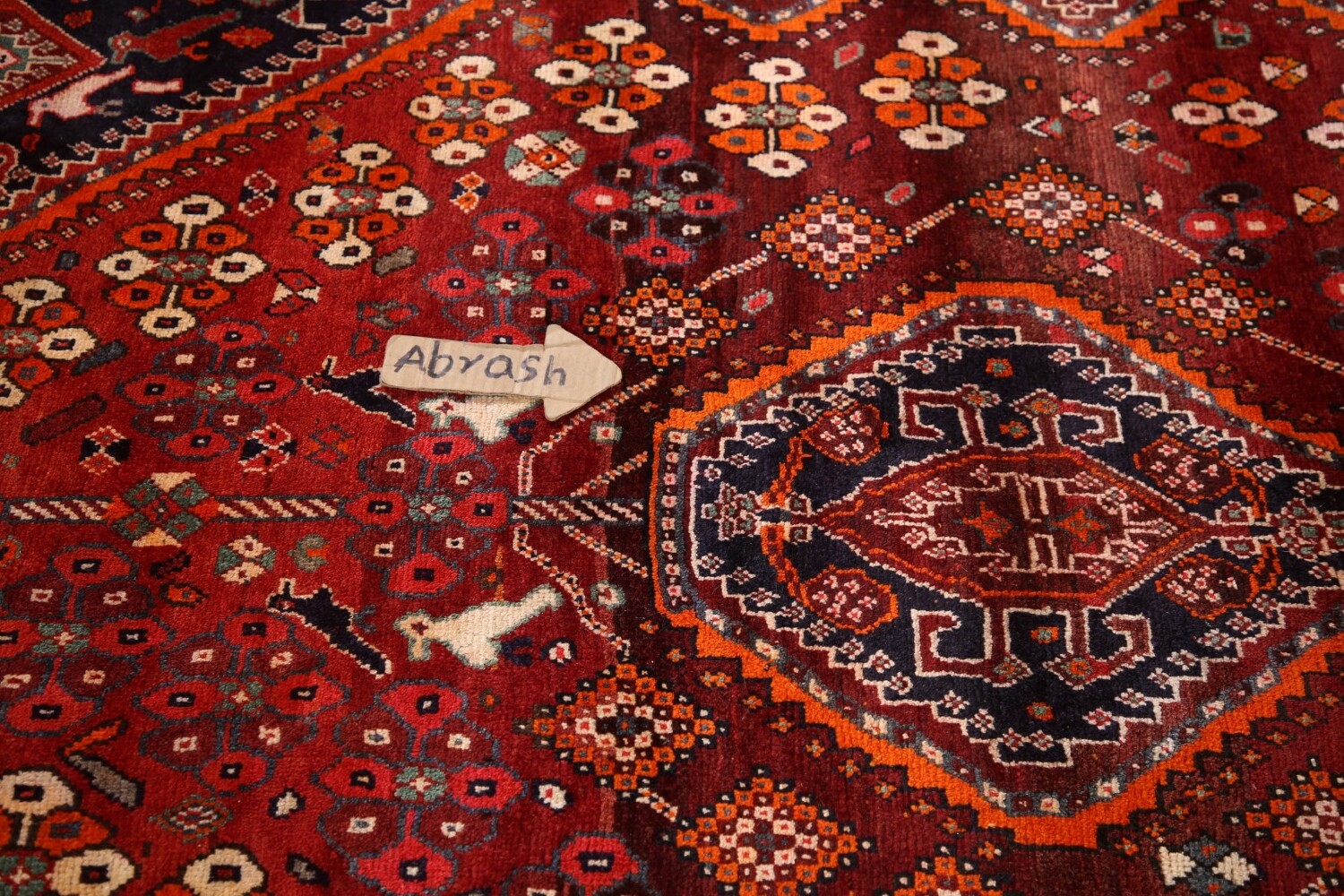 A Beautiful Genuine Persia ( Persia ) Shiraz rug is Hand Knotted by skillful weavers in Persia ( Persia ) with 100% Wool Material. This rug is in Very Good (Abrash) condition. dimensions are 8' 10'' X 5' 11'' in foot and 269 X 180 in centimeter. the primary color is Red.
