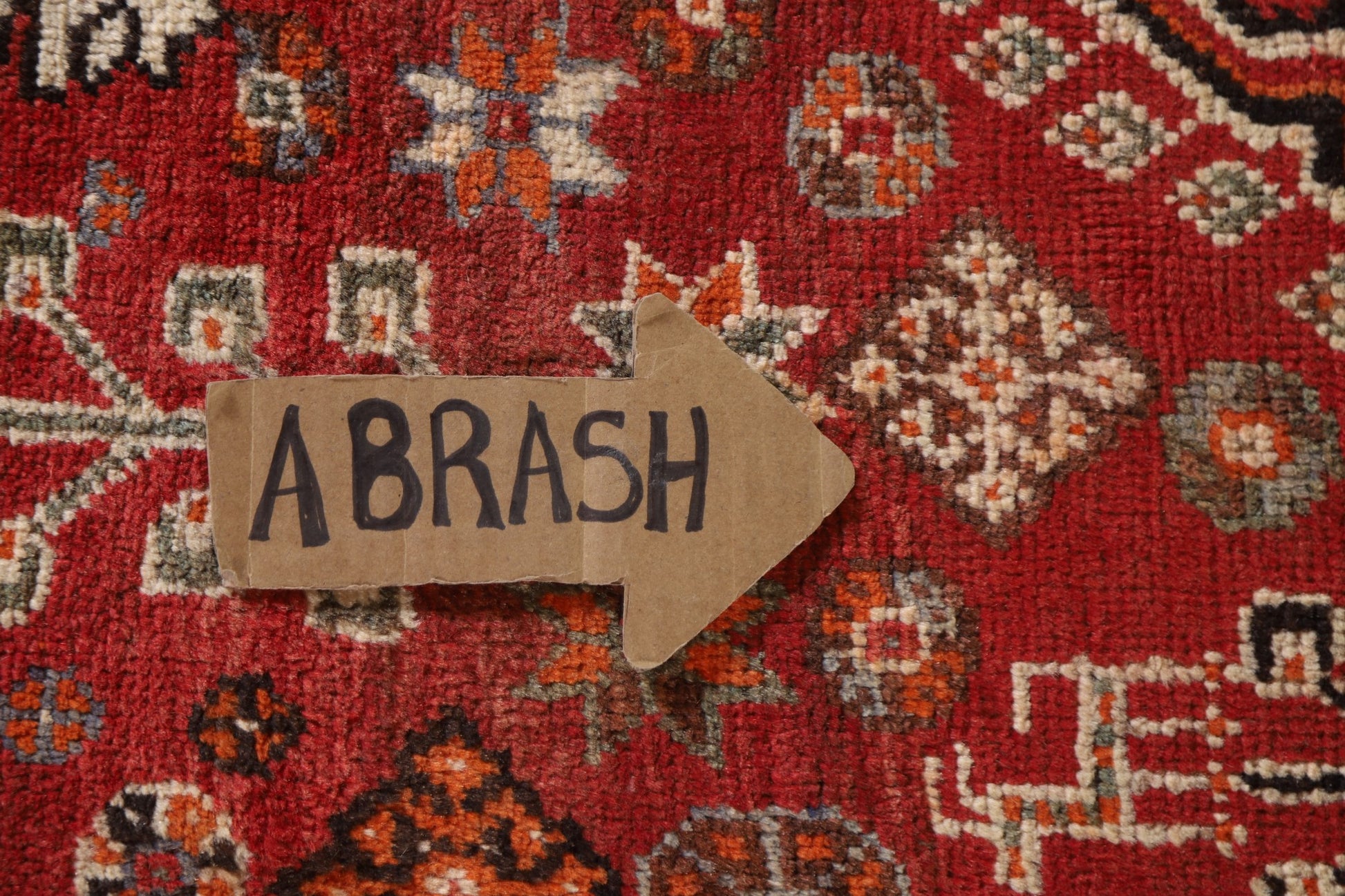 A Beautiful Genuine Persia ( Persia ) Shiraz rug is Hand Knotted by skillful weavers in Persia ( Persia ) with 100% Wool Material. This rug is in Very Good (Abrash) condition. dimensions are 8' 2'' X 5' 6'' in foot and 249 X 168 in centimeter. the primary color is Red.