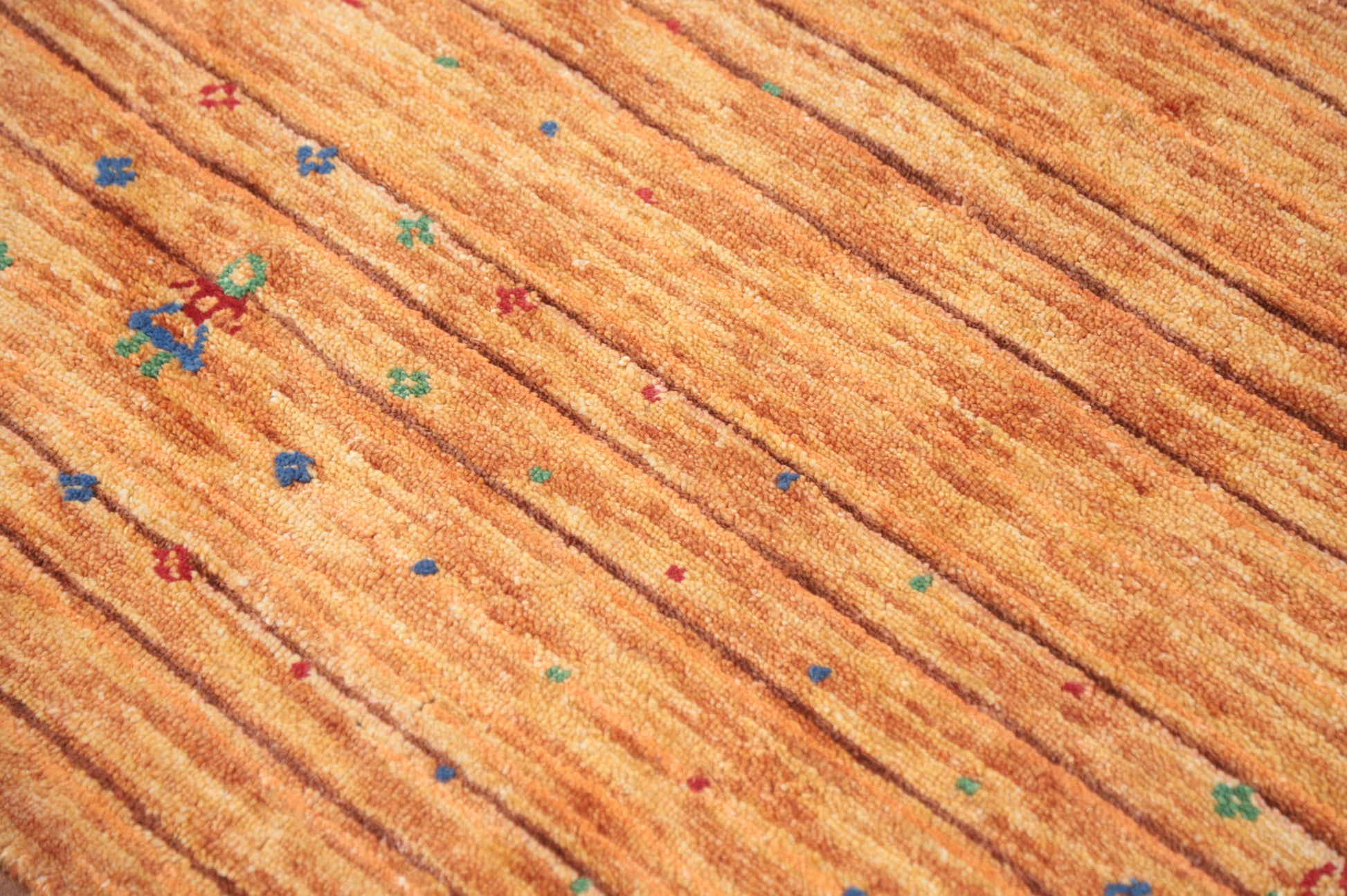 A Beautiful Genuine India Gabbeh rug is Hand Knotted by skillful weavers in India with Silk Material. This rug is in New, First Quality condition. dimensions are 8' 2'' X 8' 3'' in foot and  249 X 251 in centimeter. the primary color is Oranges & Rust.