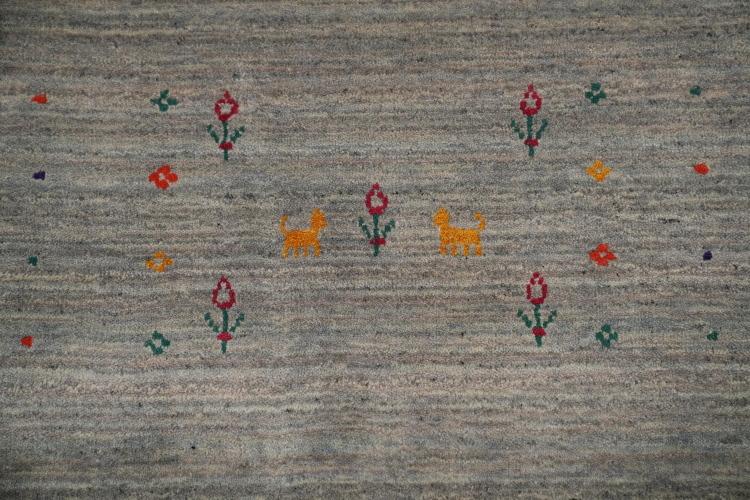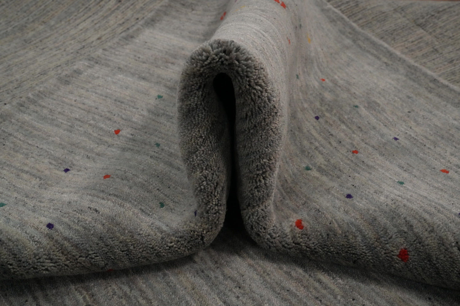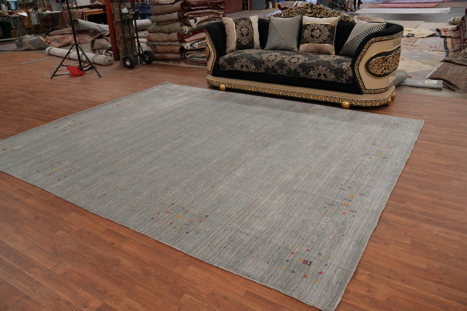 A Beautiful Genuine India Gabbeh rug is Hand Knotted by skillful weavers in India with Silk Material. This rug is in New, First Quality condition. dimensions are 11' 6'' X 9' 2'' in foot and 351 X 279 in centimeter. the primary color is Greys & Charcoal.