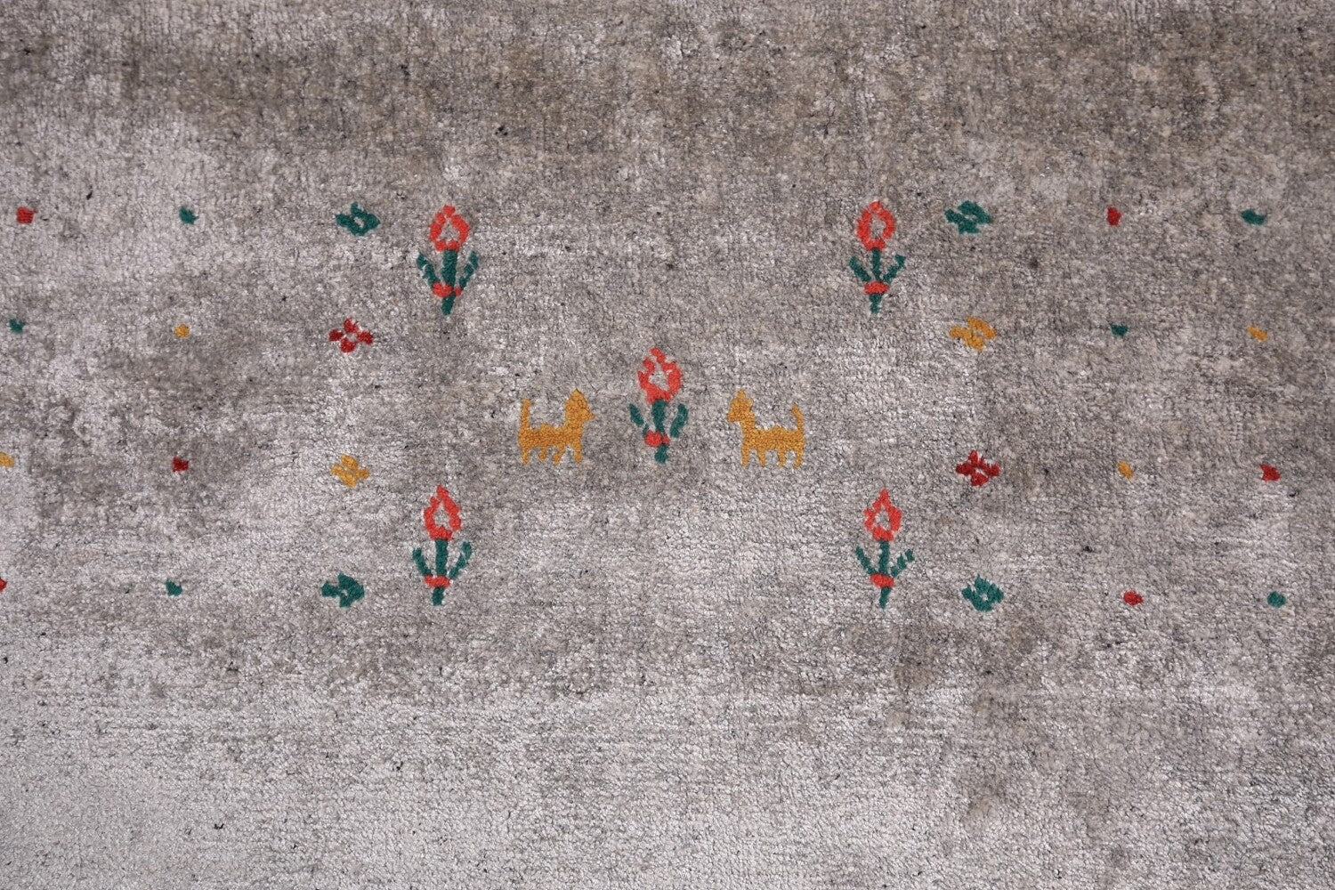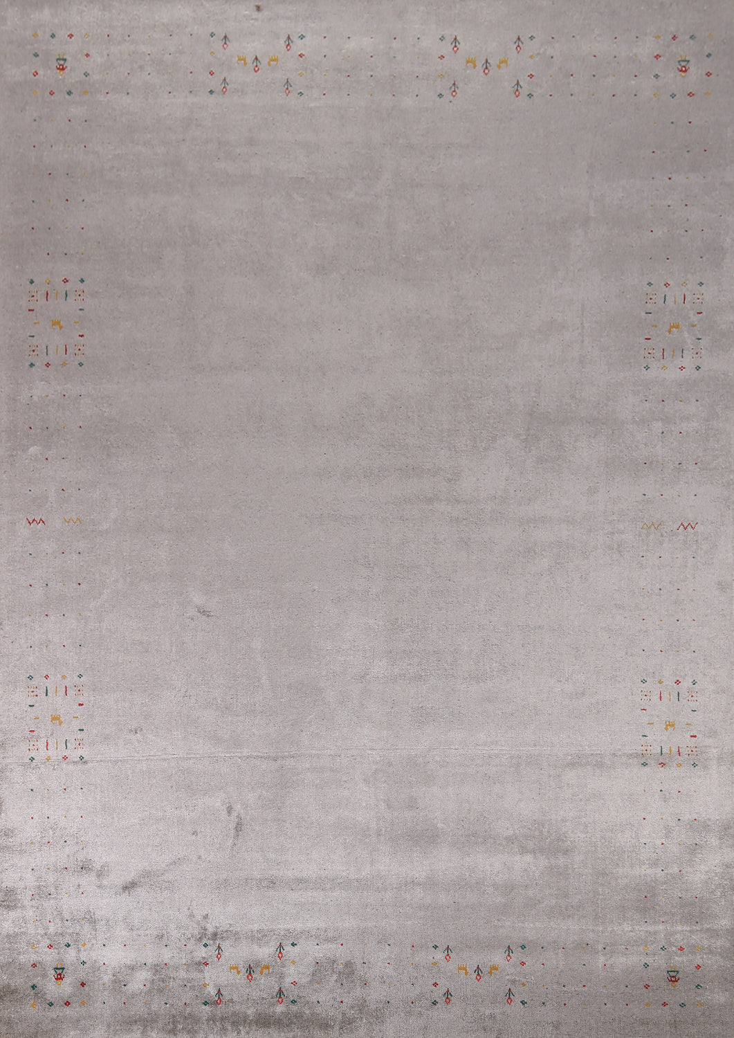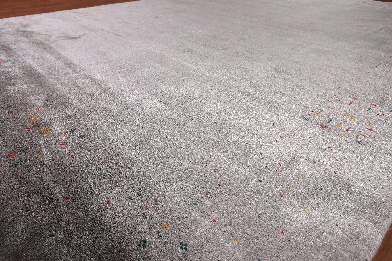 A Beautiful Genuine India Gabbeh rug is Hand Knotted by skillful weavers in India with Silk Material. This rug is in New, First Quality condition. dimensions are 11' 7'' X 9' 0'' in foot and 353 X 274 in centimeter. the primary color is Greys & Charcoal.