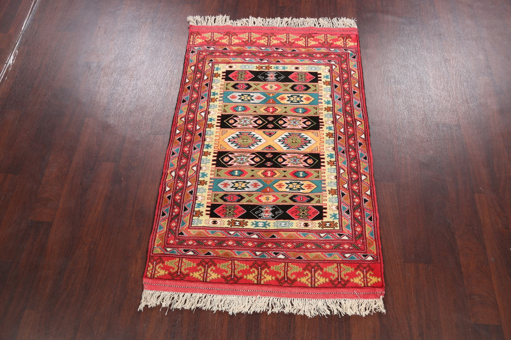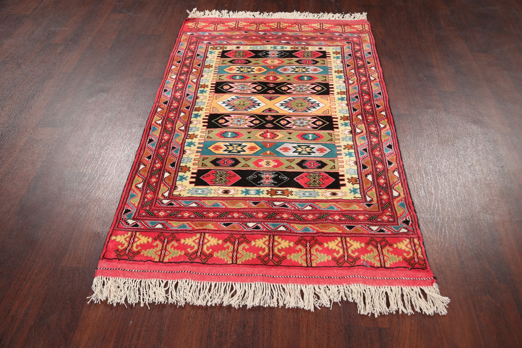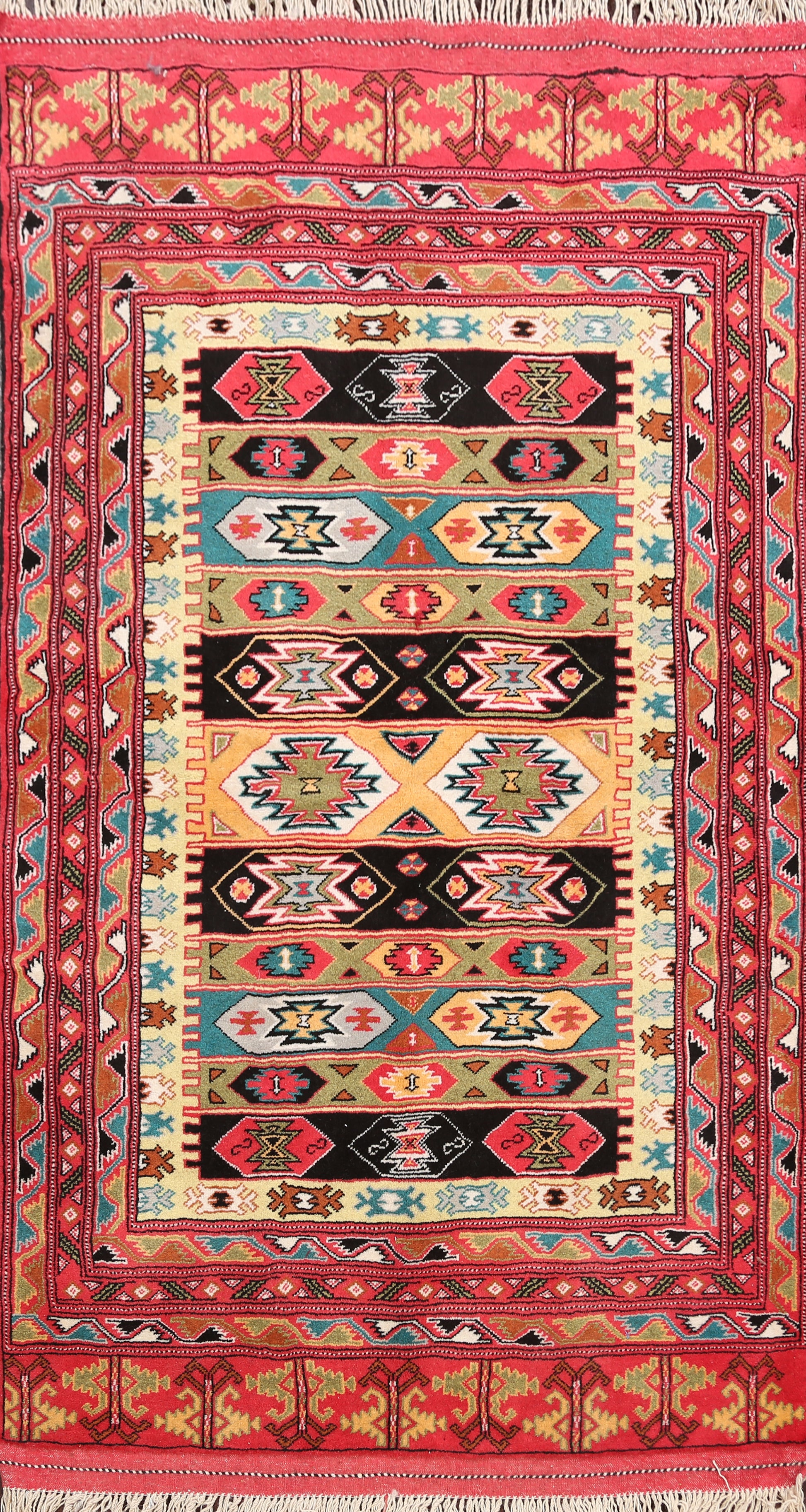 A Beautiful Genuine Persia ( Persia ) Turkoman rug is Hand Knotted by skillful weavers in Persia ( Persia ) with 100% Wool Material. This rug is in New, First Quality condition. dimensions are 5' 2'' X 3' 5'' in foot and 157 X 104 in centimeter. the primary color is Multi-Colored.