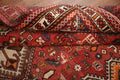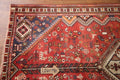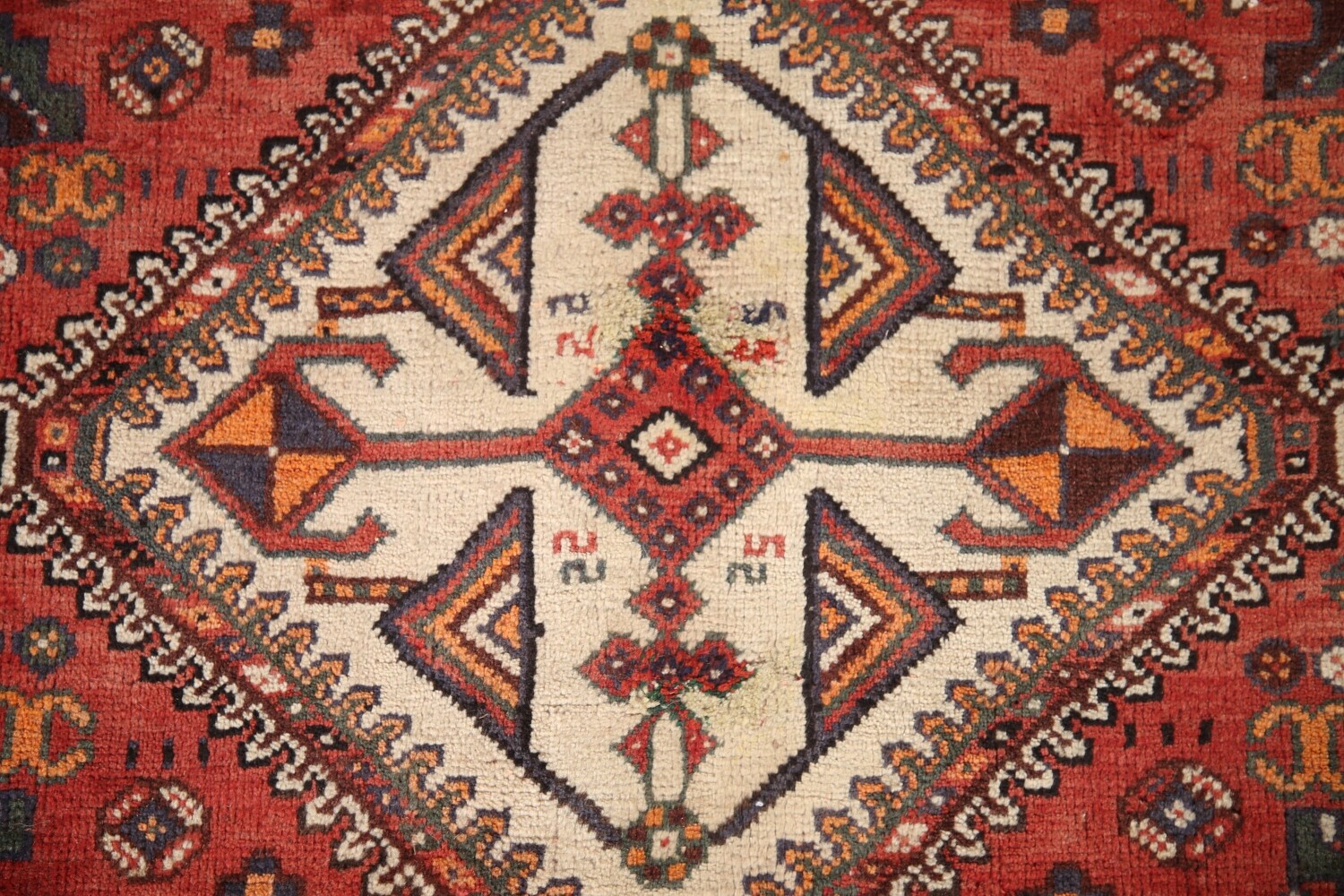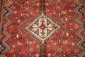 A Beautiful Genuine Persia ( Persia ) Shiraz rug is Hand Knotted by skillful weavers in Persia ( Persia ) with 100% Wool Material. This rug is in Very Good (Low Pile-Abrash) condition. dimensions are 7' 6'' X 5' 0'' in foot and 229 X 152 in centimeter. the primary color is Red.