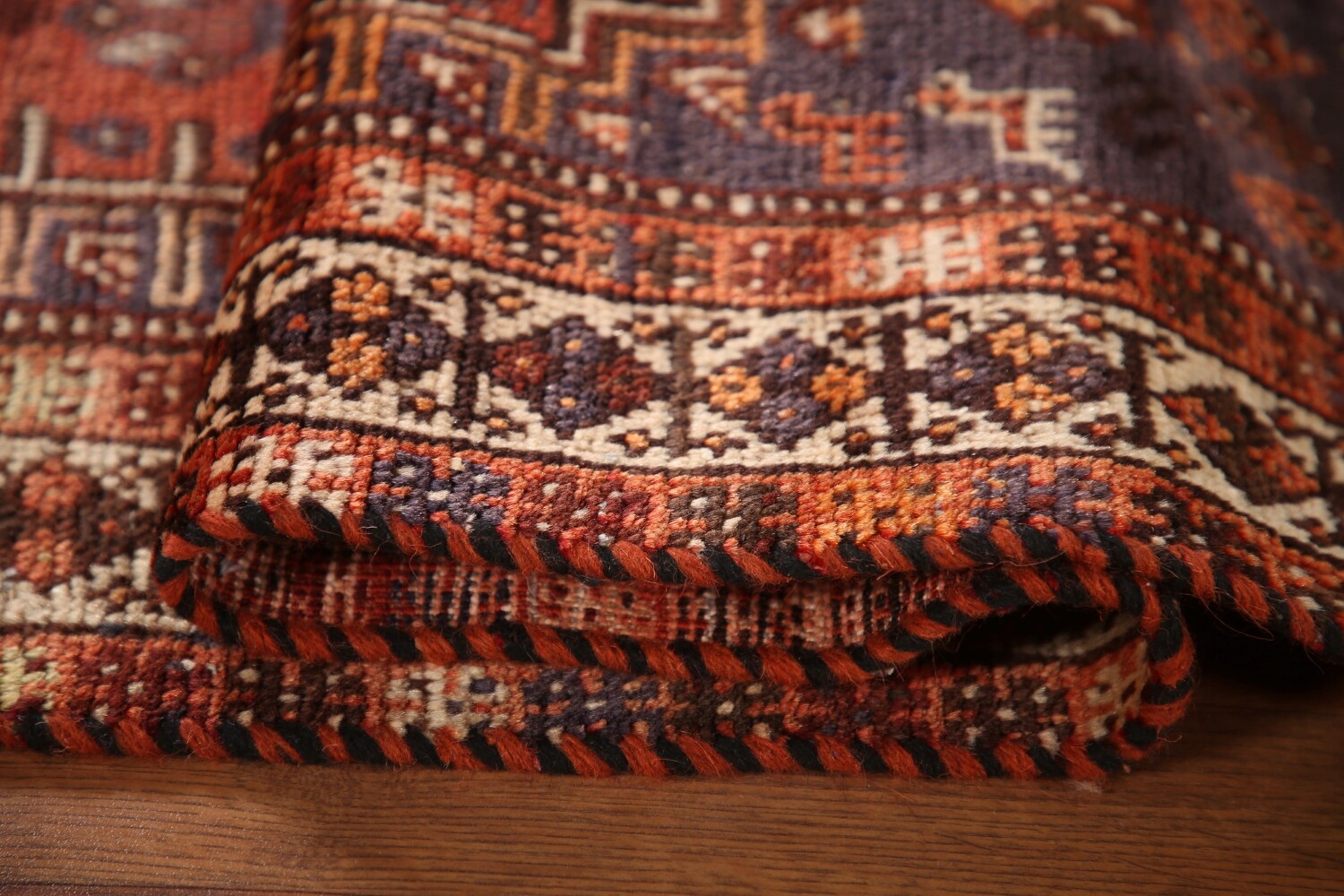 A Beautiful Genuine Persia ( Persia ) Qashqai rug is Hand Knotted by skillful weavers in Persia ( Persia ) with 100% Wool Material. This rug is in Very Good condition. dimensions are 7' 11'' X 4' 11'' in foot and 241 X 150 in centimeter. the primary color is Red.
