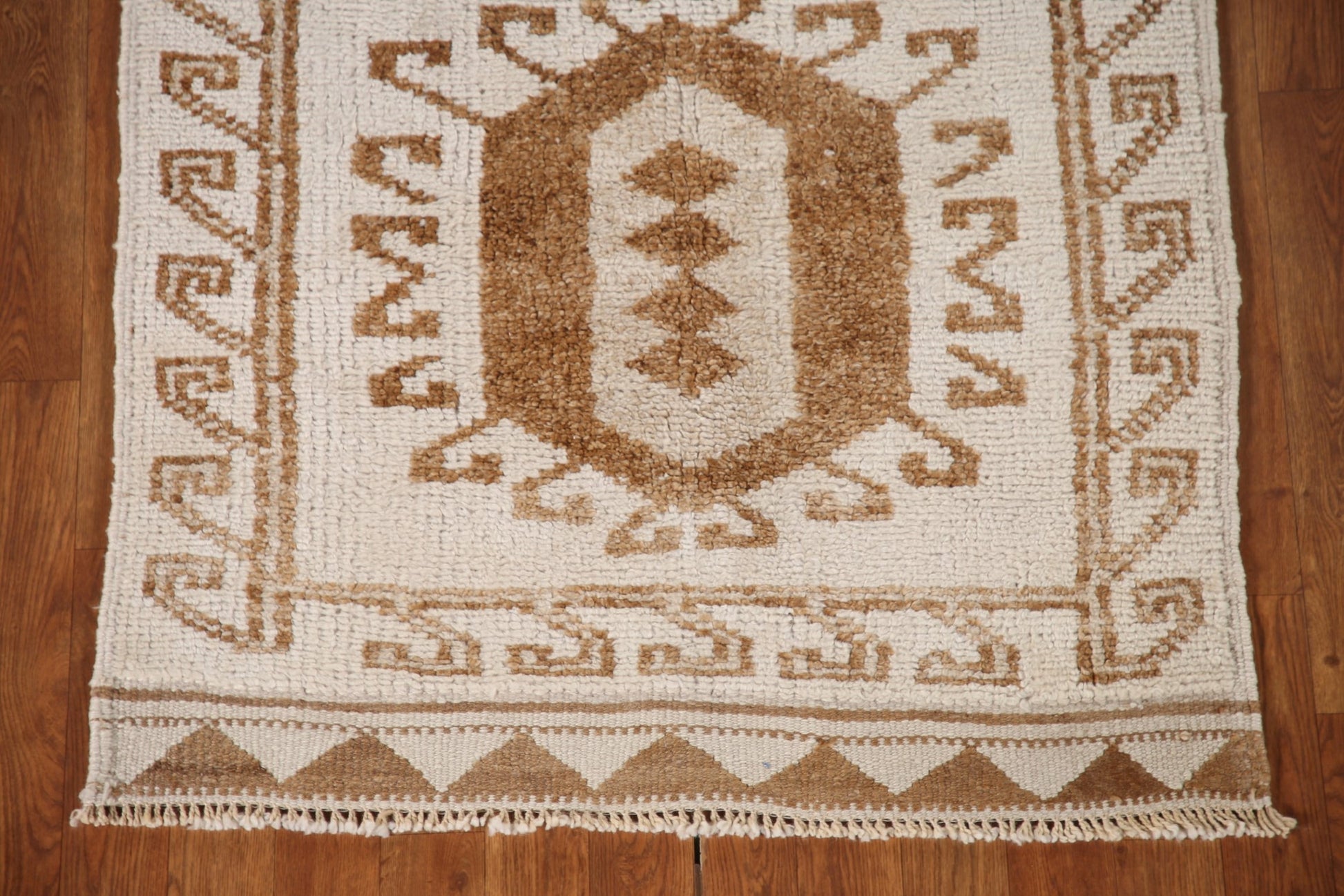 A Beautiful Genuine Turkey Anatolian rug is Hand Knotted by skillful weavers in Turkey with 100% Wool Material. This rug is in New, First Quality condition. dimensions are 11' 7'' X 3' 1'' in foot and 353 X 94 in centimeter. the primary color is Beige & Ivories.
