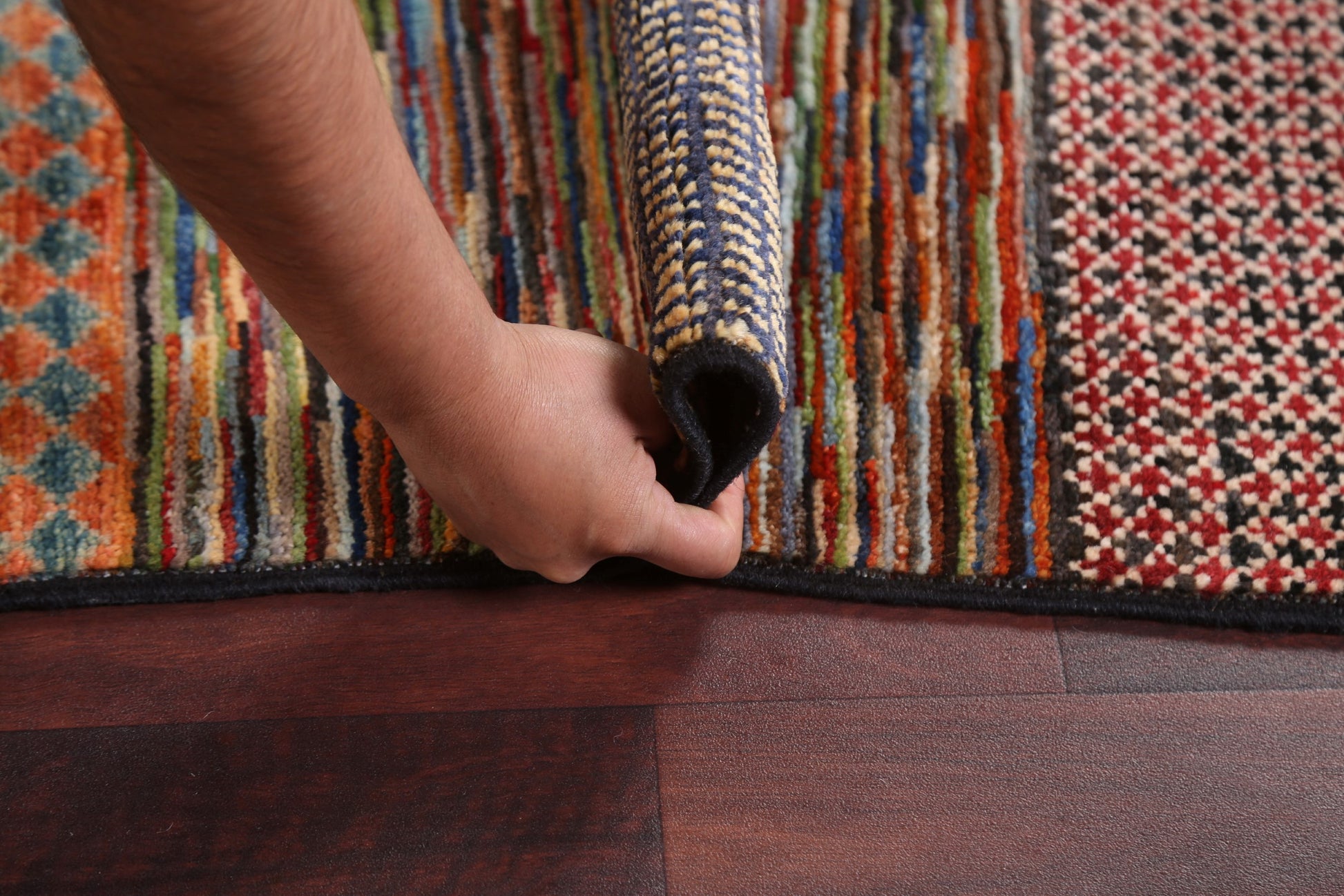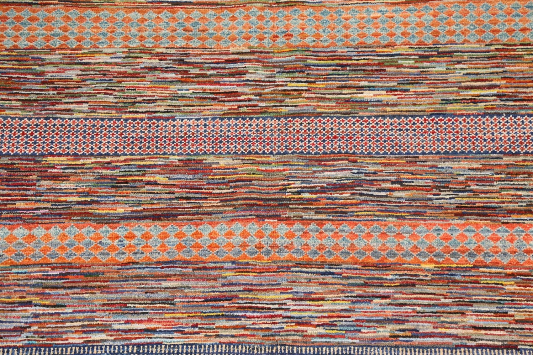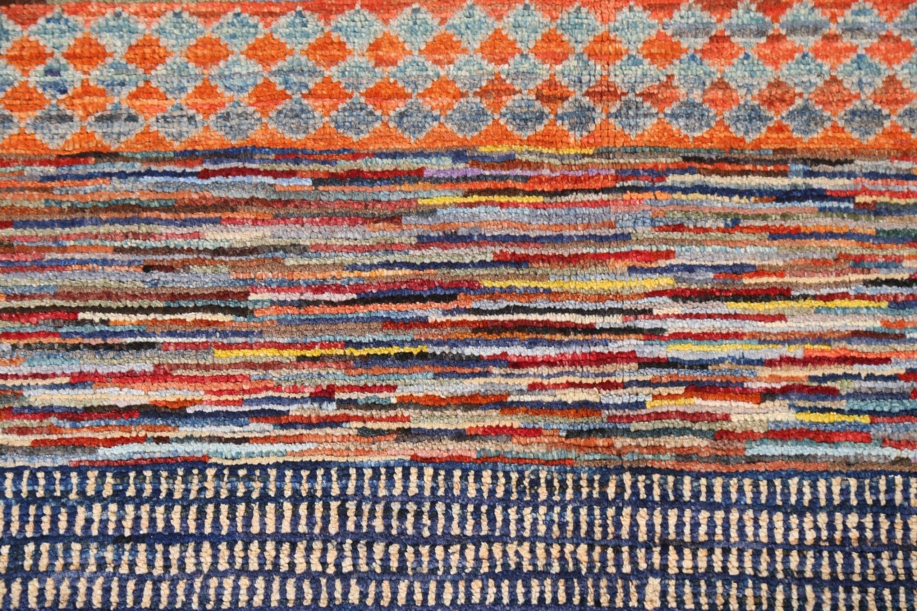 A Beautiful Genuine Persia ( Persia ) Gabbeh rug is Hand Knotted by skillful weavers in Persia ( Persia ) with 100% Wool Material. This rug is in New, First Quality condition. dimensions are 9' 8'' X 6' 6'' in foot and 295 X 198 in centimeter. the primary color is Multi-Colored.