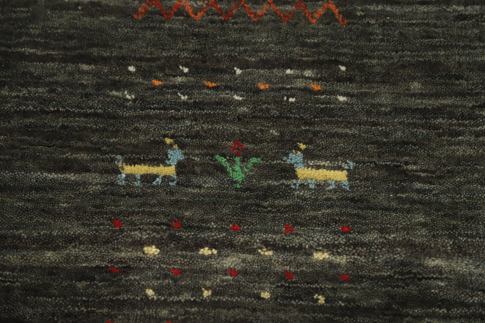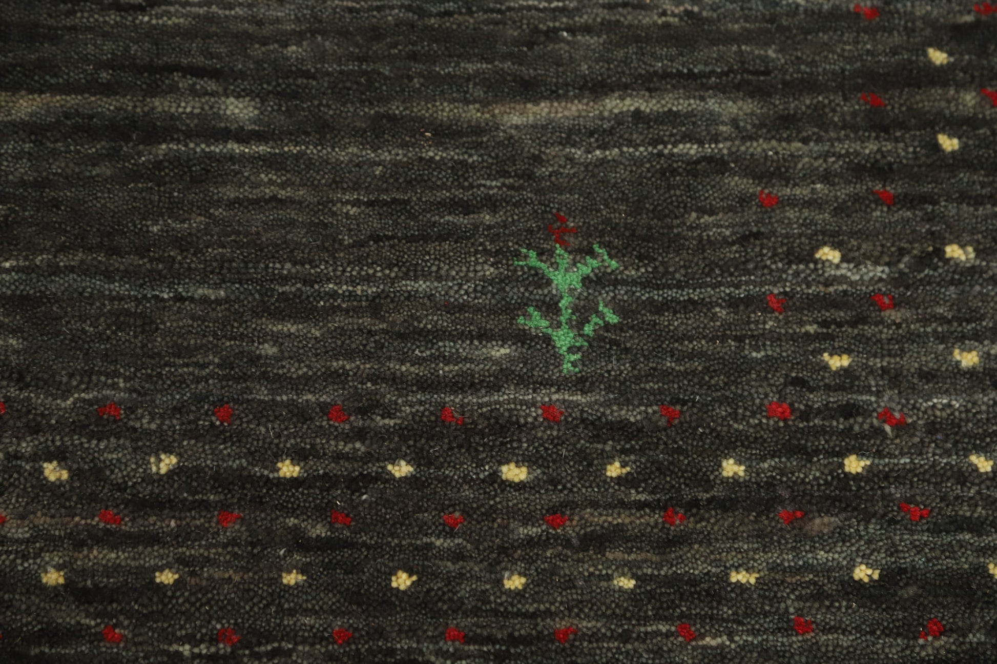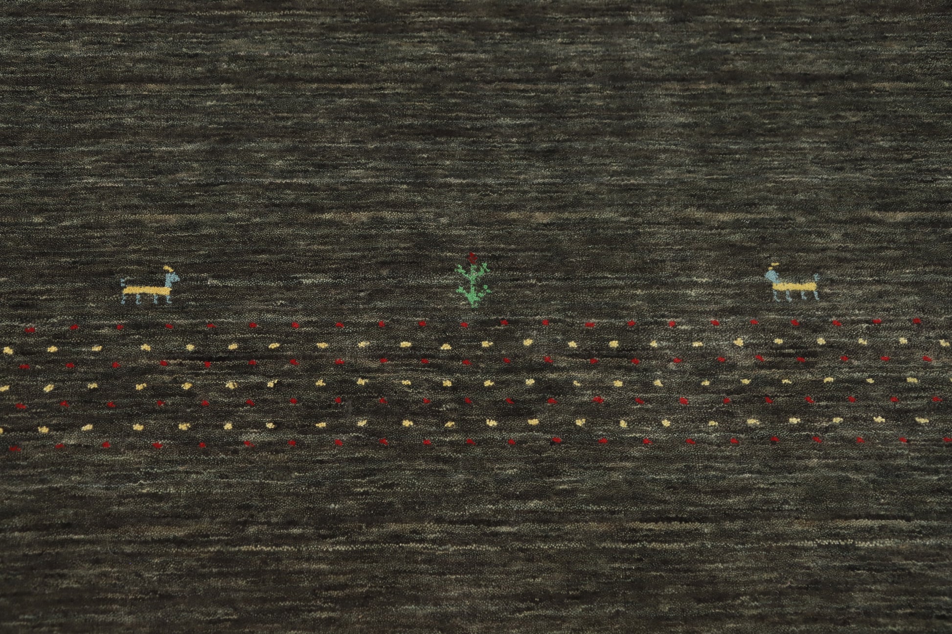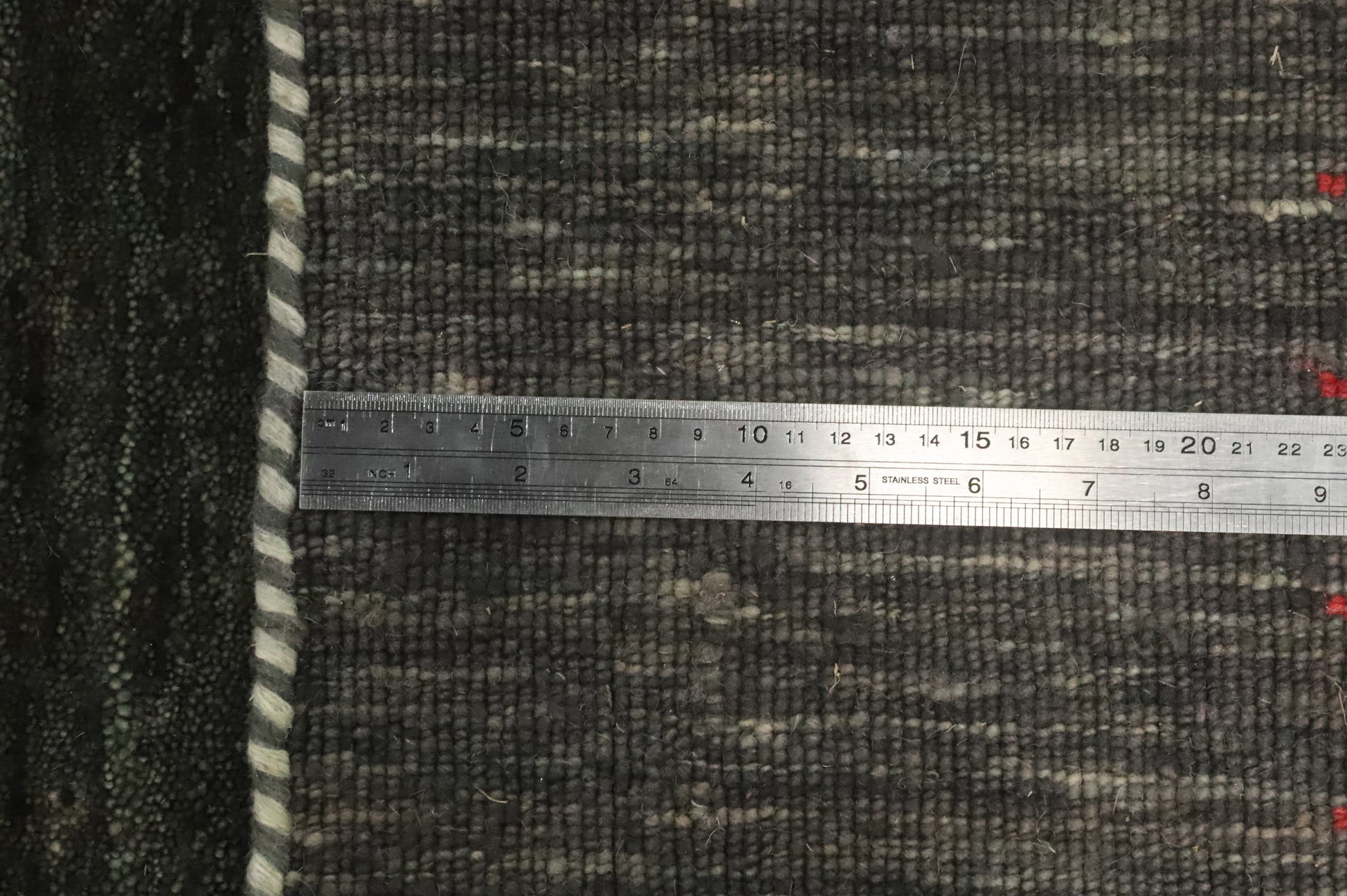 A Beautiful Genuine India Gabbeh rug is Hand Knotted by skillful weavers in India with 100% Wool Material. This rug is in New, First Quality condition. dimensions are 11' 4'' X 8' 10'' in foot and 345 X 269 in centimeter. the primary color is Greys & Charcoal.