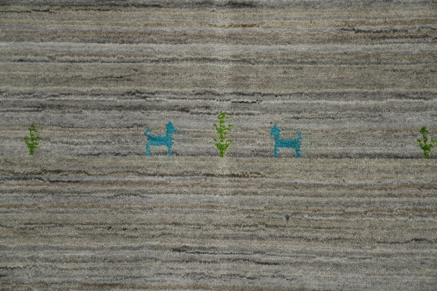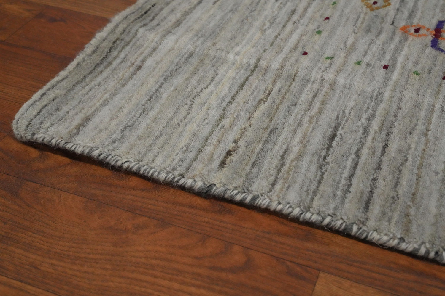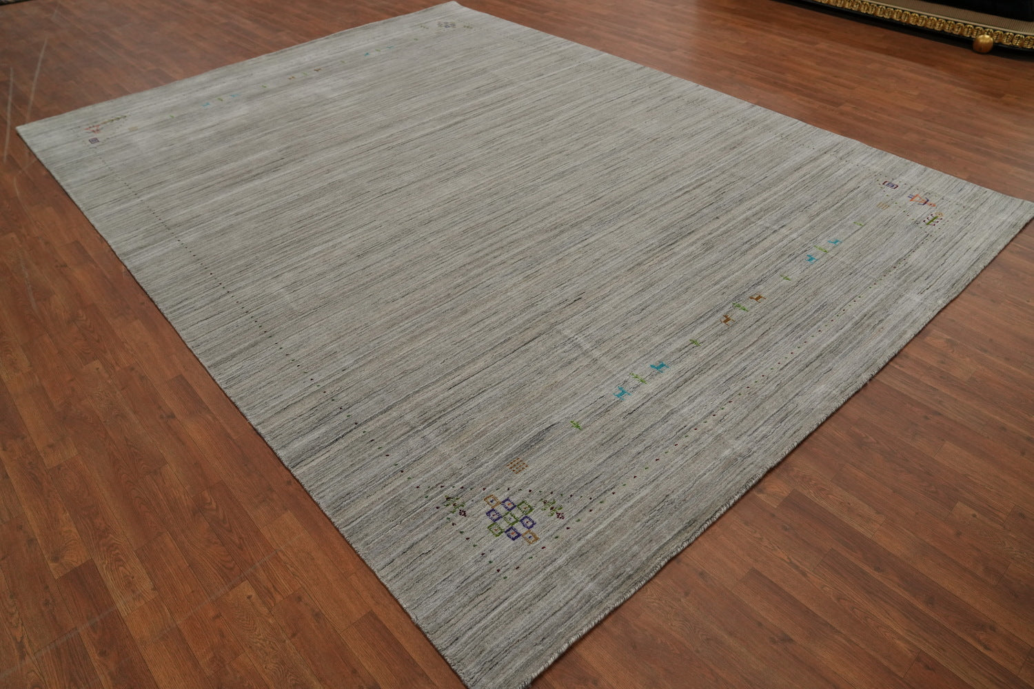 A Beautiful Genuine India Gabbeh rug is Hand Knotted by skillful weavers in India with 100% Wool Material. This rug is in New, First Quality condition. dimensions are 11' 9'' X 8' 9'' in foot and 358 X 267 in centimeter. the primary color is Greys & Charcoal.