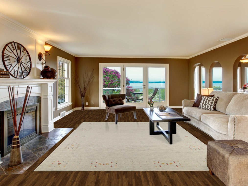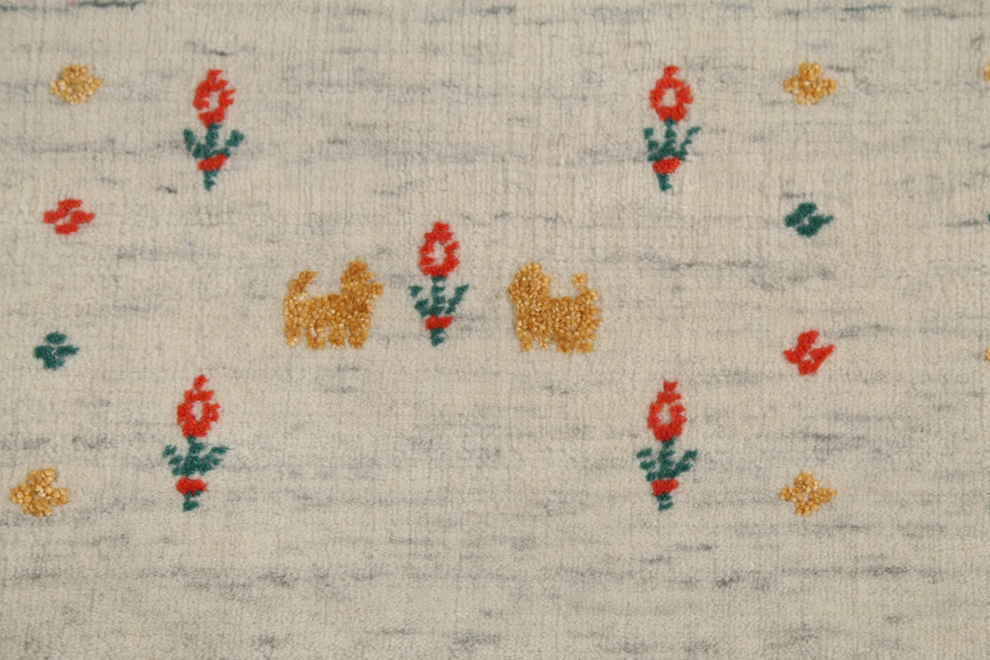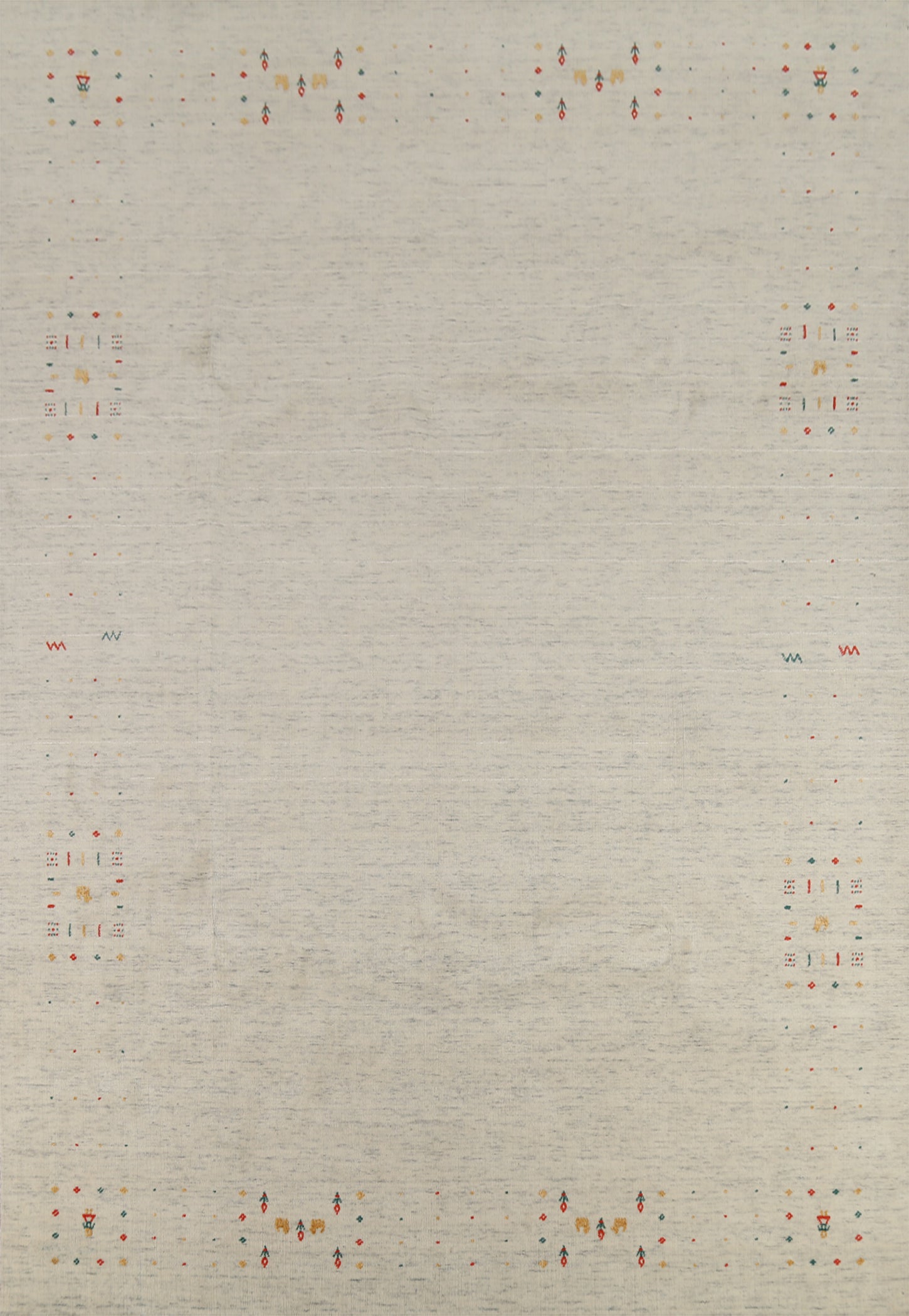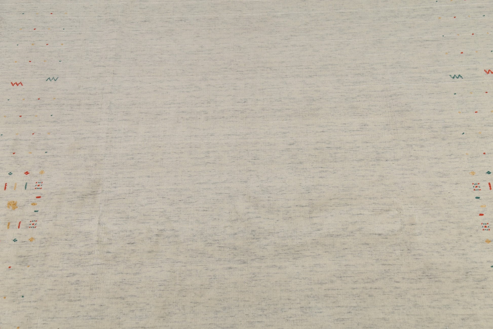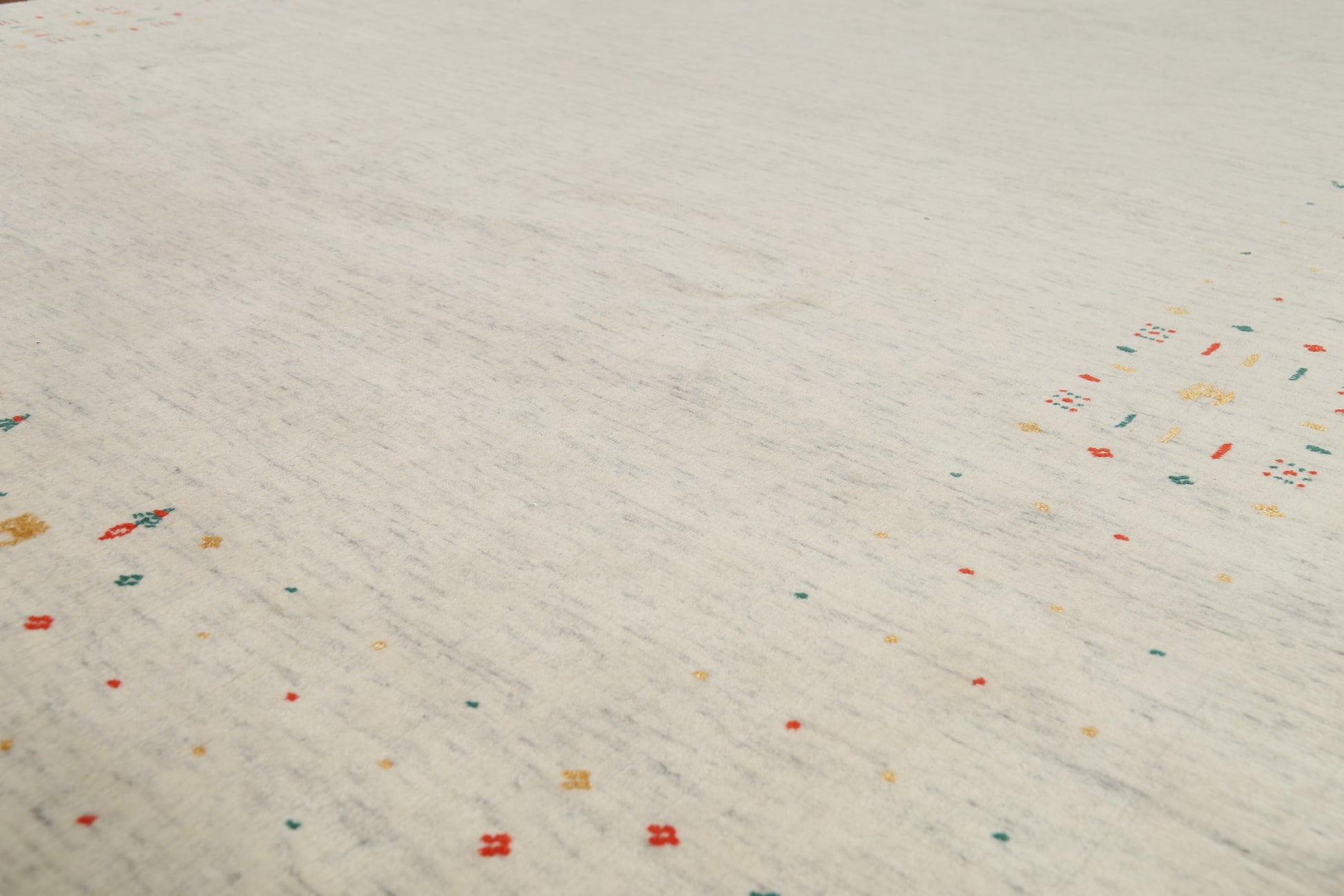 A Beautiful Genuine India Gabbeh rug is Hand Knotted by skillful weavers in India with 100% Wool Material. This rug is in New, First Quality condition. dimensions are 11' 7'' X 8' 5'' in foot and 353 X 257 in centimeter. the primary color is Beige & Ivories.