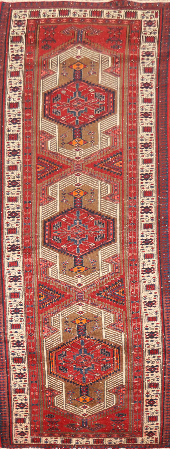 Tribal Wool Geometric Ardebil Persian Runner Rug 3x11