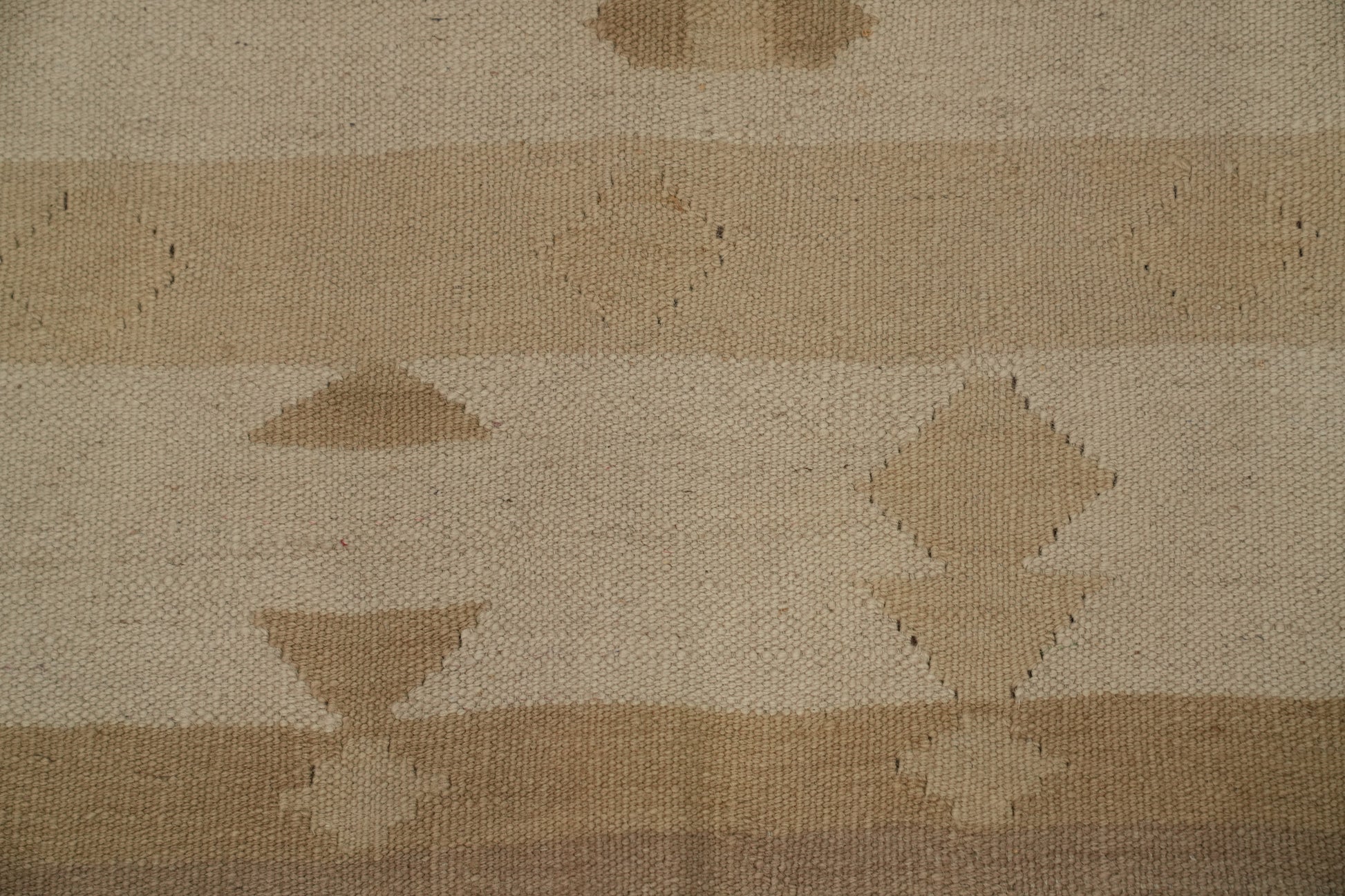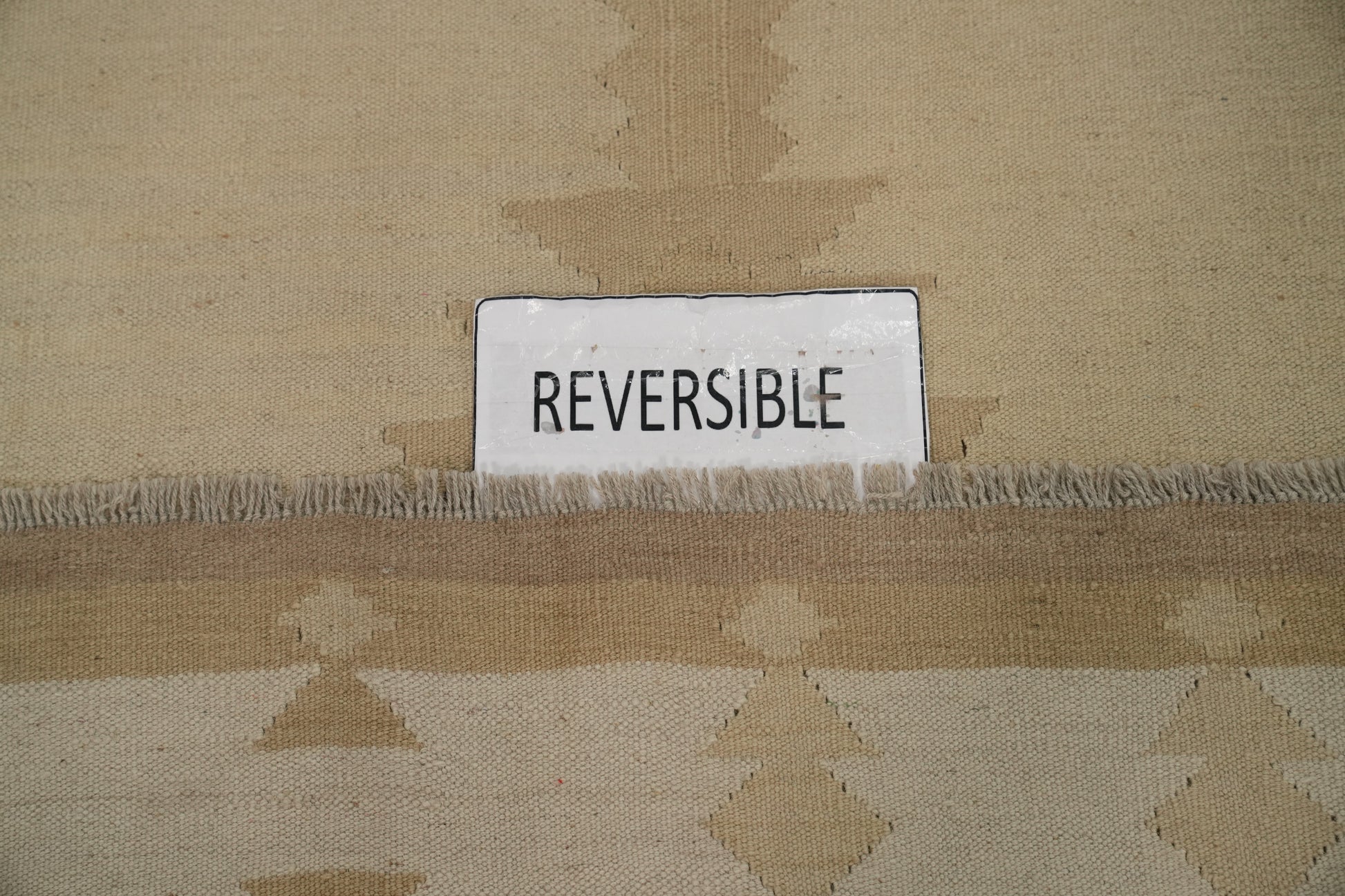 A Beautiful Genuine Pakistan Kilim rug is Hand Woven by skillful weavers in Pakistan with 100% Wool Material. This rug is in New, First Quality condition. dimensions are 11' 9'' X 9' 1'' in foot and 358 X 277 in centimeter. the primary color is Beige & Ivories.
