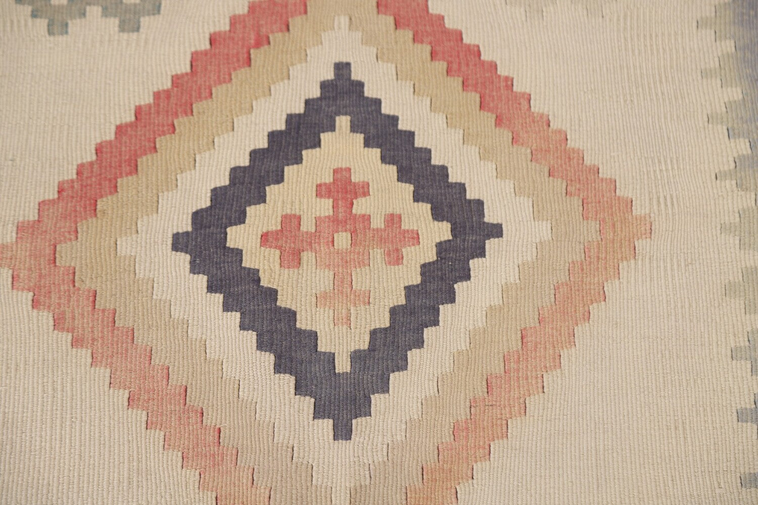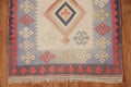 A Beautiful Genuine Persia ( Persia ) Kilim (Qashqai) rug is Hand Woven by skillful weavers in Persia ( Persia ) with 100% Wool Material. This rug is in Very Good condition. dimensions are 7' 8'' X 4' 6'' in foot and 234 X 137 in centimeter. the primary color is Beige & Ivories.