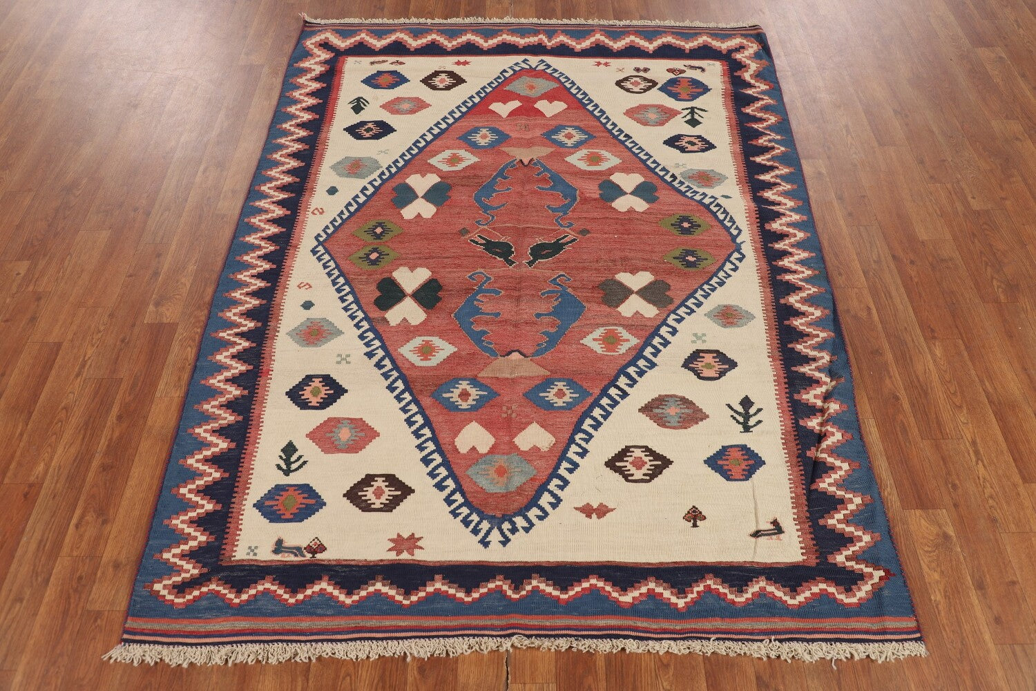 Tribal Wool Kilim Qashqai Persian Vegetable Dye Rug 5x6