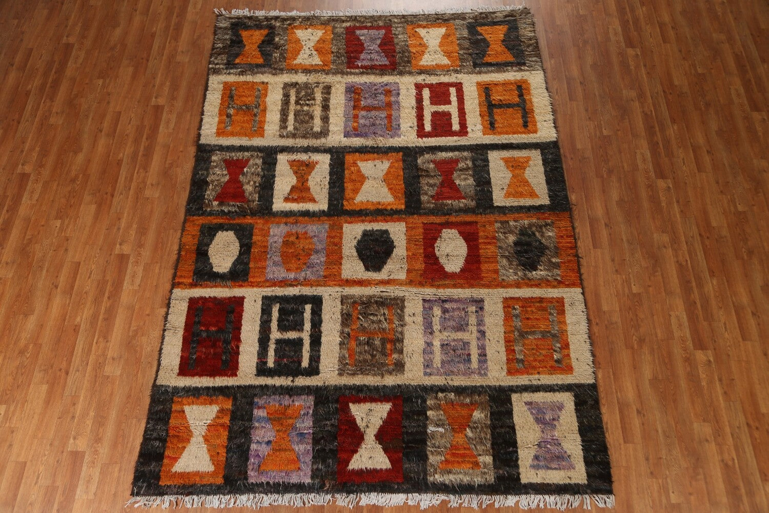 A Beautiful Genuine Pakistan Moroccan rug is Hand Knotted by skillful weavers in Pakistan with 100% Wool Material. This rug is in New, First Quality condition. dimensions are 9' 7'' X 6' 9'' in foot and 292 X 206 in centimeter. the primary color is Multi-Colored.