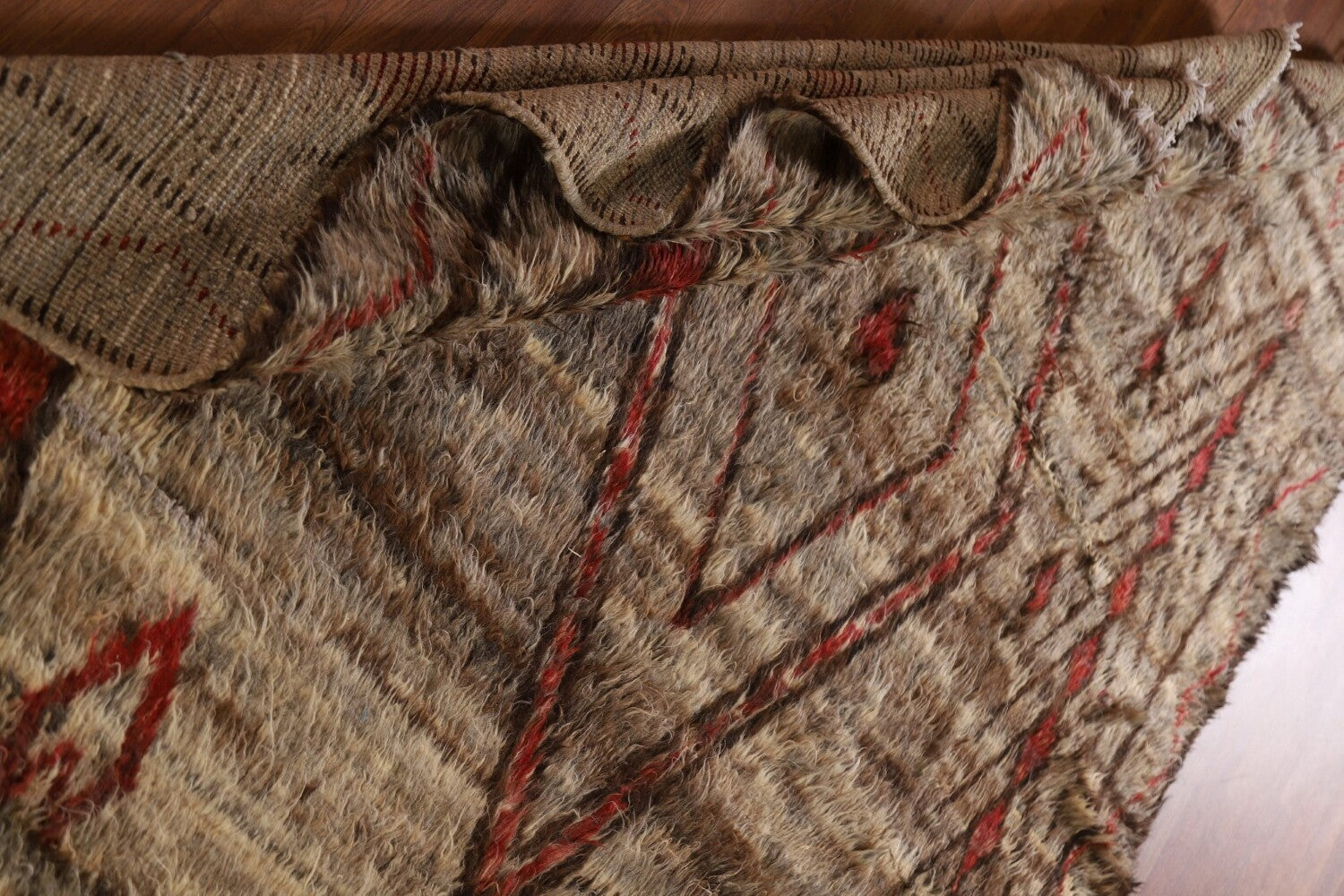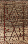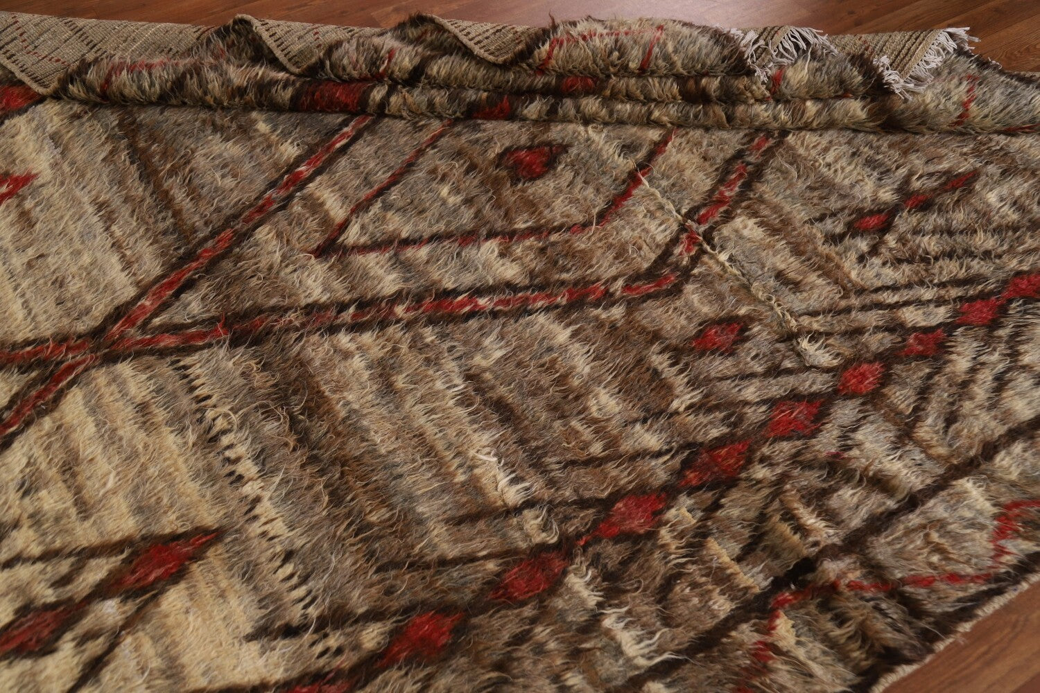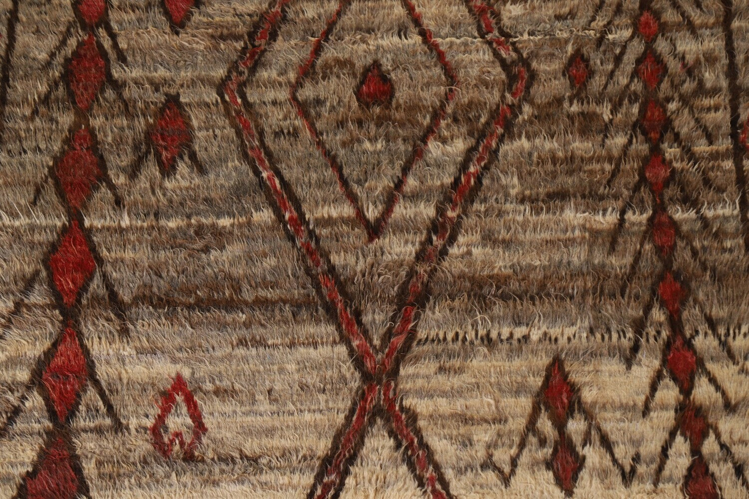 A Beautiful Genuine Pakistan Moroccan rug is Hand Knotted by skillful weavers in Pakistan with 100% Wool Material. This rug is in condition. dimensions are 9' 9'' X 6' 9'' in foot and 297 X 206 in centimeter. the primary color is Brown.