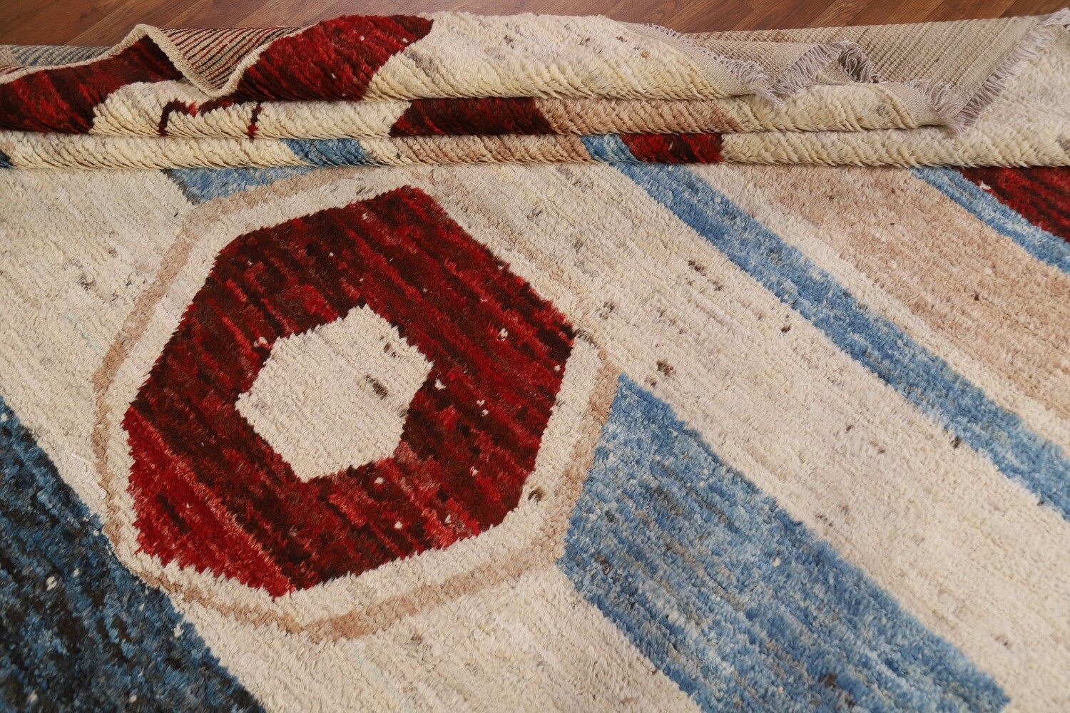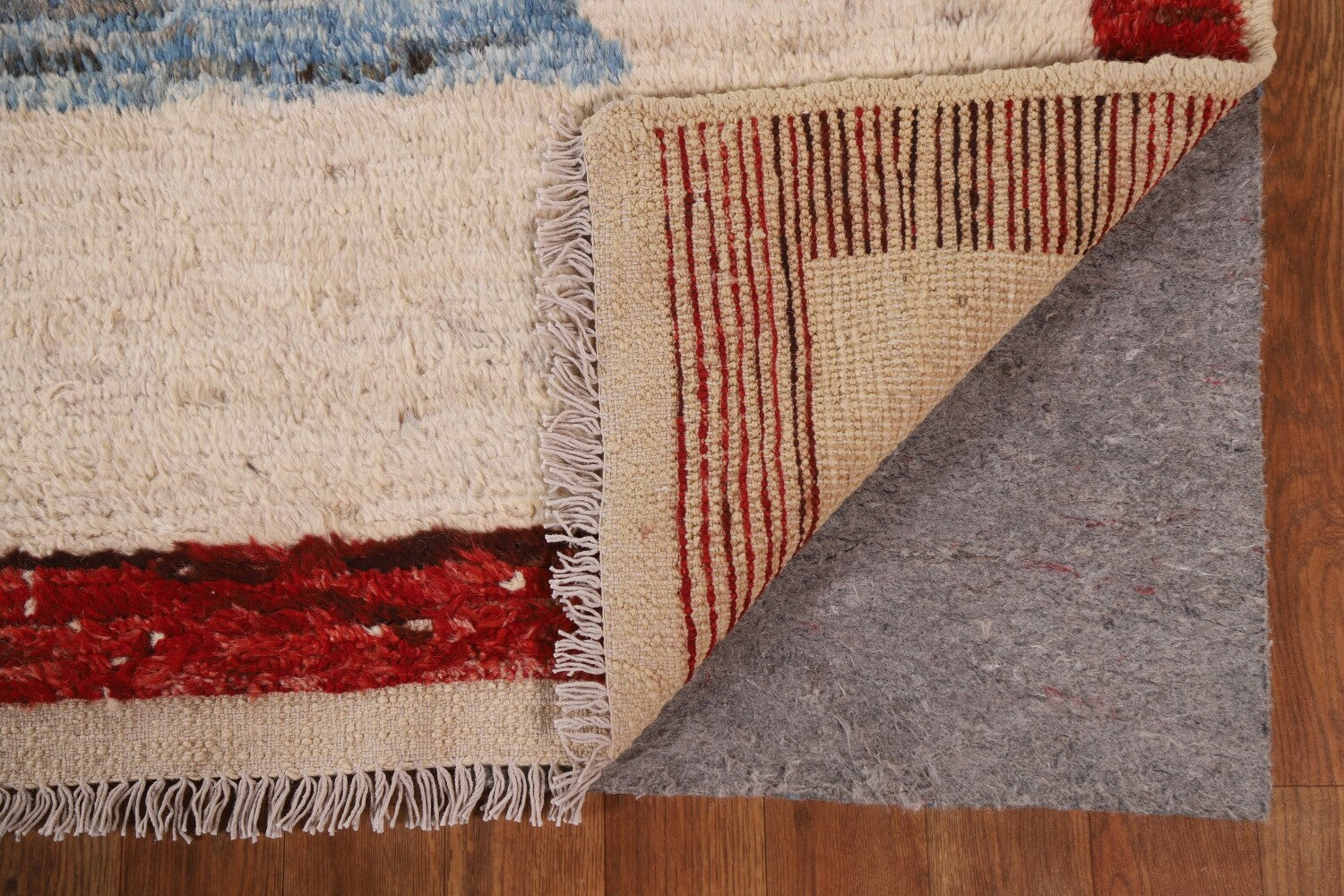 A Beautiful Genuine Pakistan Moroccan rug is Hand Knotted by skillful weavers in Pakistan with 100% Wool Material. This rug is in condition. dimensions are 10' 1'' X 8' 1'' in foot and 307 X 246 in centimeter. the primary color is Beige & Ivories.