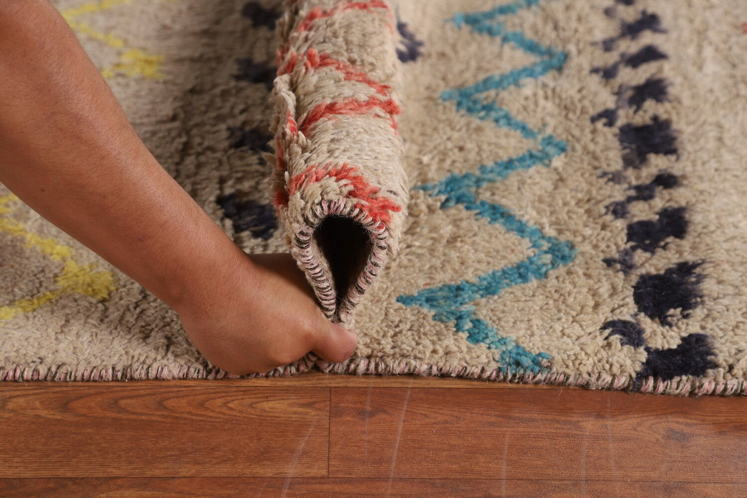 A Beautiful Genuine Pakistan Moroccan rug is Hand Knotted by skillful weavers in Pakistan with 100% Wool Material. This rug is in condition. dimensions are 12' 4'' X 9' 0'' in foot and 376 X 274 in centimeter. the primary color is Beige & Ivories.