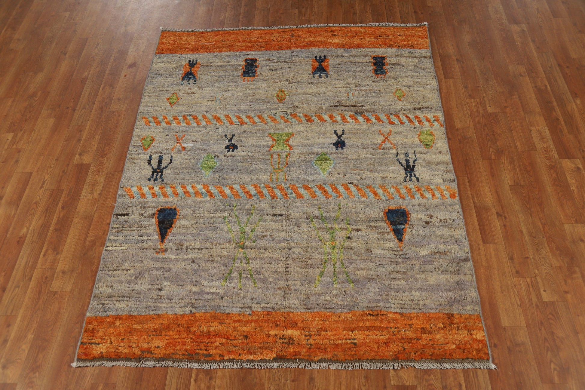 A Beautiful Genuine Pakistan Moroccan rug is Hand Knotted by skillful weavers in Pakistan with 100% Wool Material. This rug is in New, First Quality condition. dimensions are 6' 5'' X 4' 10'' in foot and 196 X 147 in centimeter. the primary color is Greys & Charcoal.