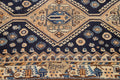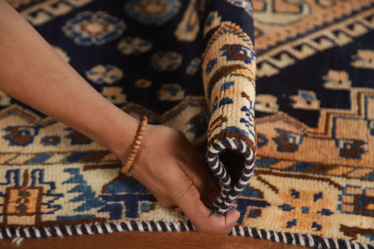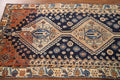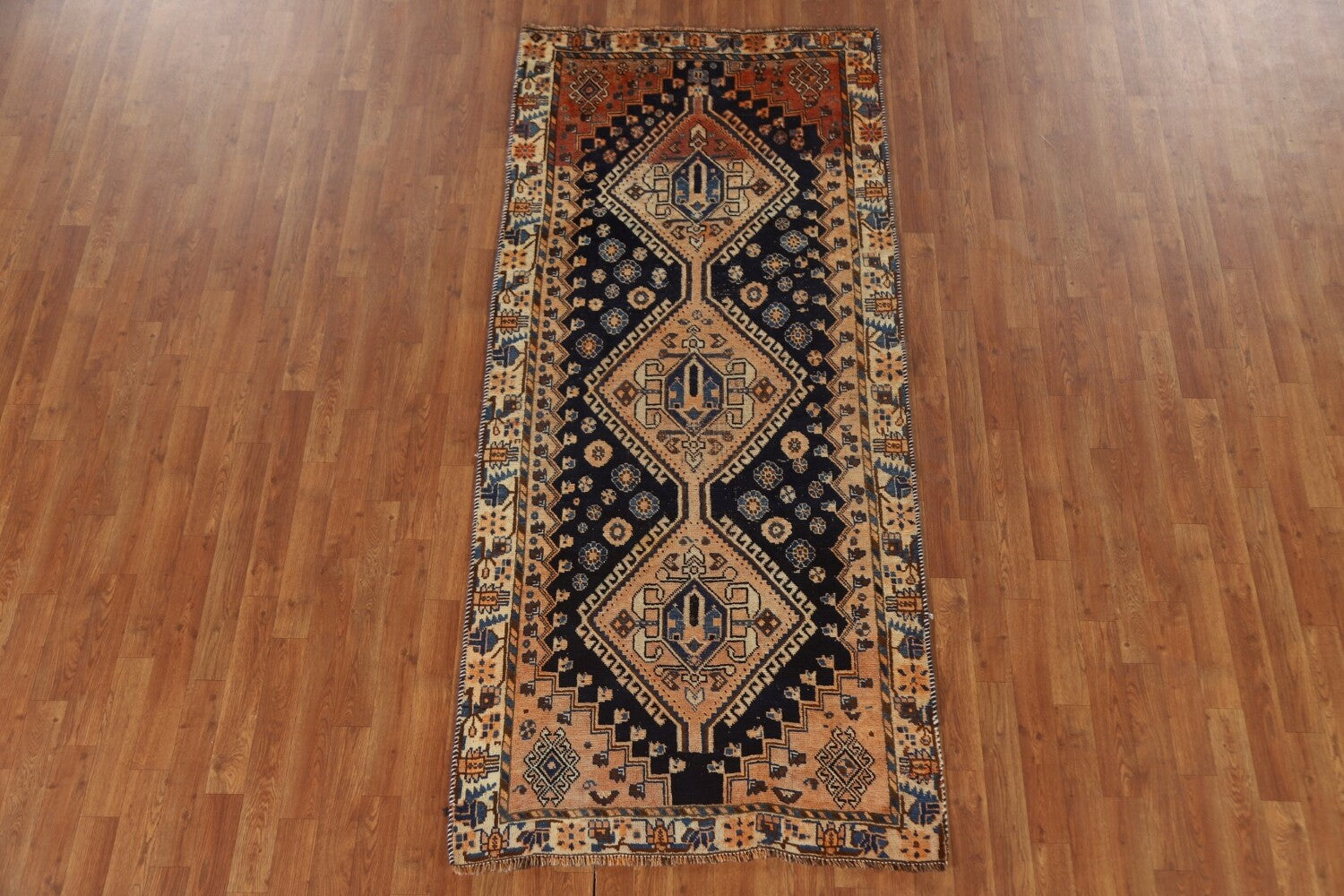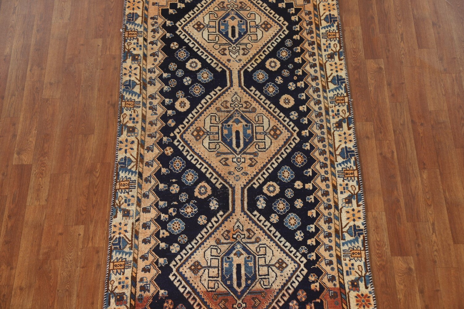 A Beautiful Genuine Persia ( Persia ) Qashqai rug is Hand Knotted by skillful weavers in Persia ( Persia ) with 100% Wool Material. This rug is in Very Good (Evenly Low Pile-Repair-Abrash) condition. dimensions are 7' 9'' X 3' 6'' in foot and 236 X 107 in centimeter. the primary color is Navy Blue & Blues.