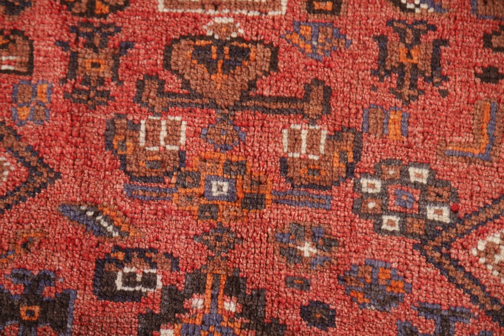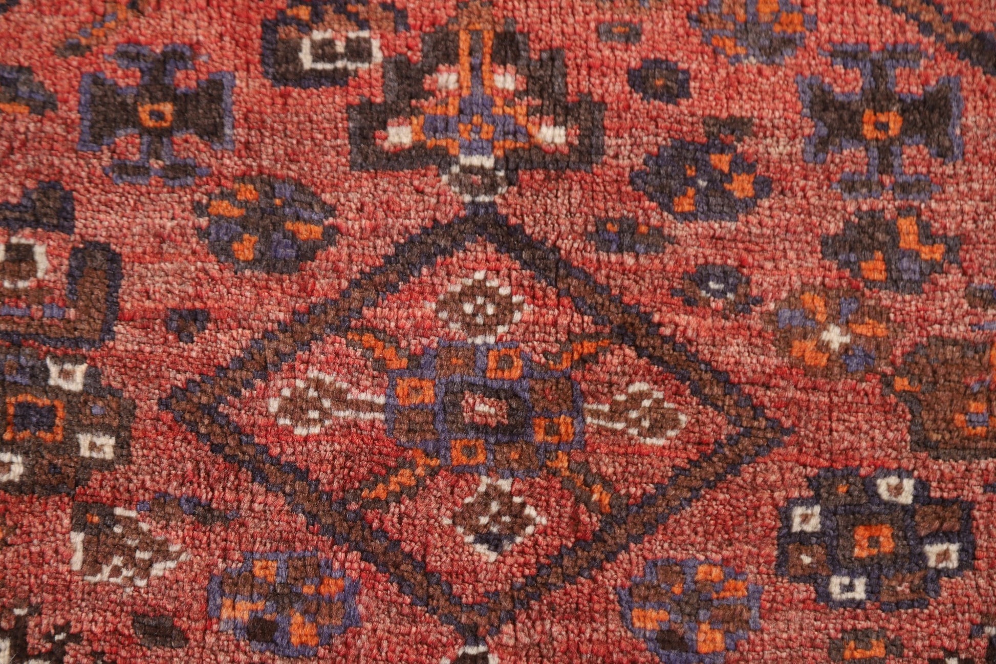 A Beautiful Genuine Persia ( Persia ) Shiraz rug is Hand Knotted by skillful weavers in Persia ( Persia ) with 100% Wool Material. This rug is in Very Good(Evenly Low Pile) condition. dimensions are 7' 11'' X 4' 11'' in foot and 241 X 150 in centimeter. the primary color is Pink.