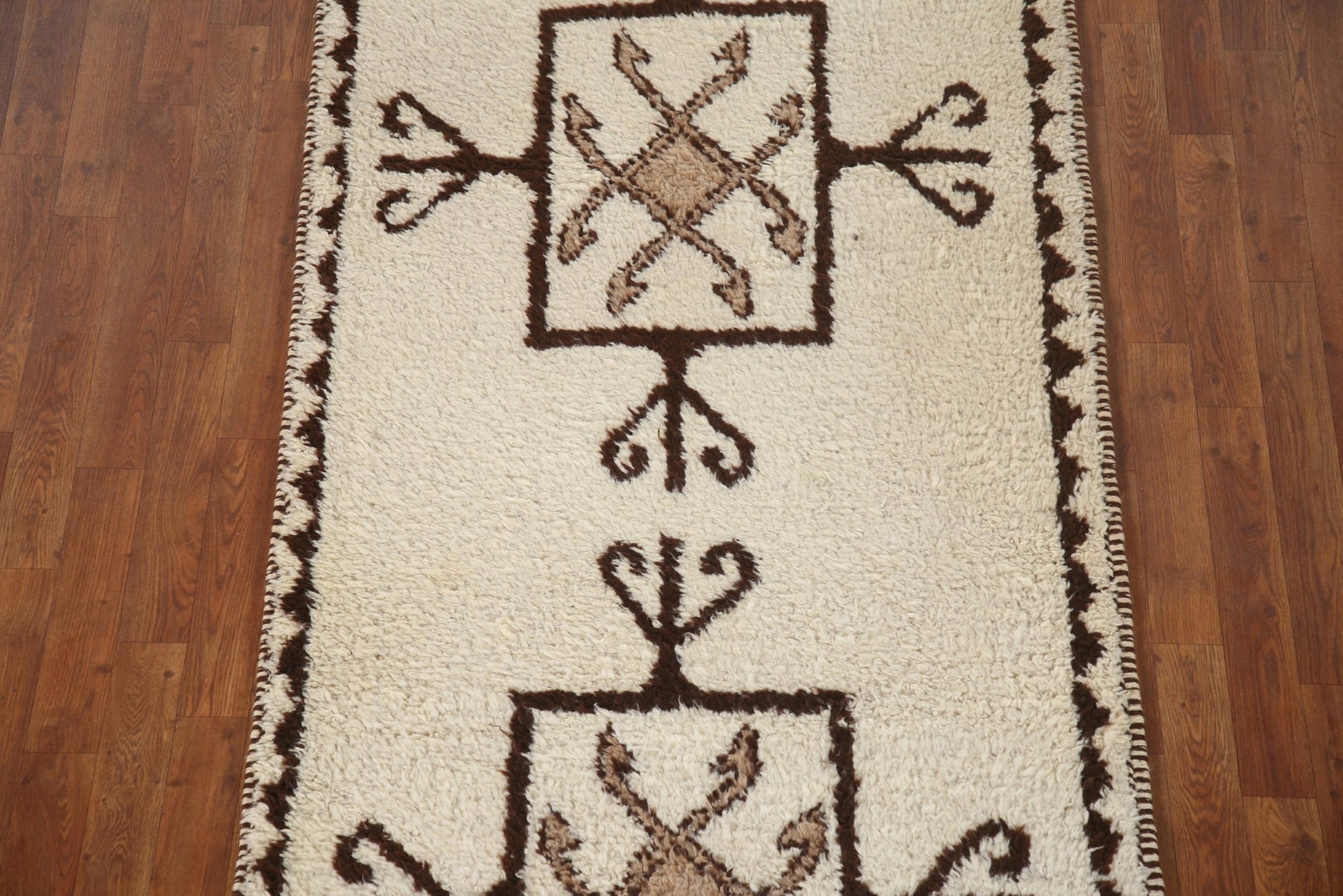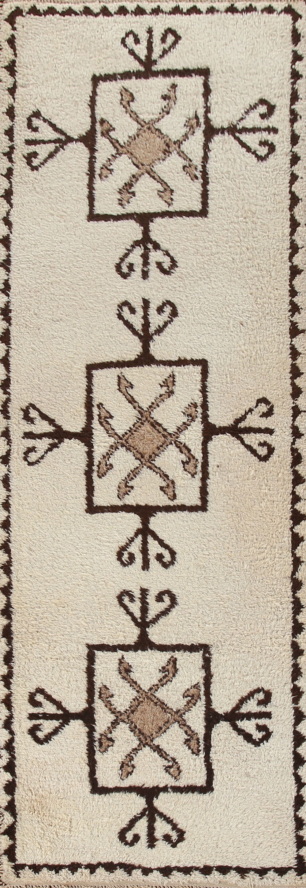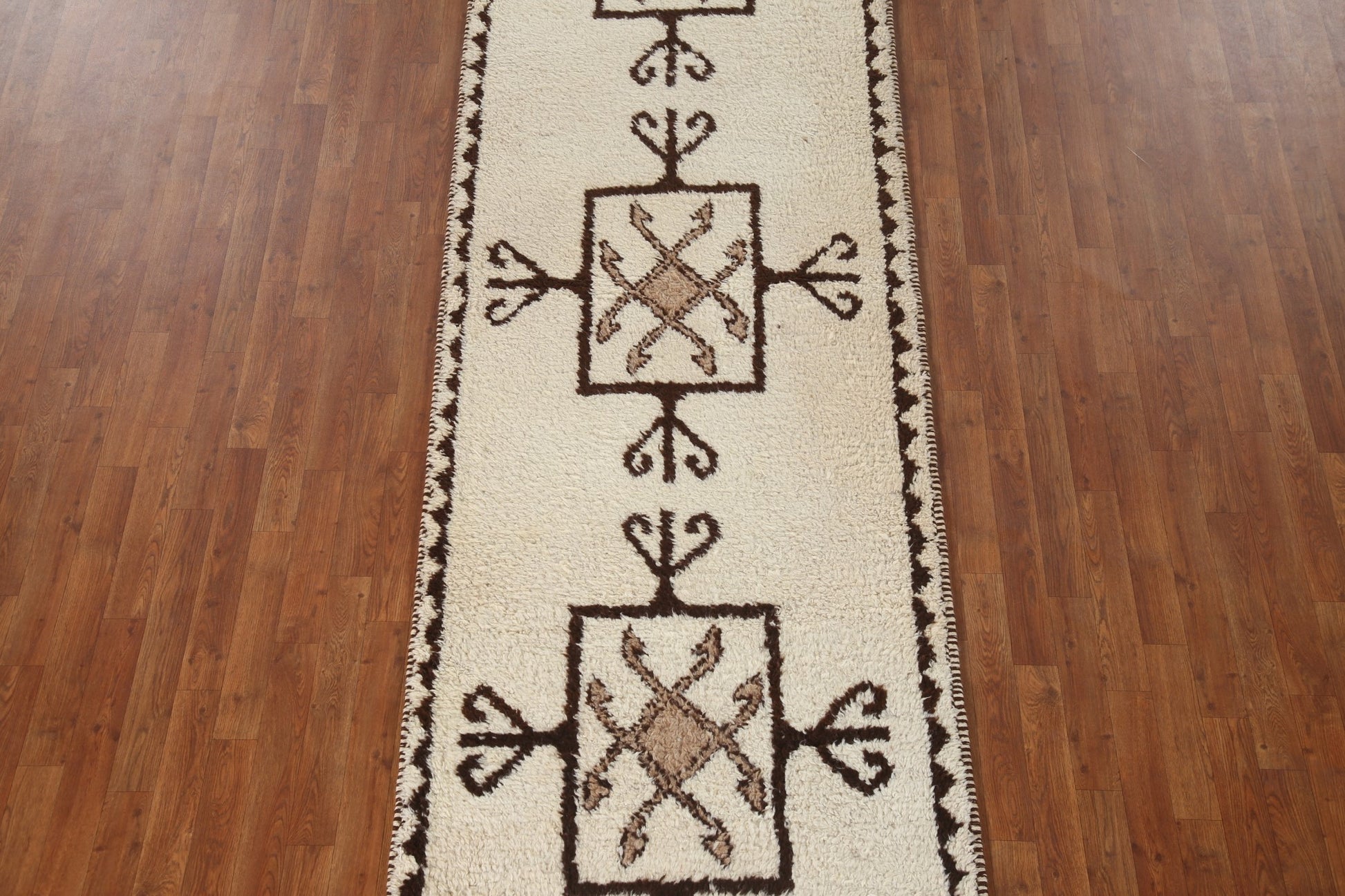 A Beautiful Genuine Turkey Anatolian rug is Hand Knotted by skillful weavers in Turkey with 100% Wool Material. This rug is in New, First Quality condition. dimensions are 11' 6'' X 3' 6'' in foot and 351 X 107 in centimeter. the primary color is Beige & Ivories.