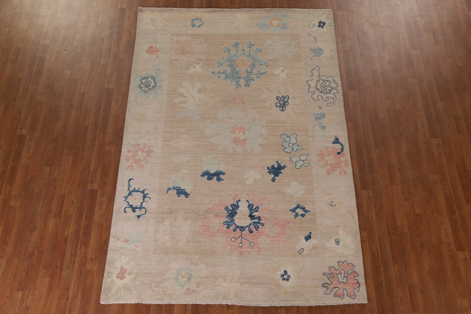 Turkish Floral Oushak Vegetable Dye Area Rug 6x10
