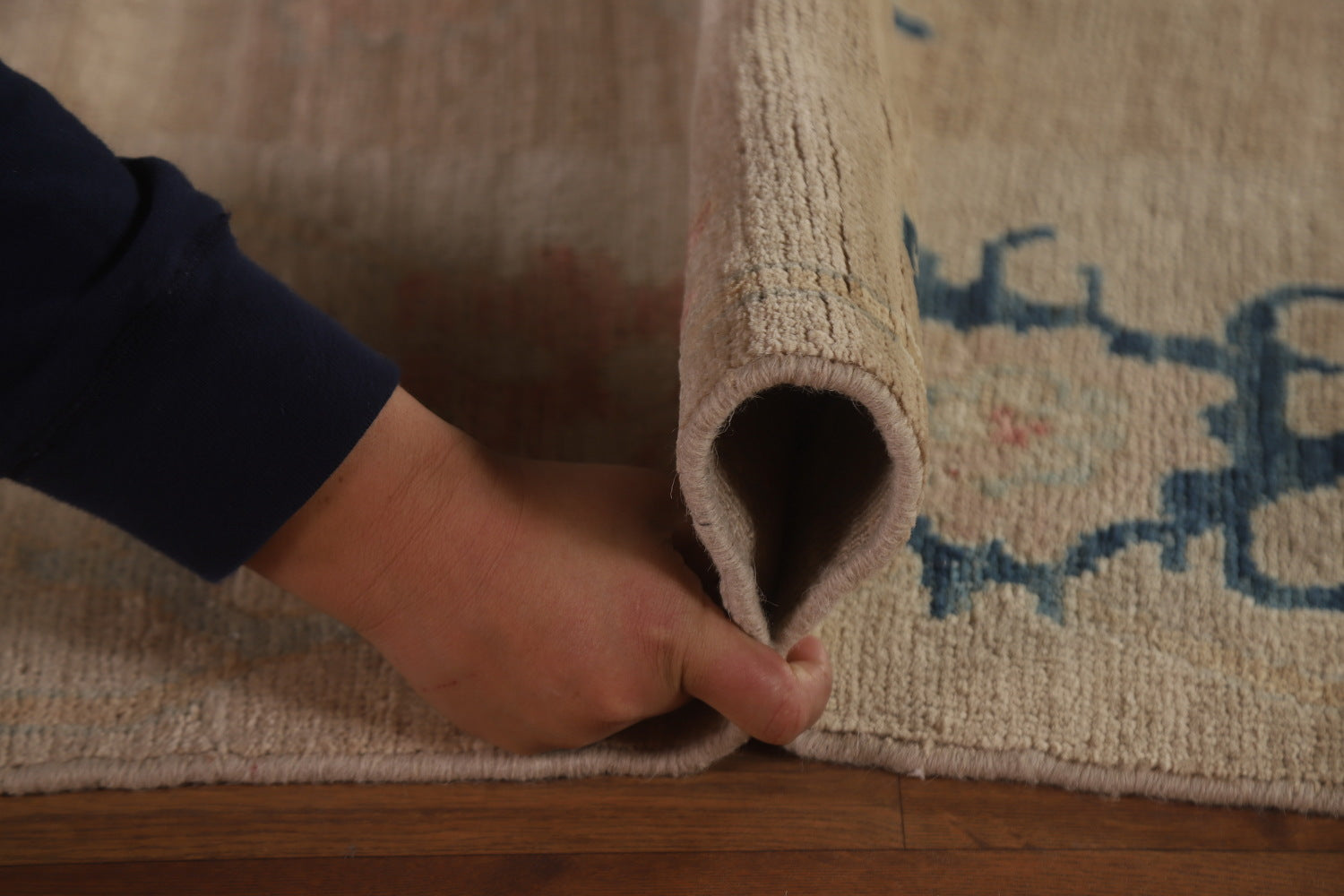 A Beautiful Genuine Turkey Oushak rug is Hand Knotted by skillful weavers in Turkey with 100% Wool Material. This rug is in New, First Quality condition. dimensions are 9' 6'' X 6' 4'' in foot and 290 X 193 in centimeter. the primary color is Beige & Ivories.