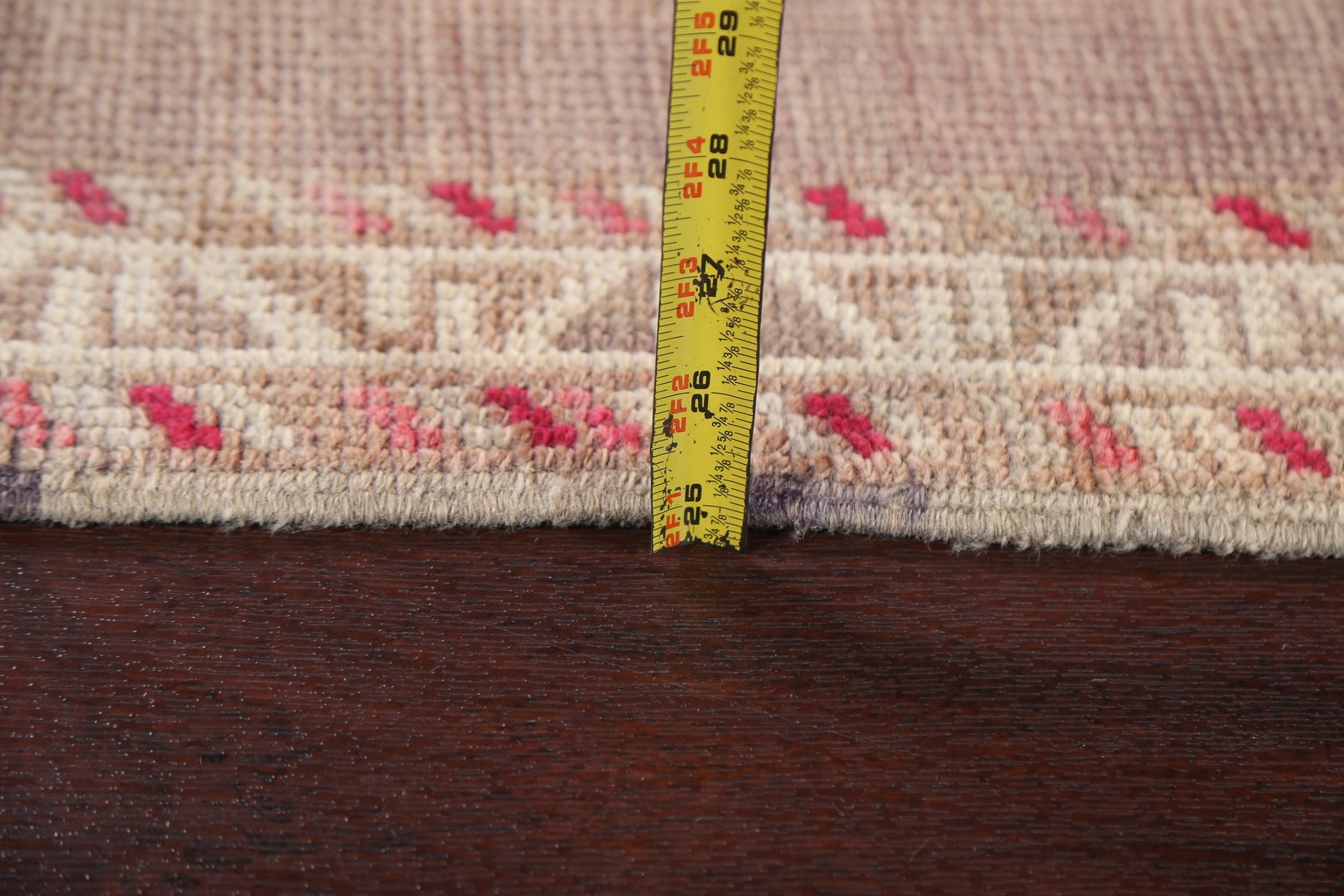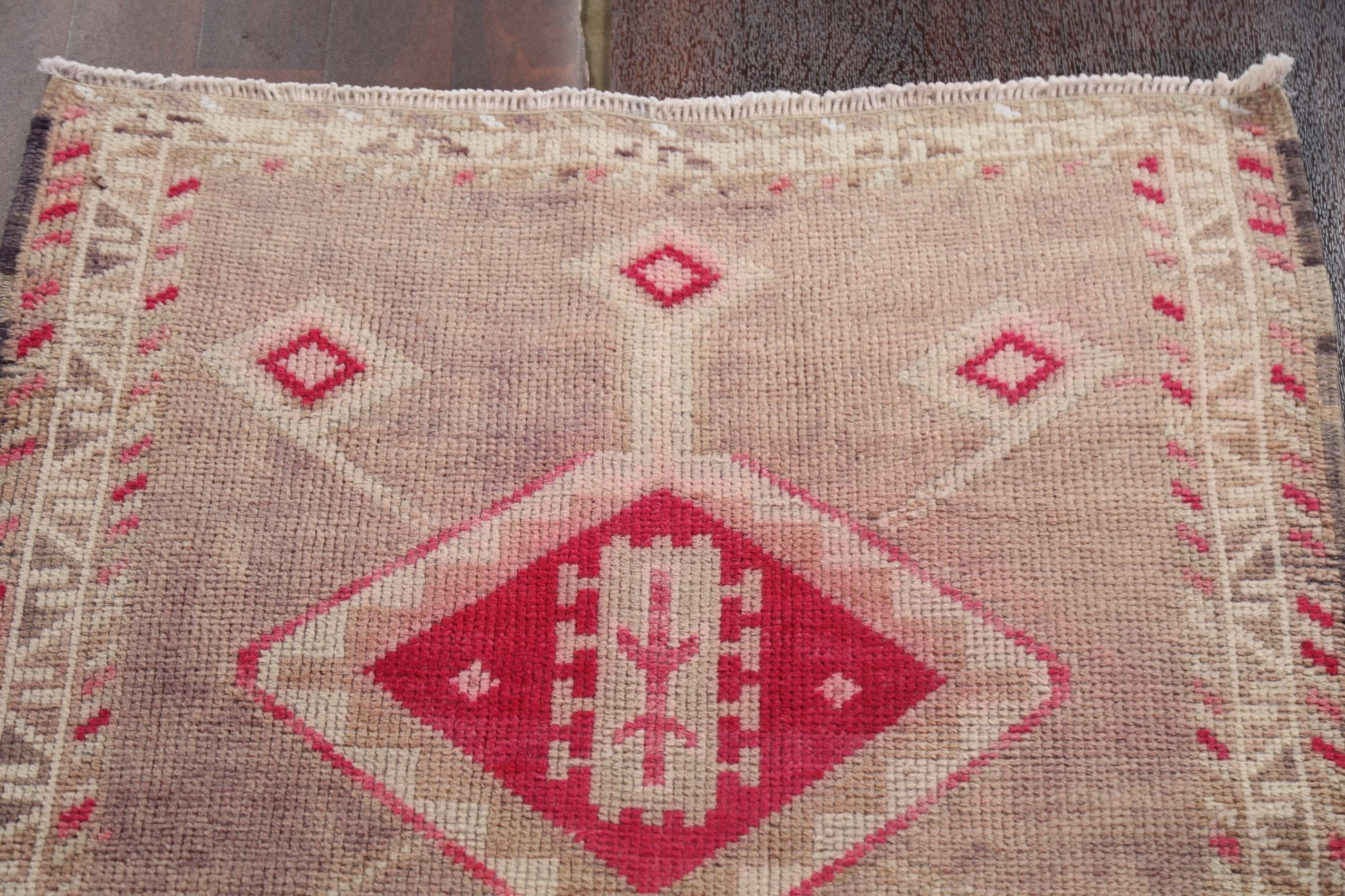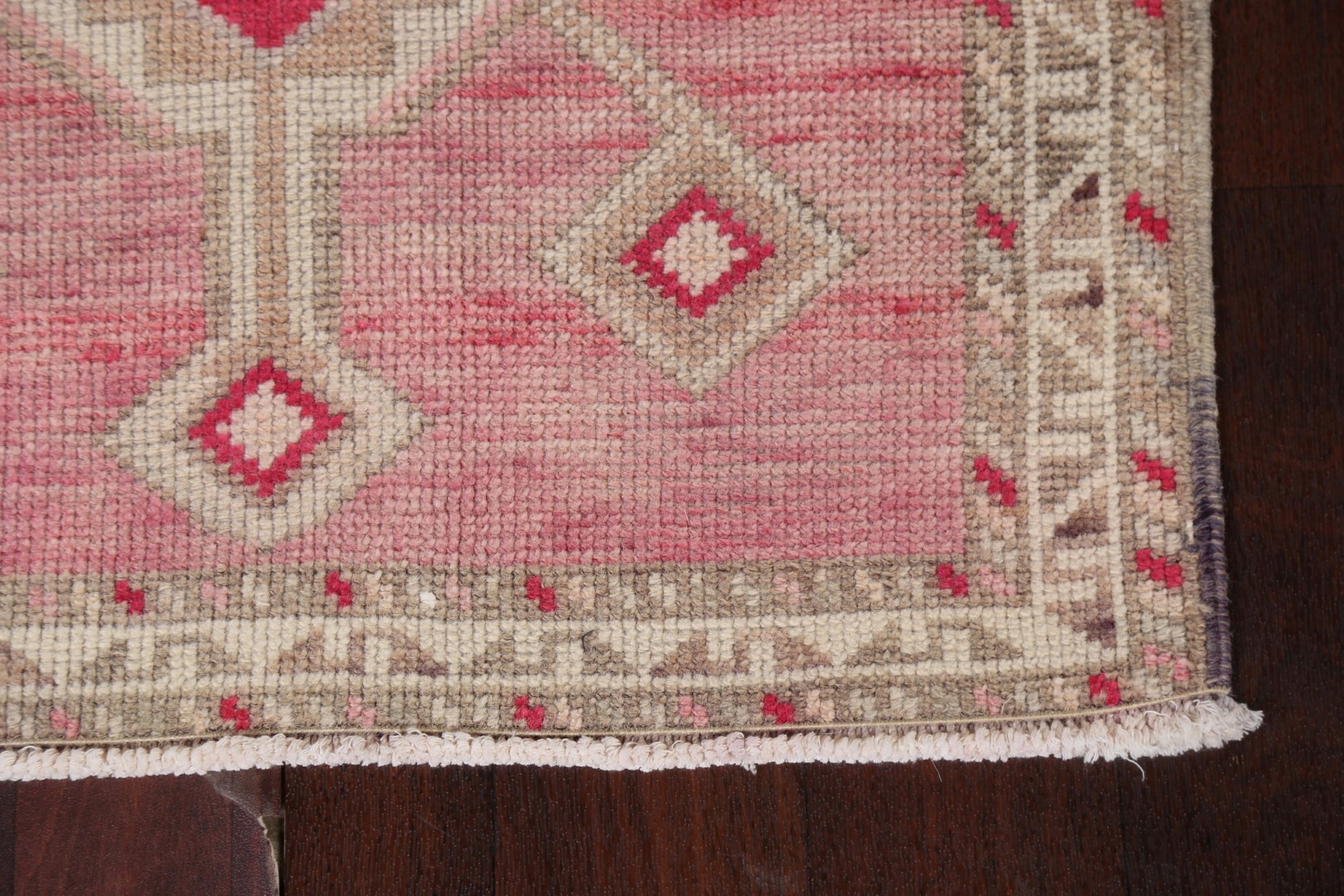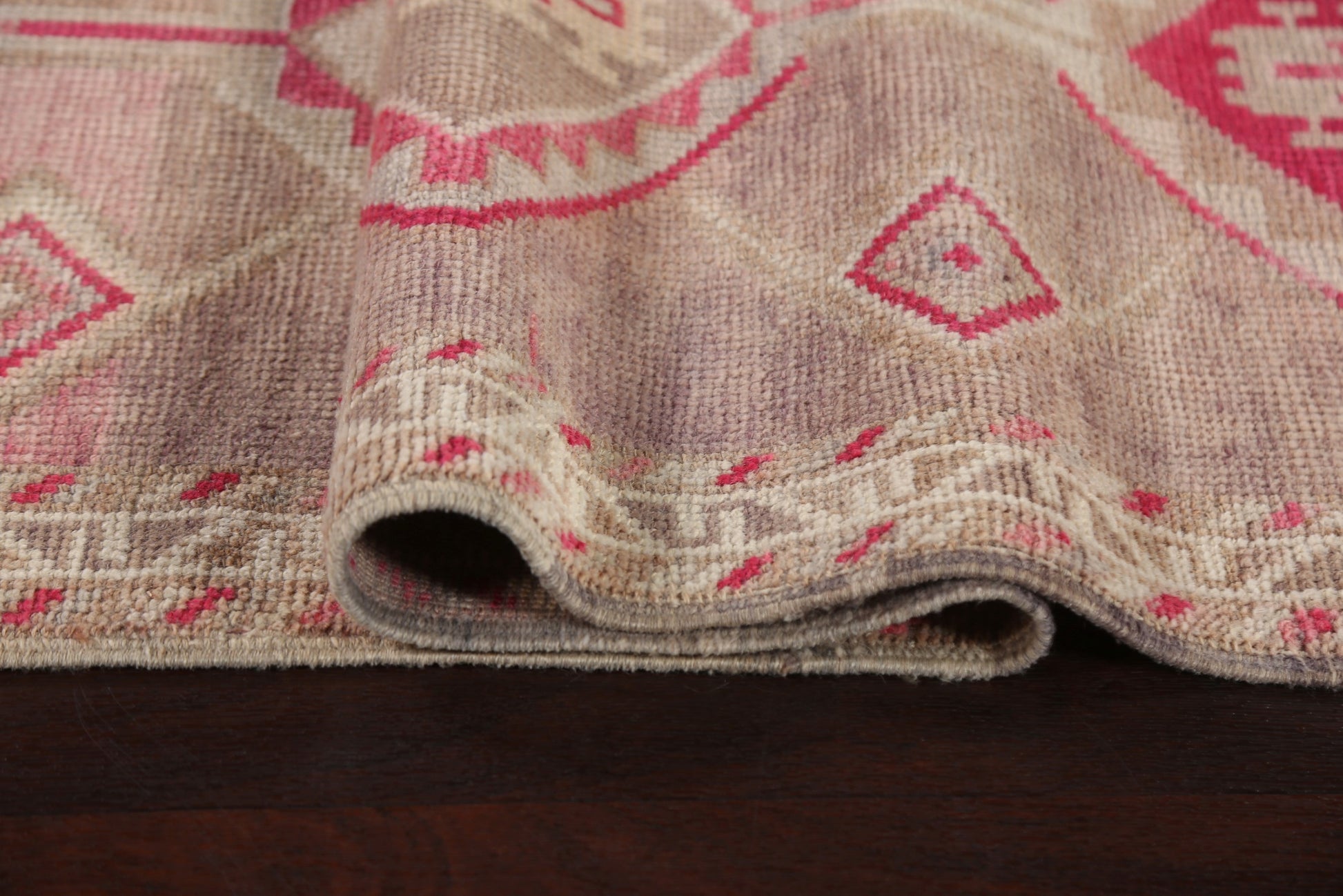 A Beautiful Genuine Turkey Oushak rug is Hand Knotted by skillful weavers in Turkey with 100% Wool Material. This rug is in Very Good (Abrash) condition. dimensions are 10' 3'' X 2' 8'' in foot and 312 X 81 in centimeter. the primary color is Pink.
