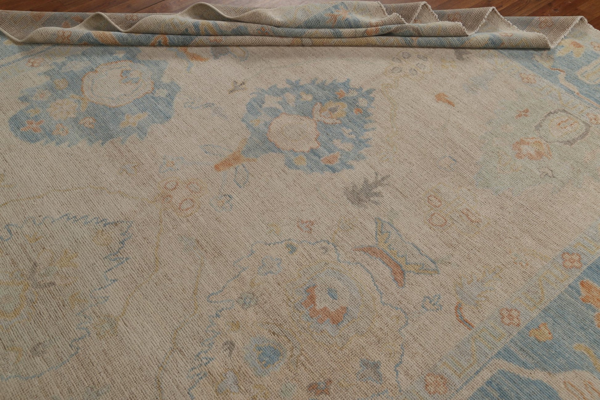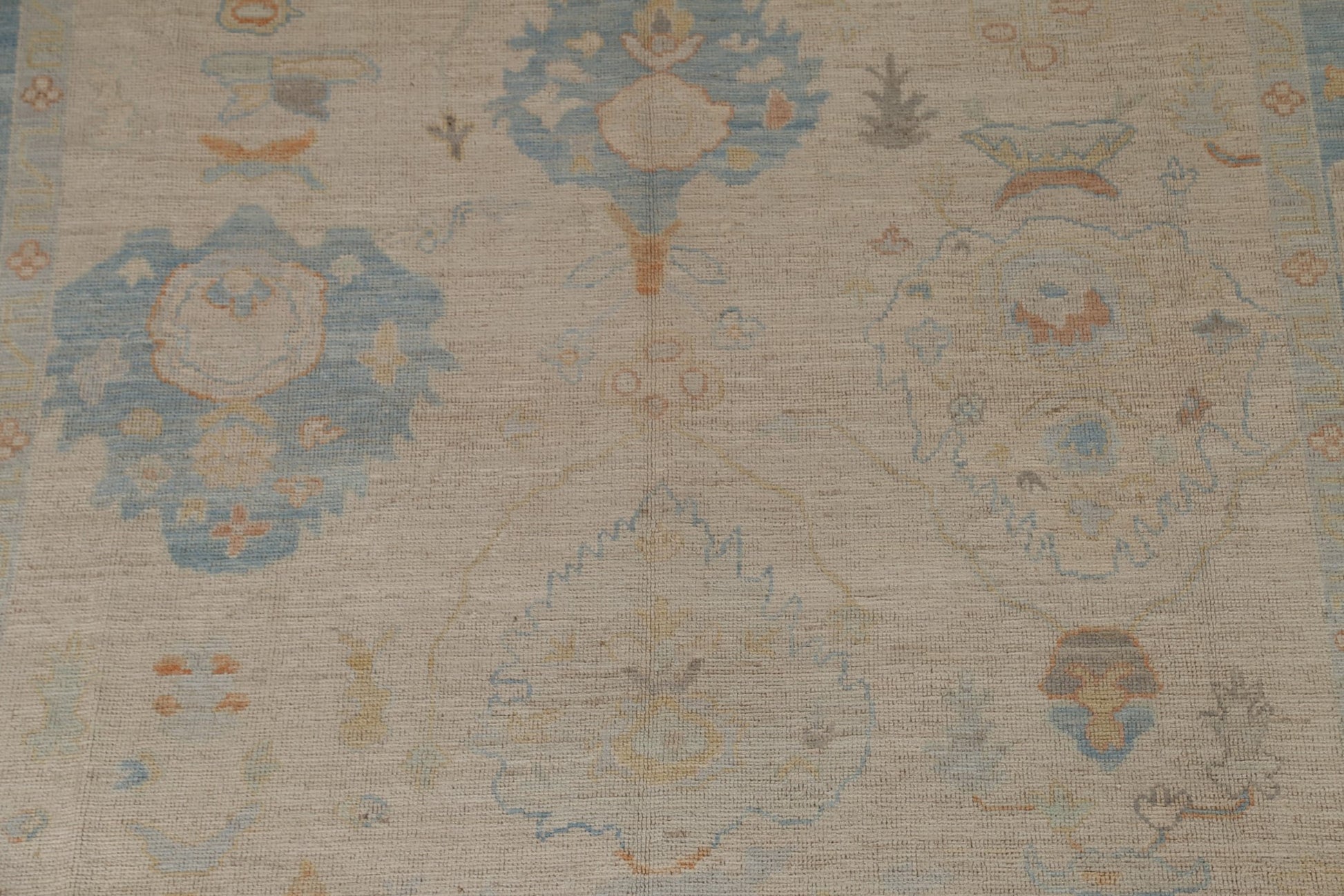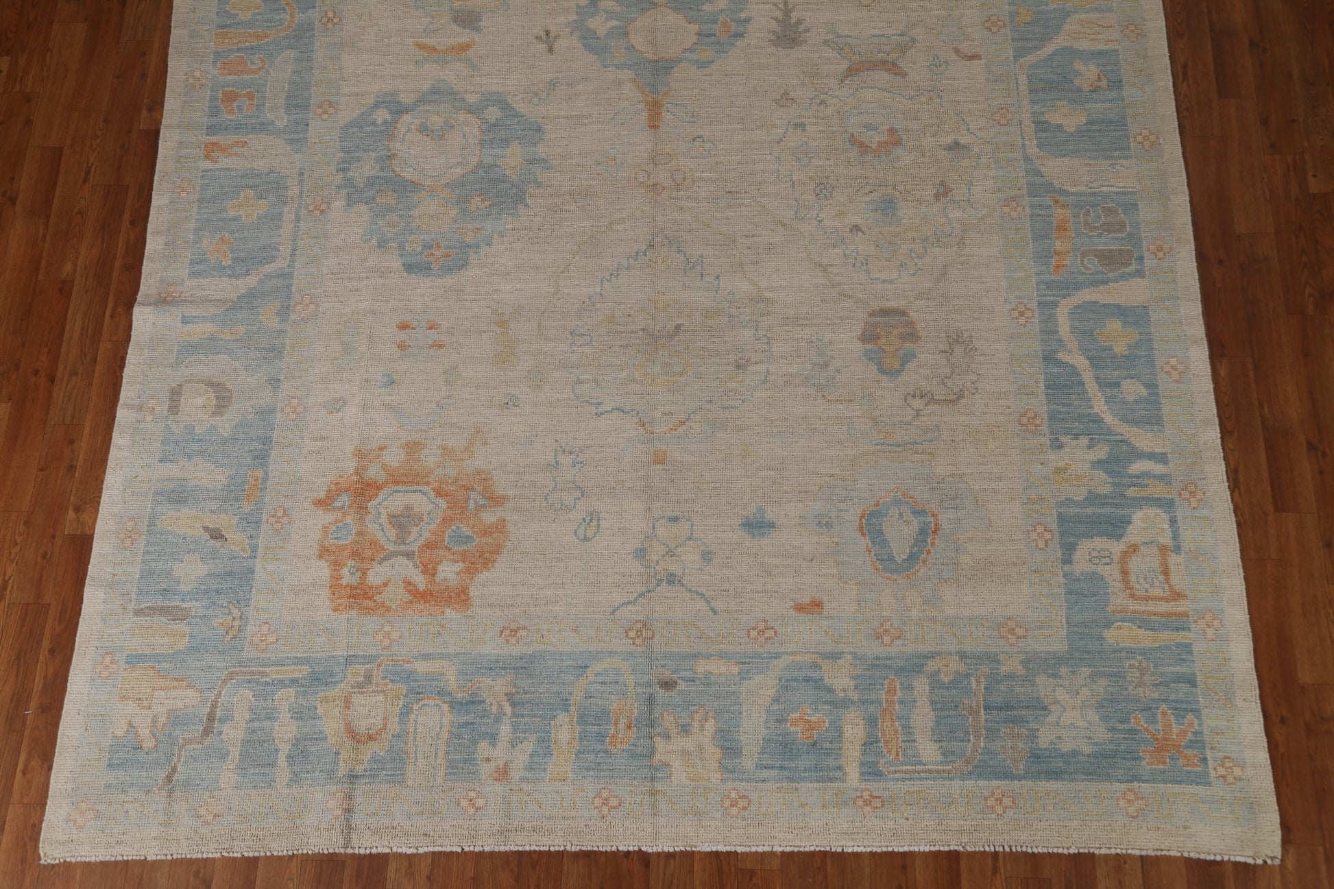A Beautiful Genuine Turkey Oushak rug is Hand Knotted by skillful weavers in Turkey with 100% Wool Material. This rug is in New, First Quality condition. dimensions are 9' 11'' X 7' 8'' in foot and 302 X 234 in centimeter. the primary color is Beige & Ivories.