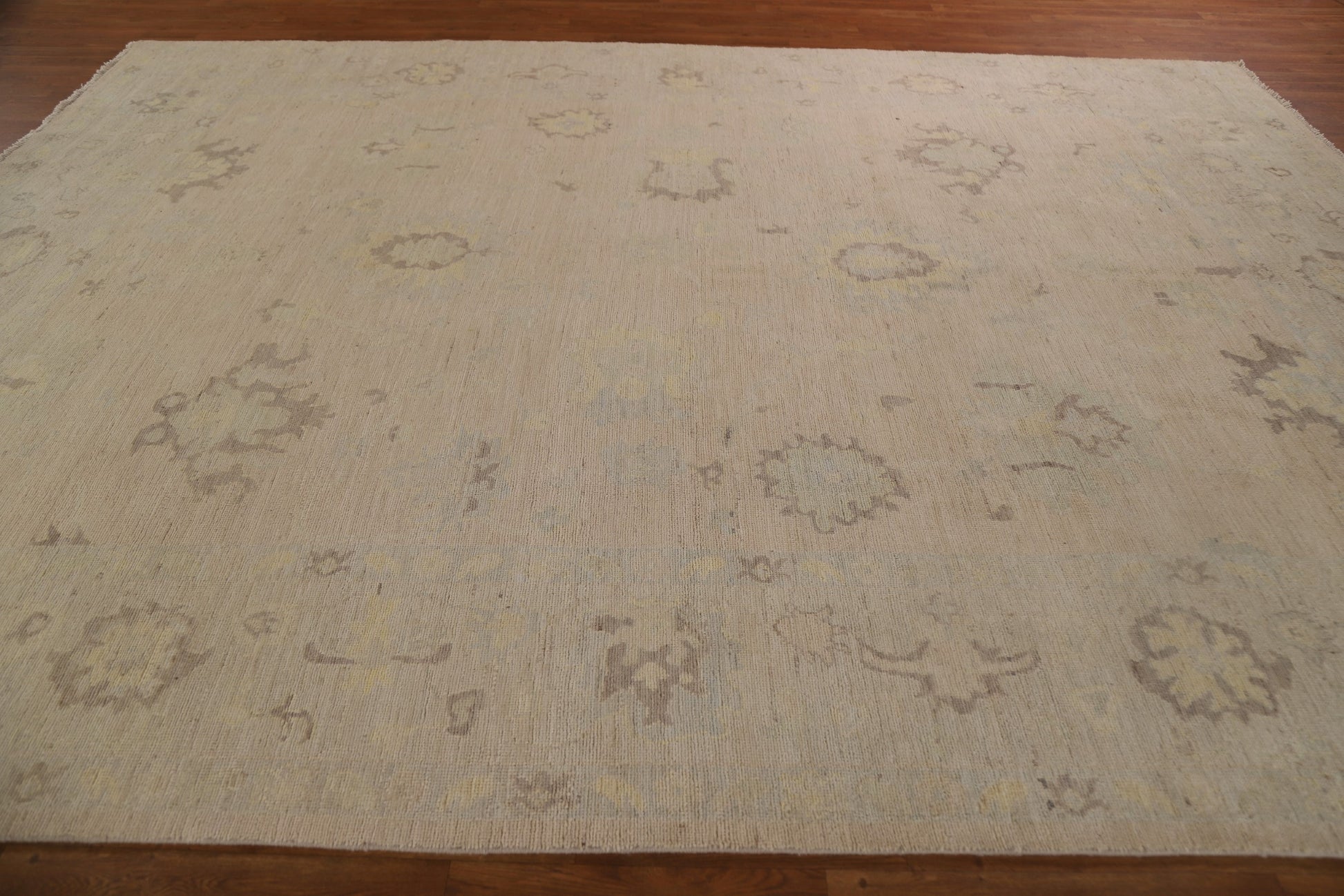 A Beautiful Genuine Turkey Oushak rug is Hand Knotted by skillful weavers in Turkey with 100% Wool Material. This rug is in New, First Quality condition. dimensions are 12' 0'' X 9' 0'' in foot and 366 X 274 in centimeter. the primary color is Beige & Ivories.
