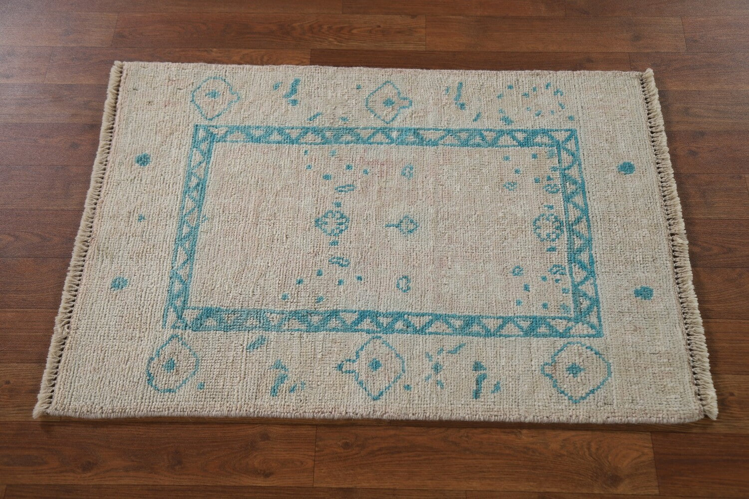 A Beautiful Genuine Turkey Oushak rug is Hand Knotted by skillful weavers in Turkey with 100% Wool Material. This rug is in New, First Quality condition. dimensions are 2' 10'' X 2' 0'' in foot and 86 X 61 in centimeter. the primary color is Beige & Ivories.