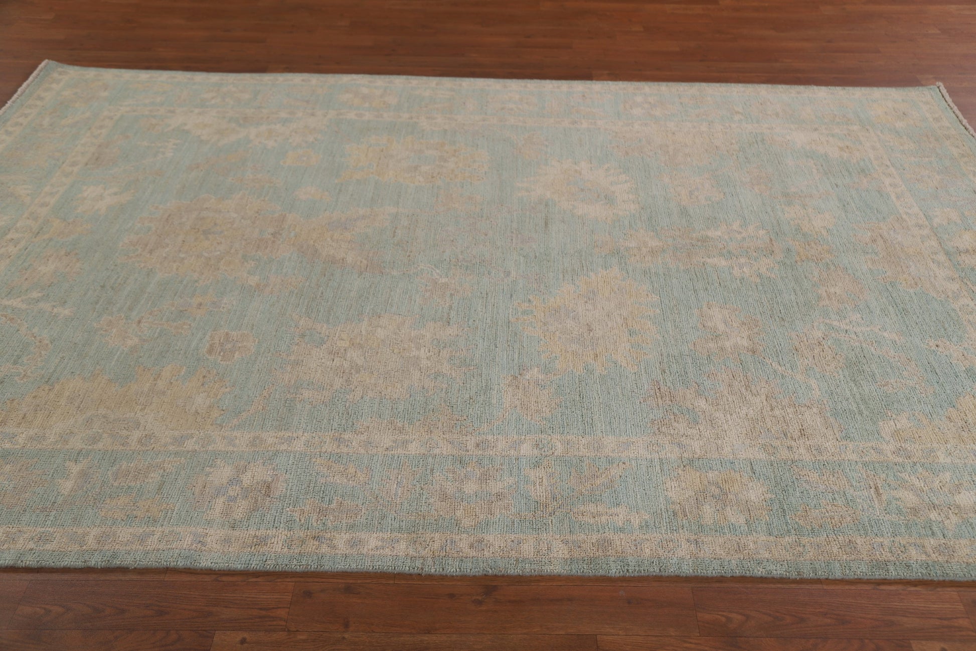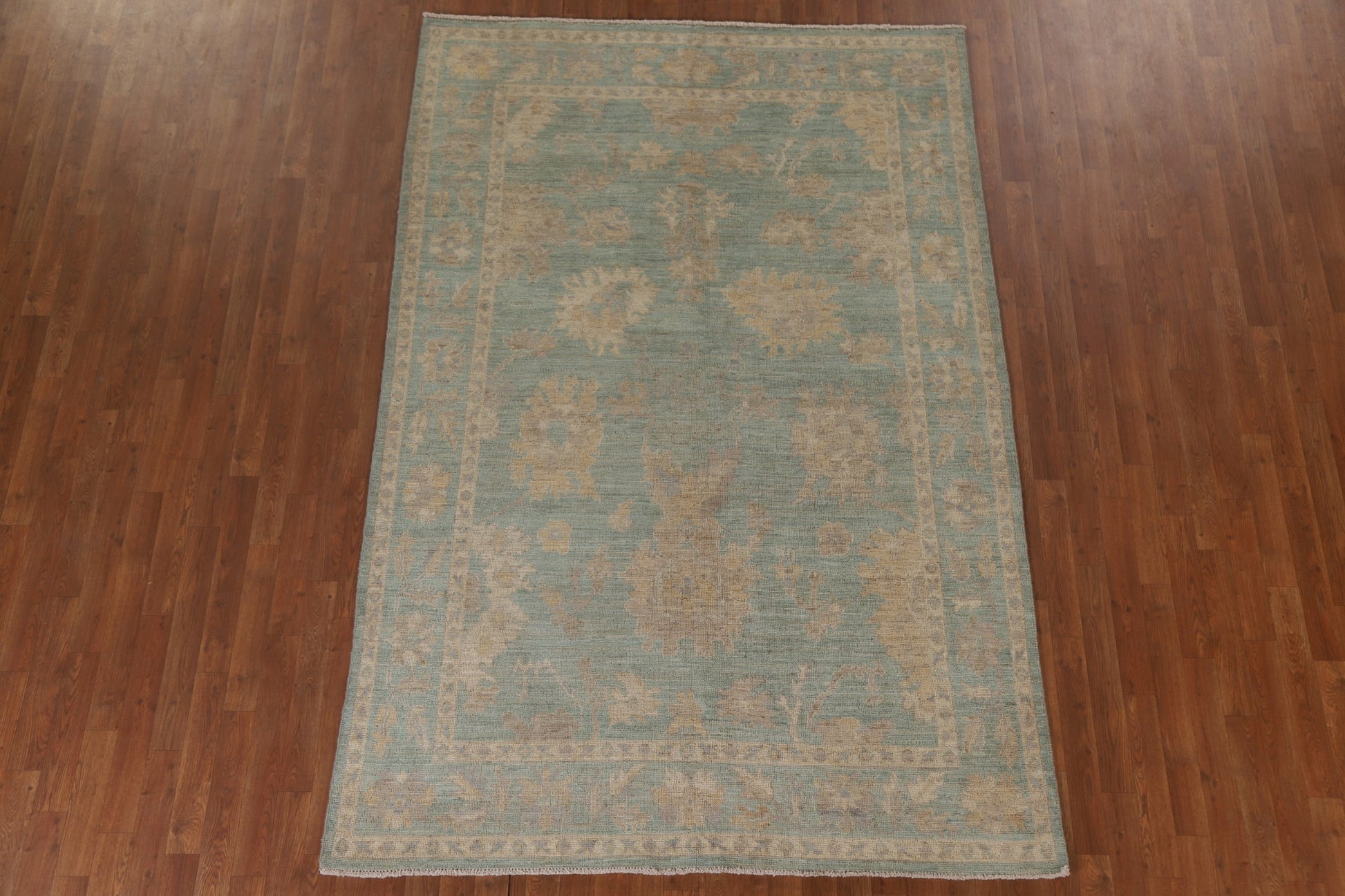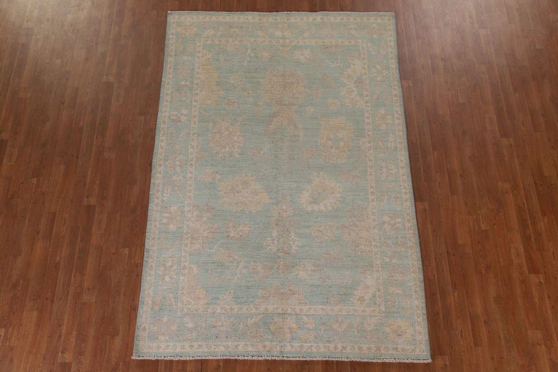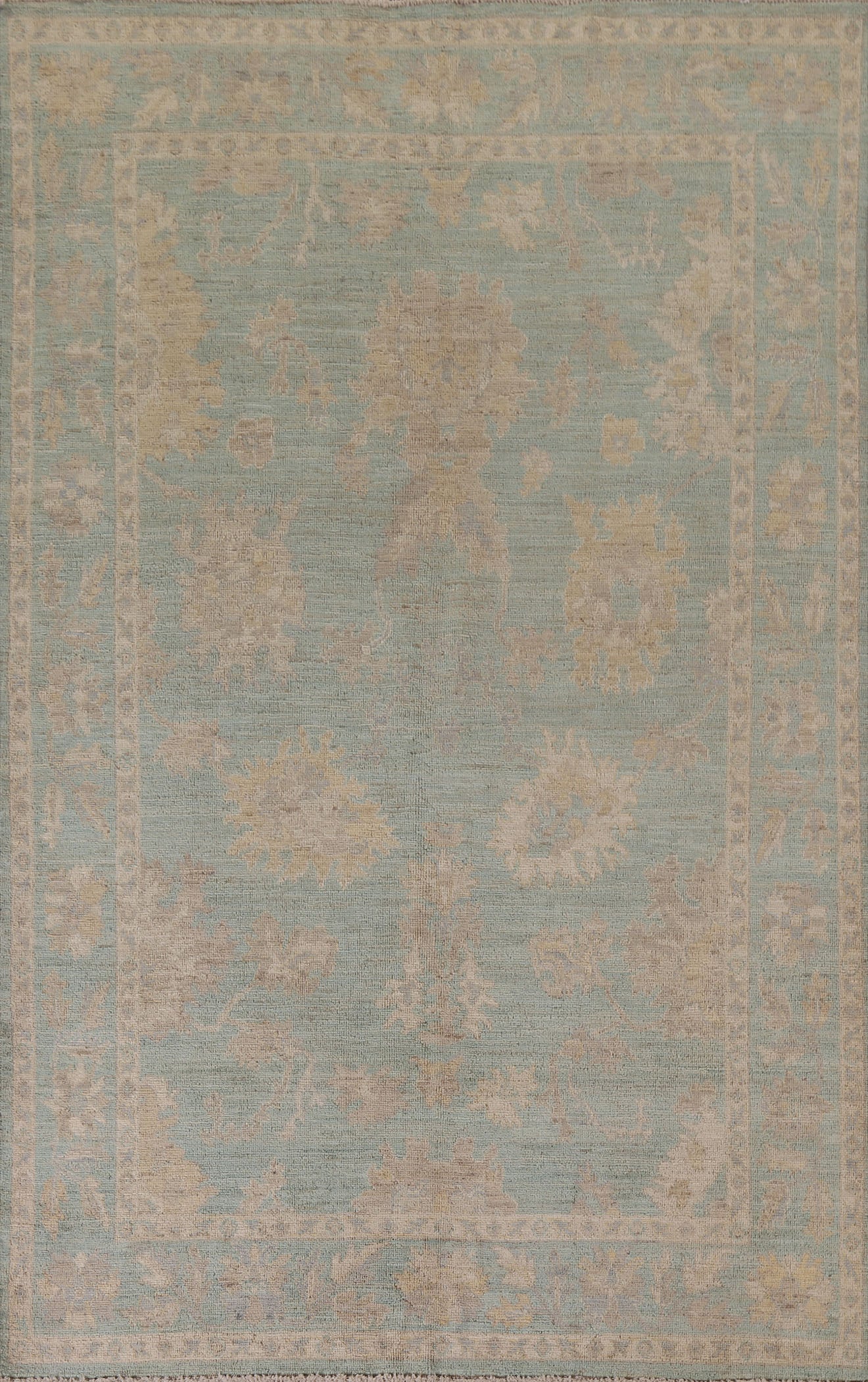 Turquoise Oushak Vegetable Dye Area Rug 6x9