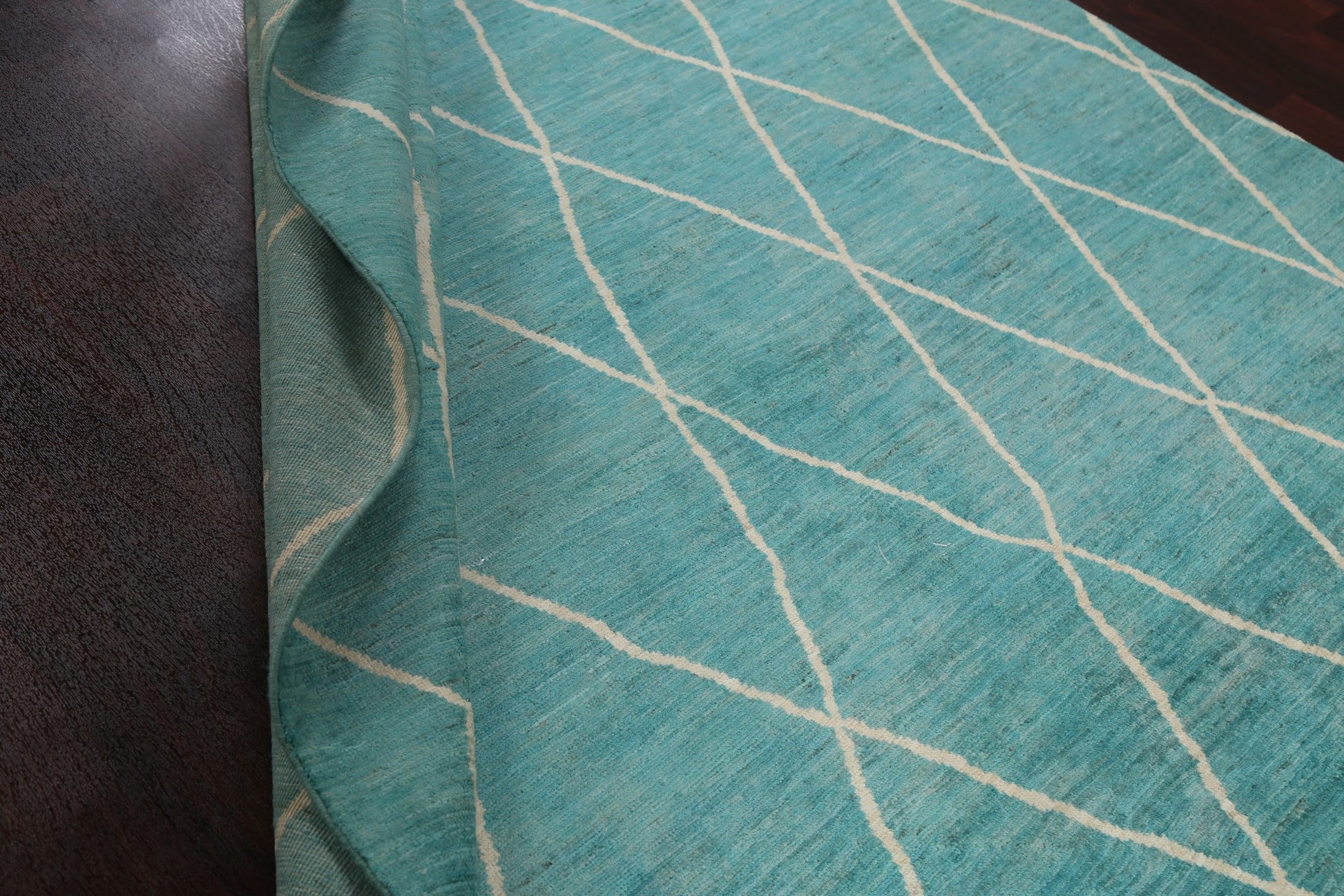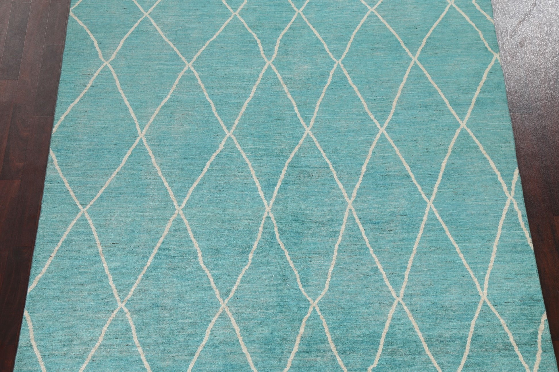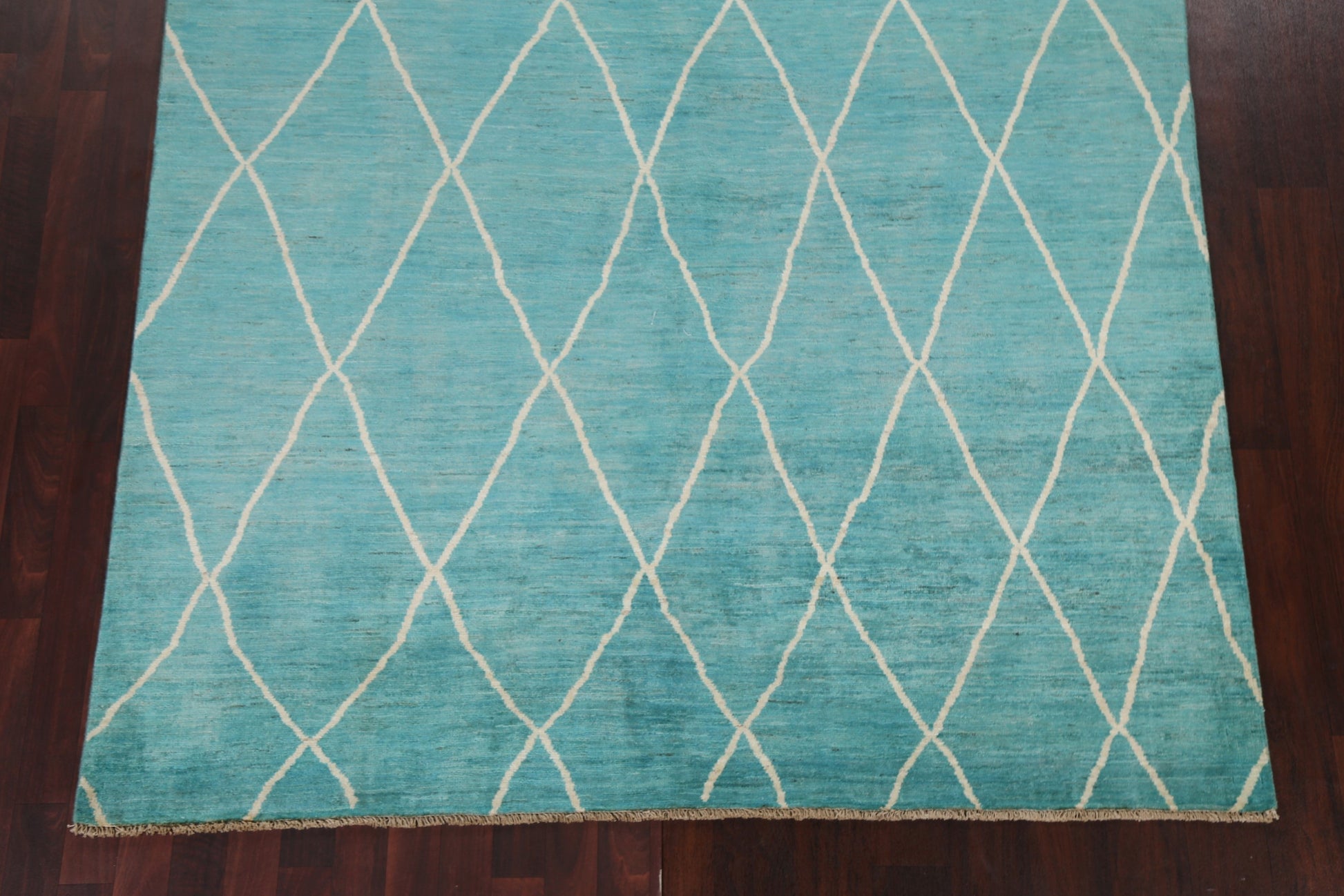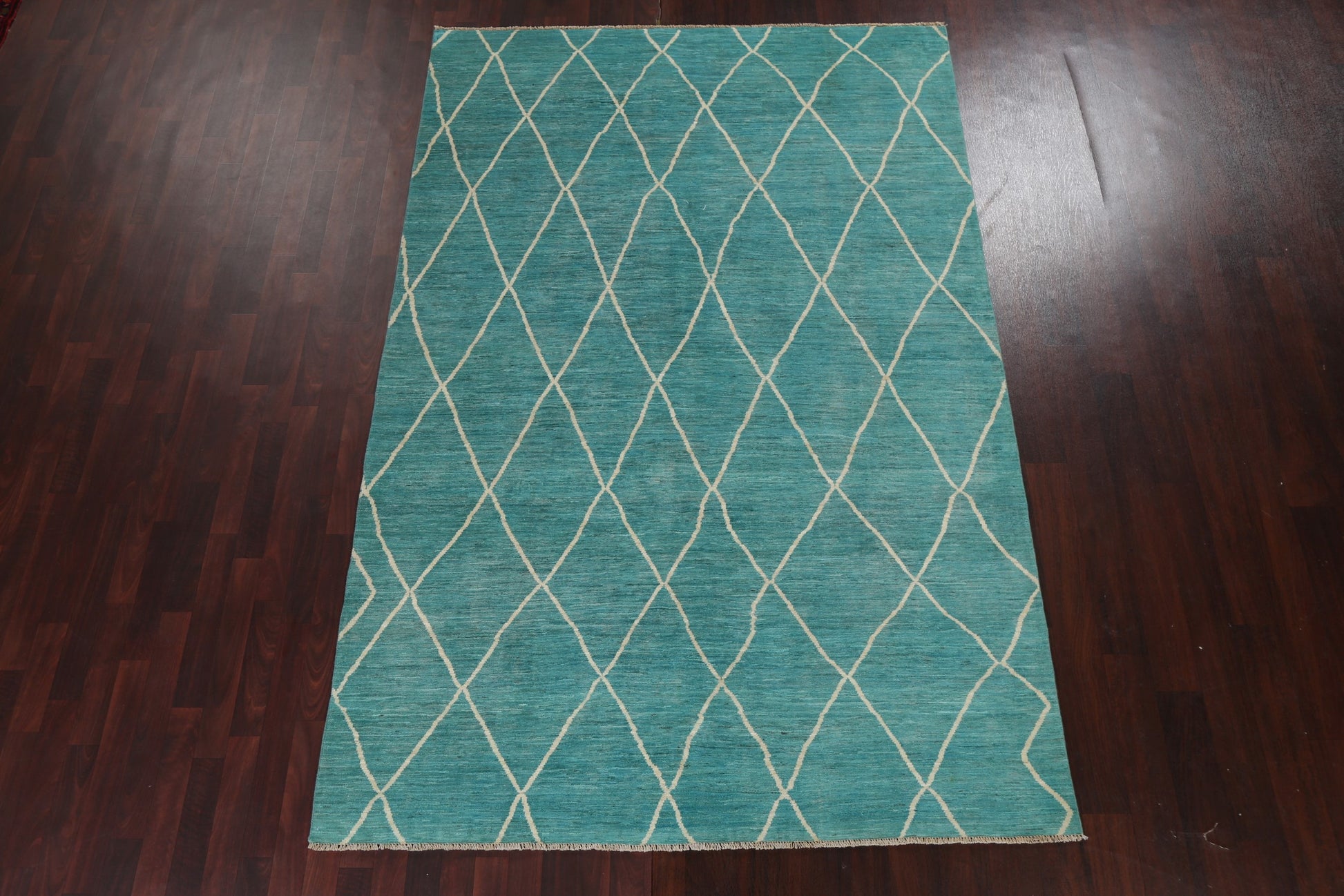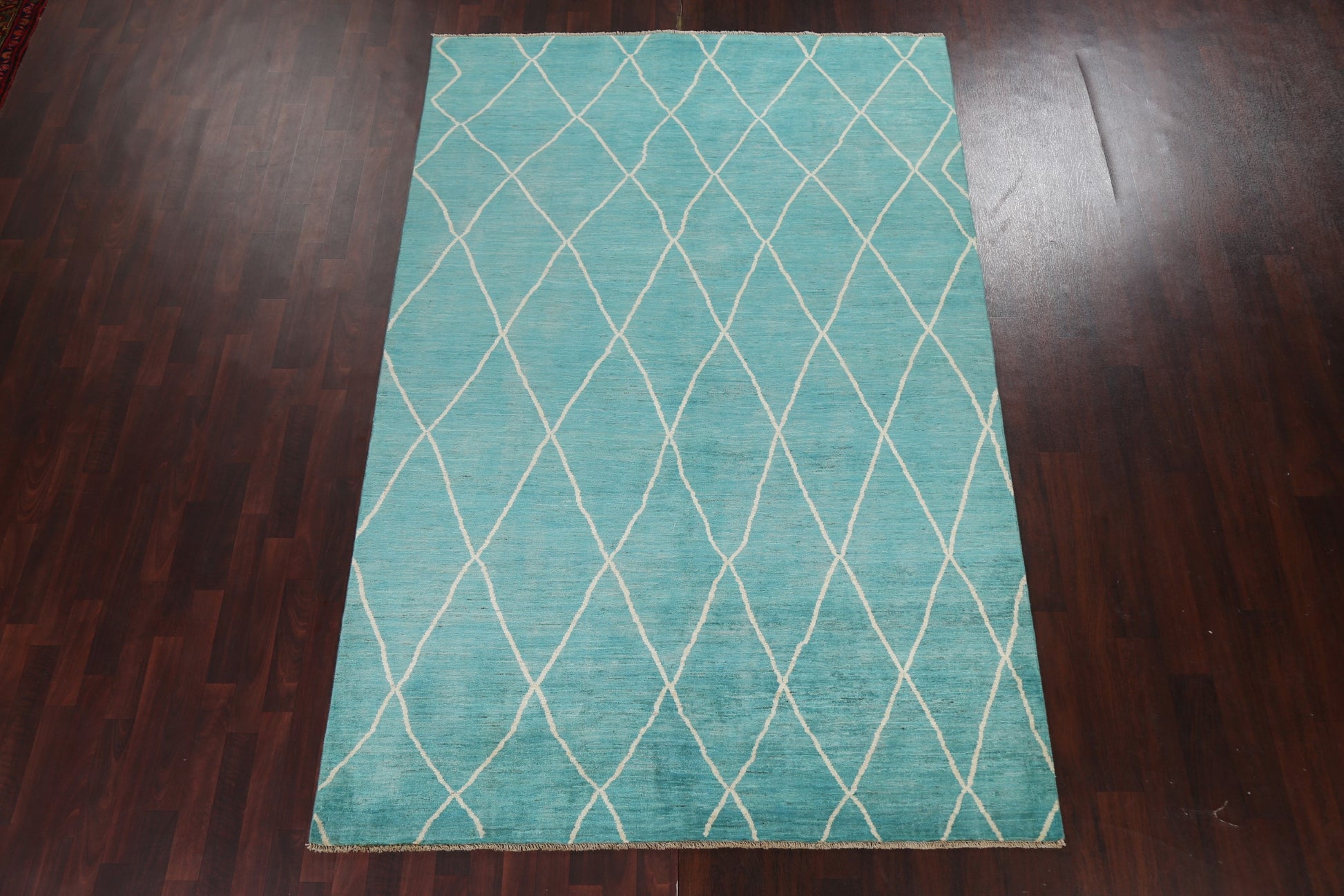 Turquoise Trellis Moroccan Vegetable Dye Wool Rug 6x9