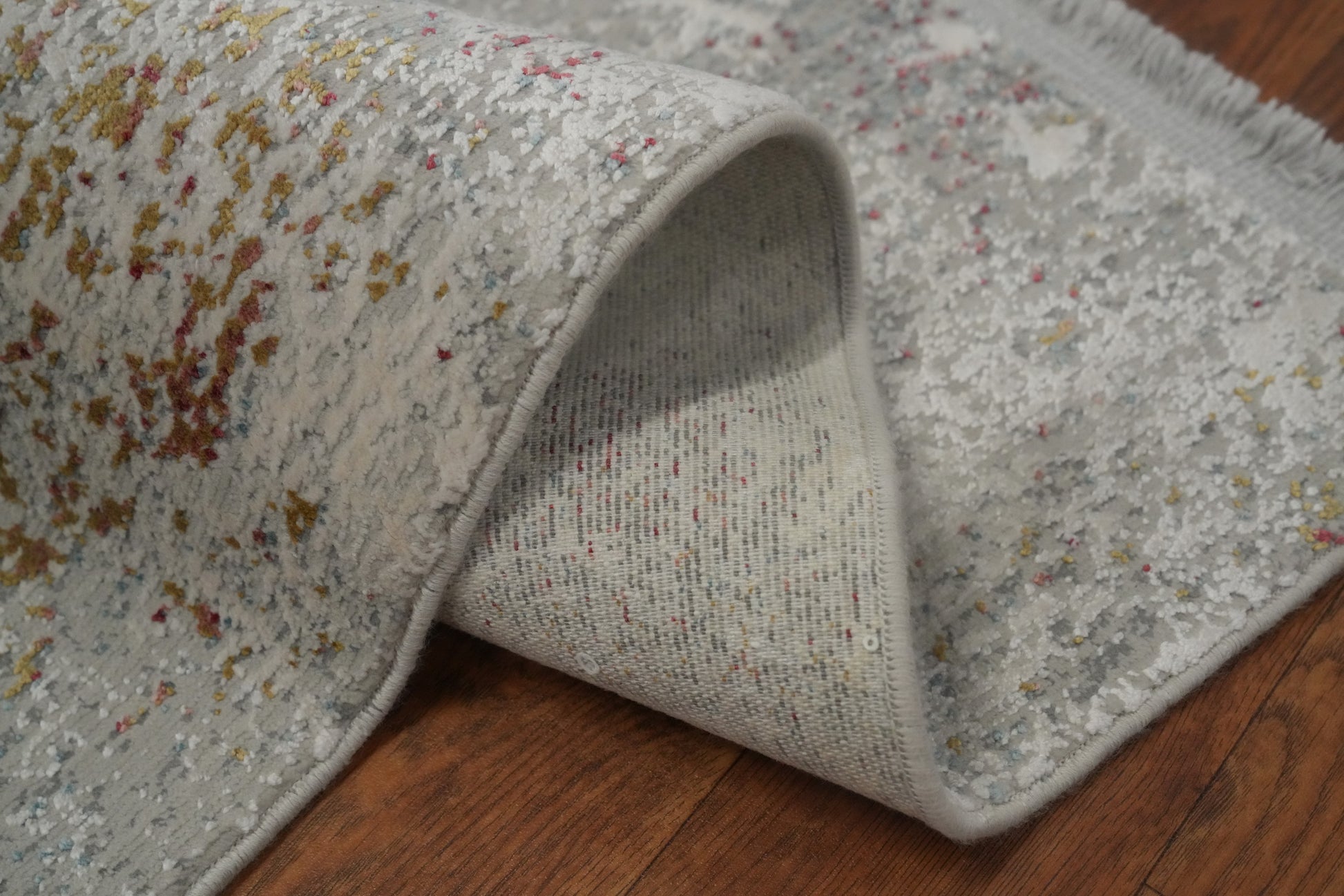 A Beautiful Genuine Turkey Abstract rug is Machine Made by skillful weavers in Turkey with Polyester Material. This rug is in New, First Quality condition. dimensions are 7' 5'' X 5' 2'' in foot and  226 X 157 in centimeter. the primary color is Greys & Charcoal.