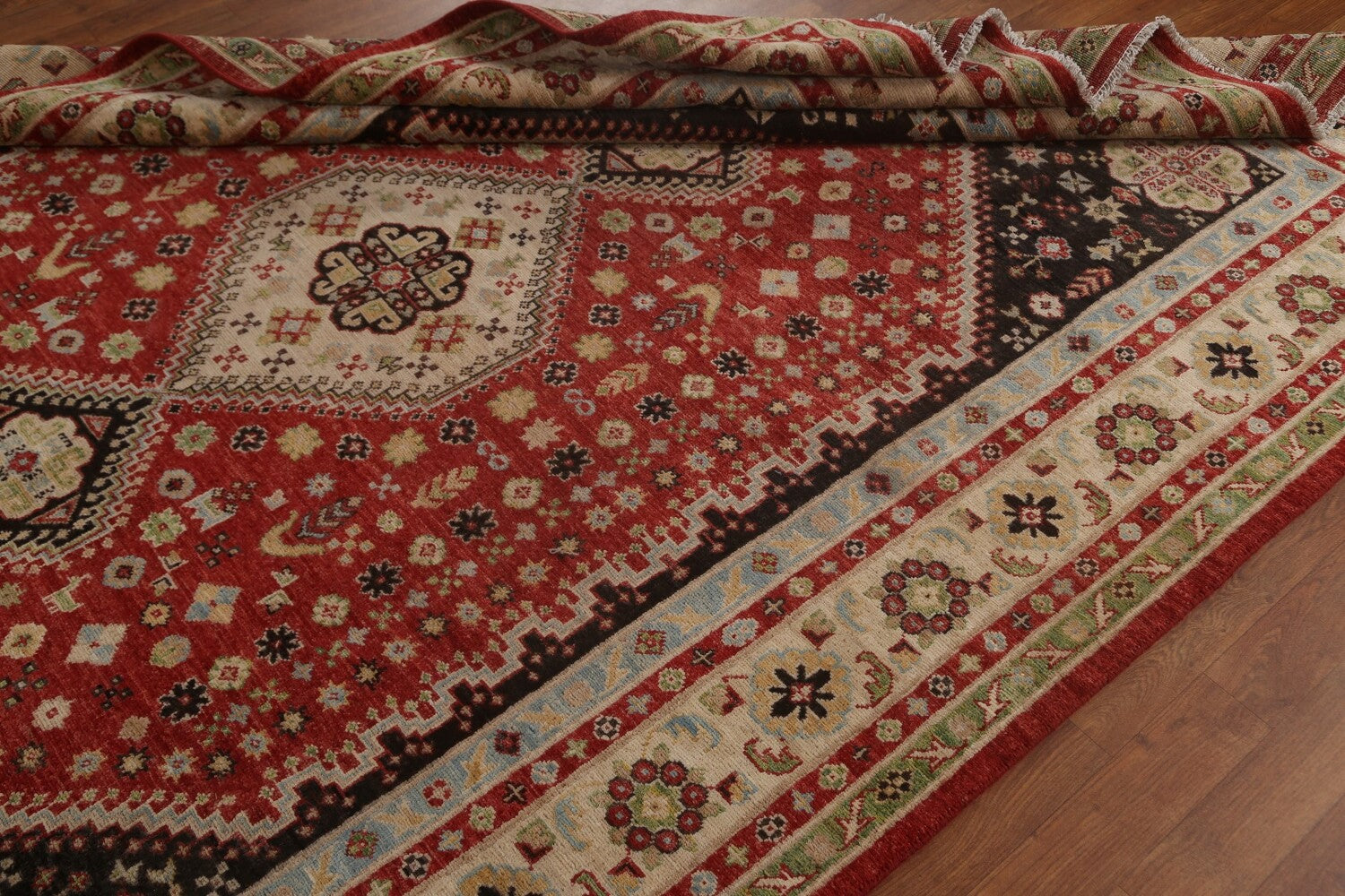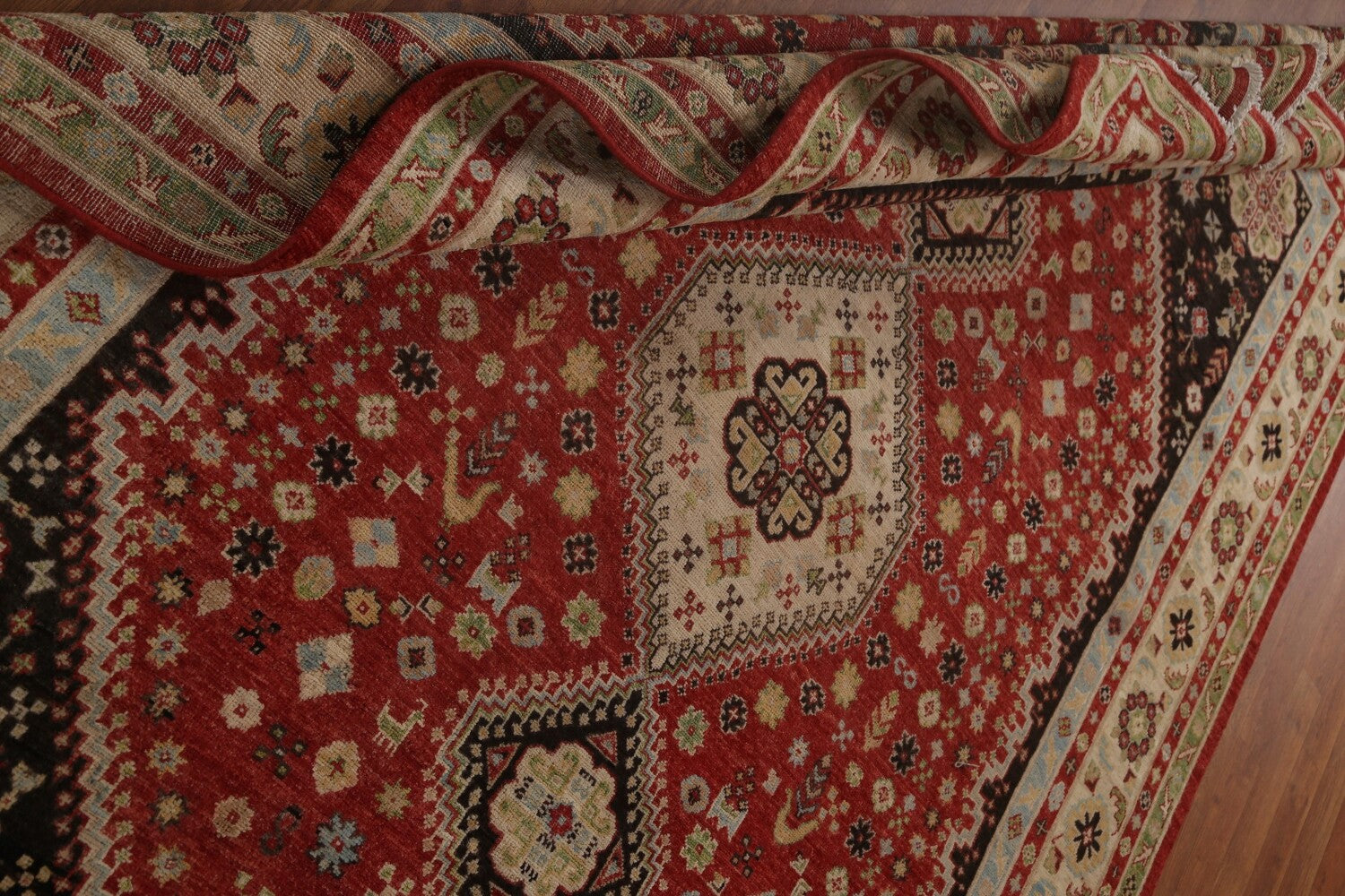 A Beautiful Genuine Pakistan Abadeh rug is Hand Knotted by skillful weavers in Pakistan with 100% Wool Material. This rug is in New, First Quality condition. dimensions are 9' 8'' X 6' 5'' in foot and 295 X 196 in centimeter. the primary color is Red.