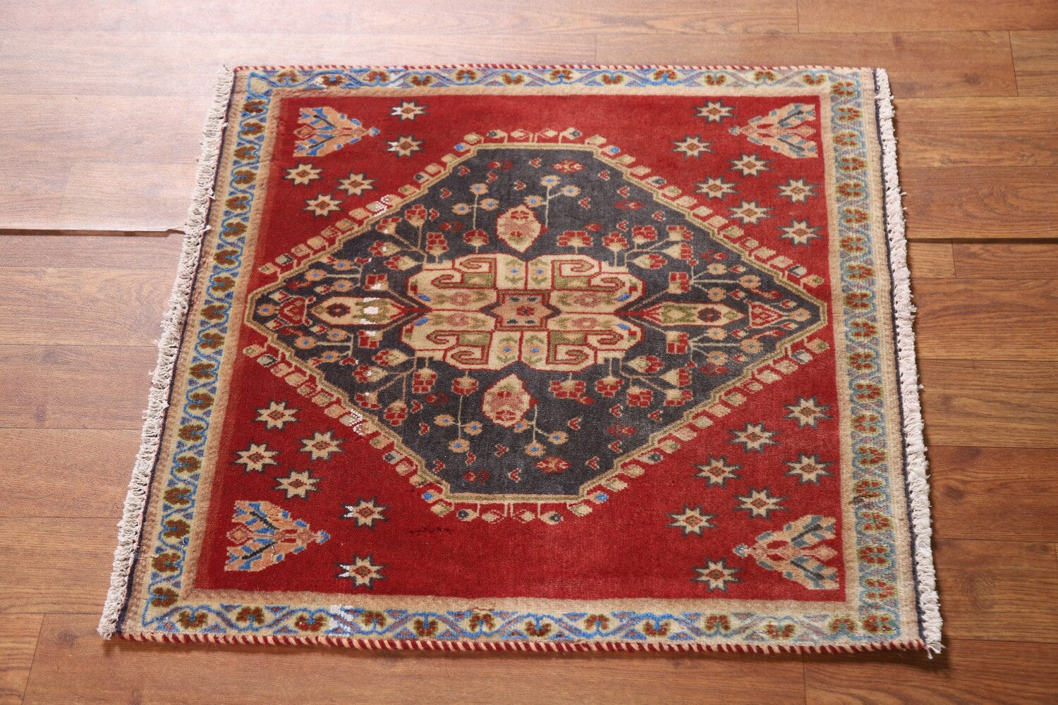 A Beautiful Genuine Persia ( Persia ) Abadeh rug is Hand Knotted by skillful weavers in Persia ( Persia ) with 100% Wool Material. This rug is in Very Good (Missing Pile) condition. dimensions are 2' 2'' X 2' 0'' in foot and 66 X 61 in centimeter. the primary color is Red.