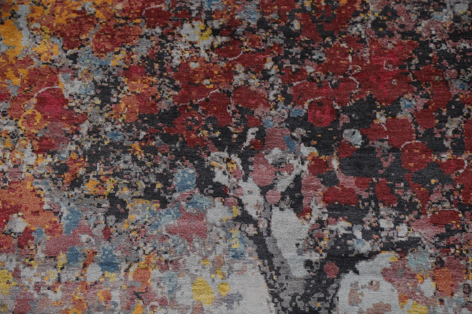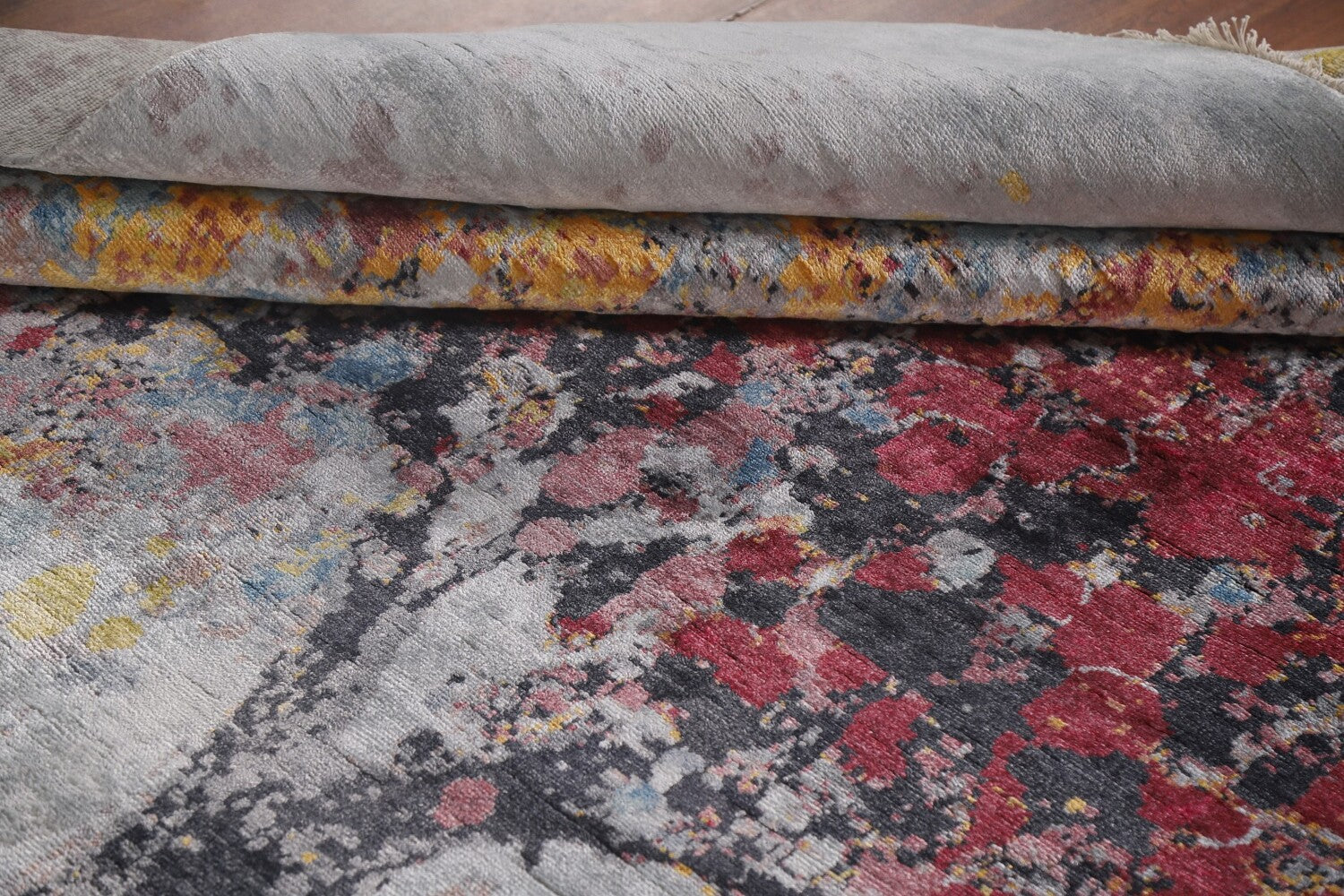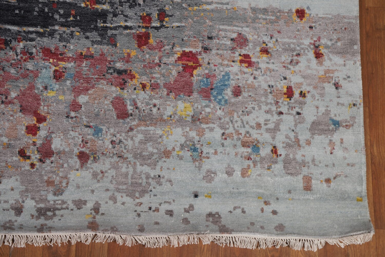 A Beautiful Genuine India Abstract rug is Hand Knotted by skillful weavers in India with 100% Silk Material. This rug is in New, First Quality condition. dimensions are 10' 3'' X 8' 0'' in foot and 312 X 244 in centimeter. the primary color is Greys & Charcoal.